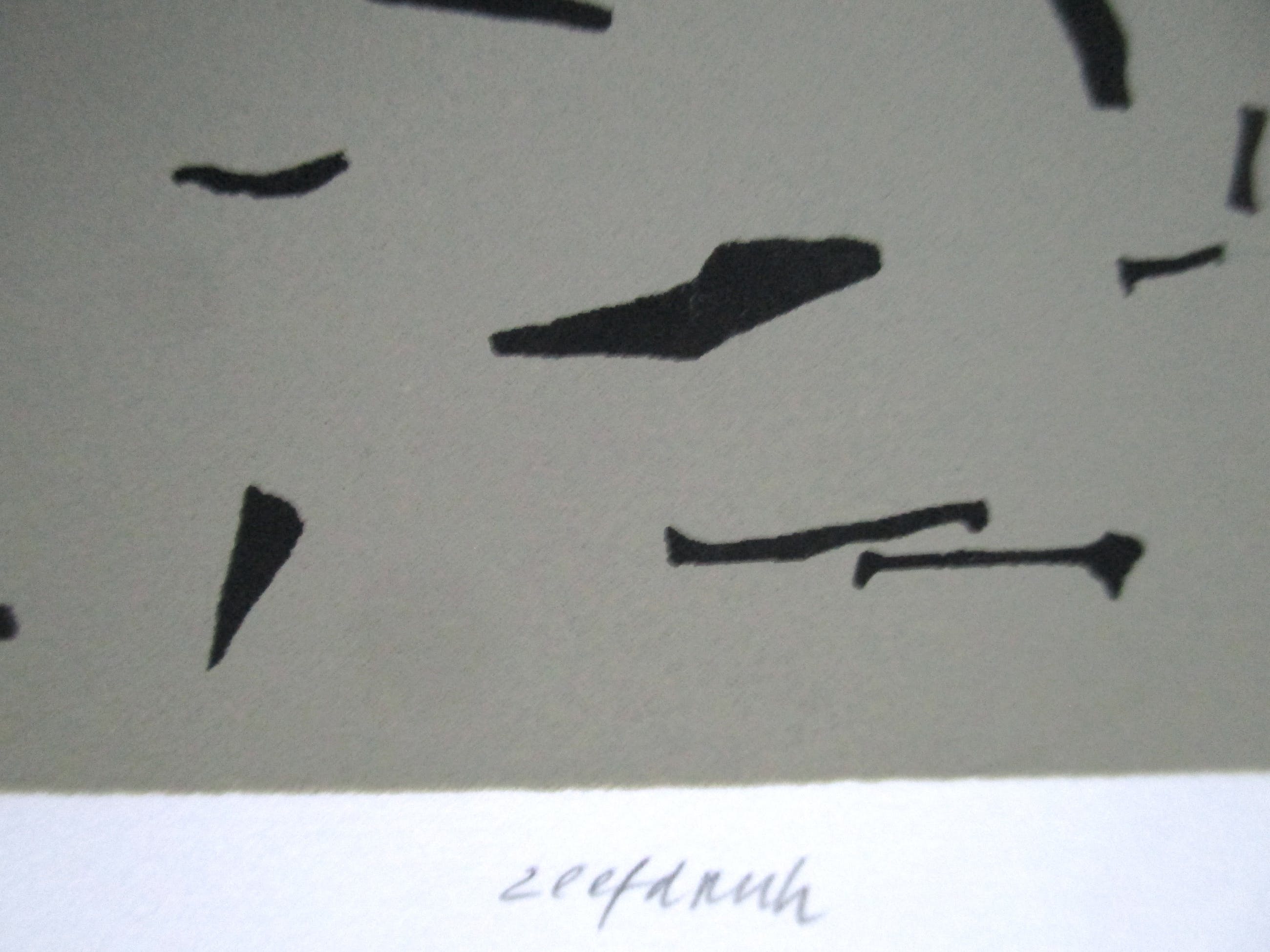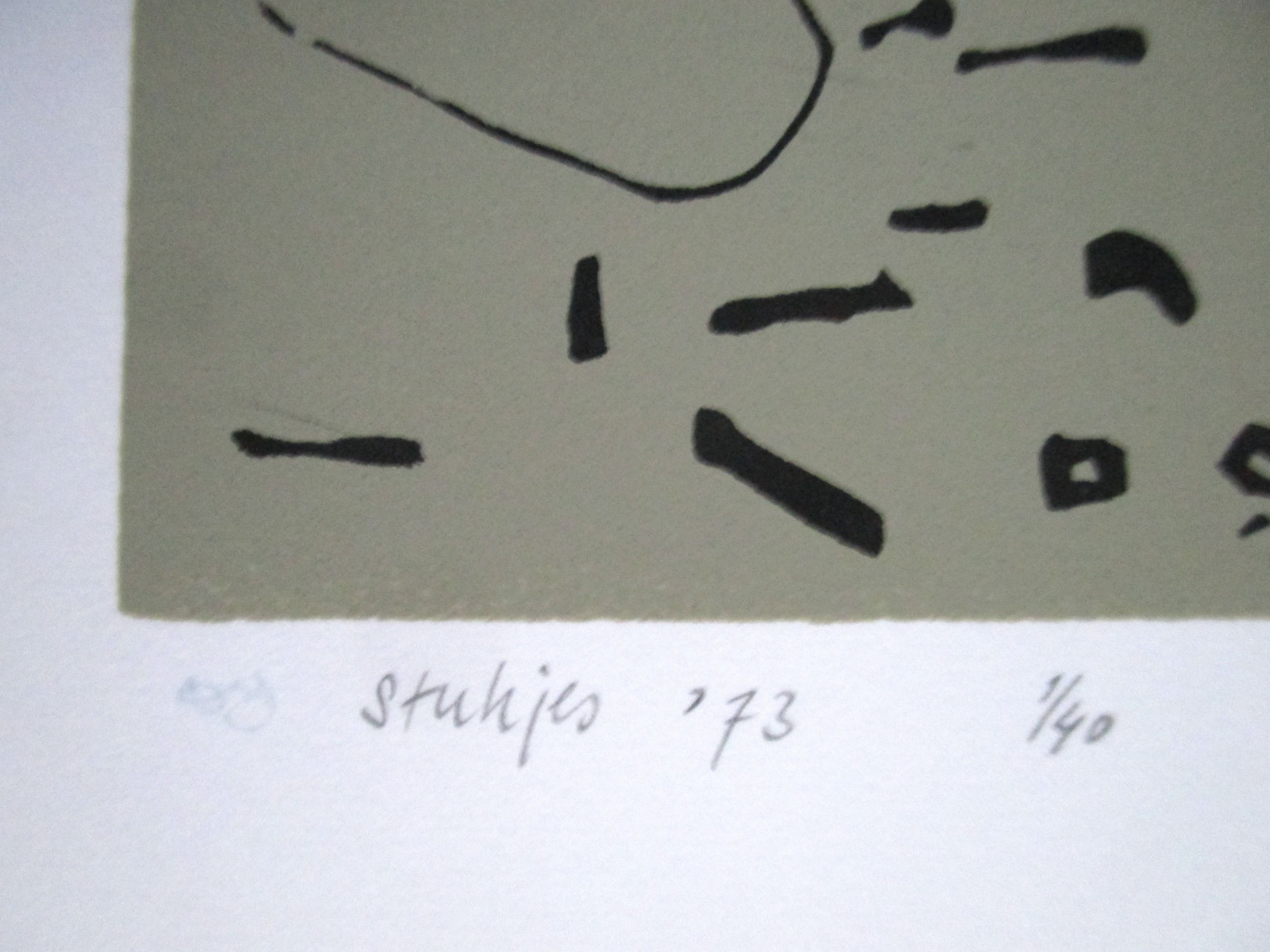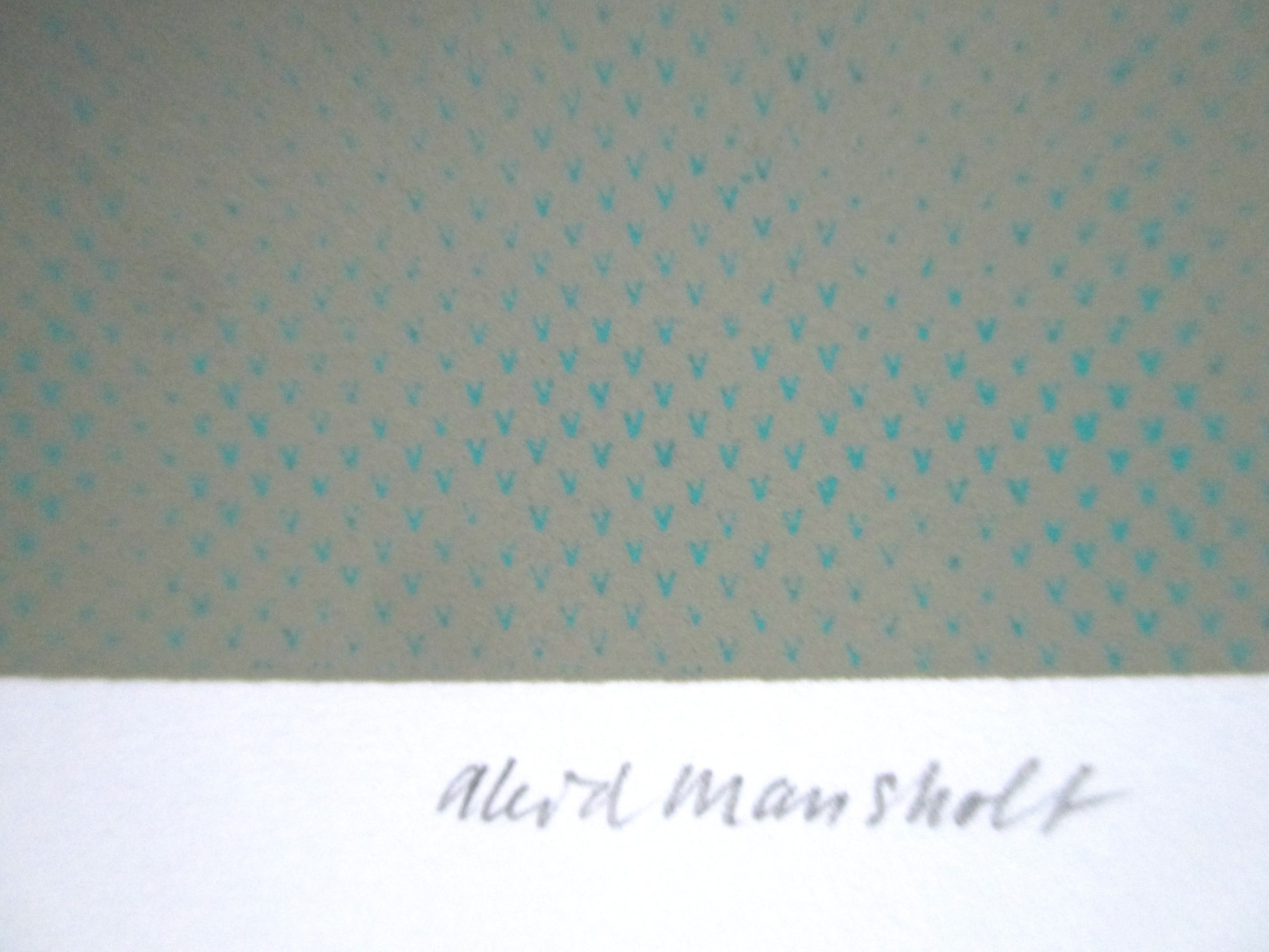 Zeefdruk van Aleid Mansholt, gesigneerd, getiteld, genummerd en gedateerd in potlood.Verzending tussen twee platen, 9 euro, aangetekend 10,65