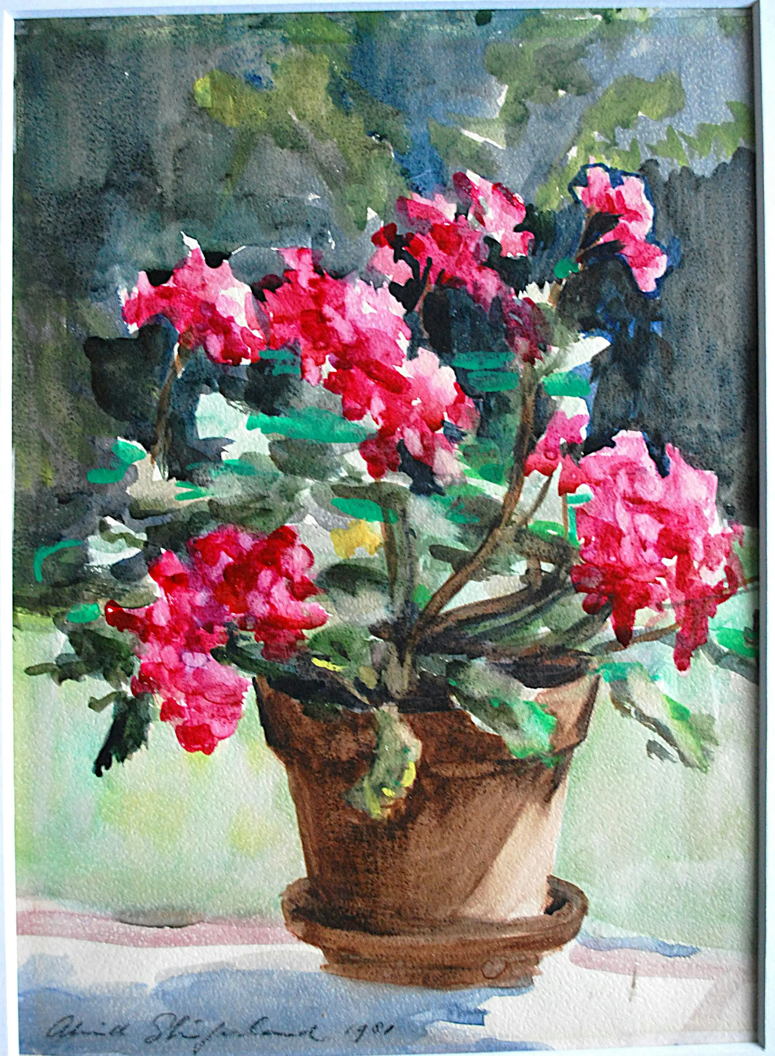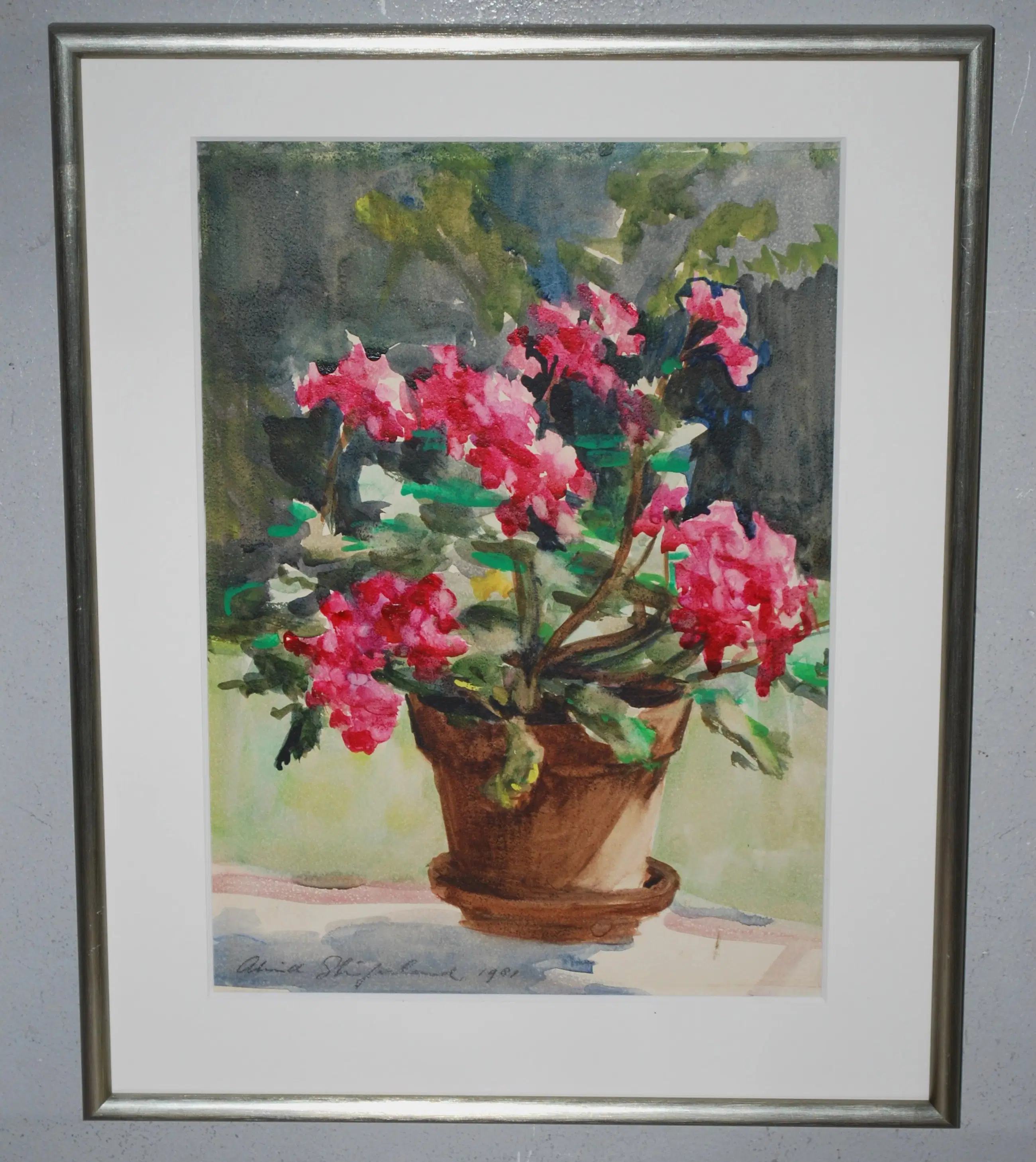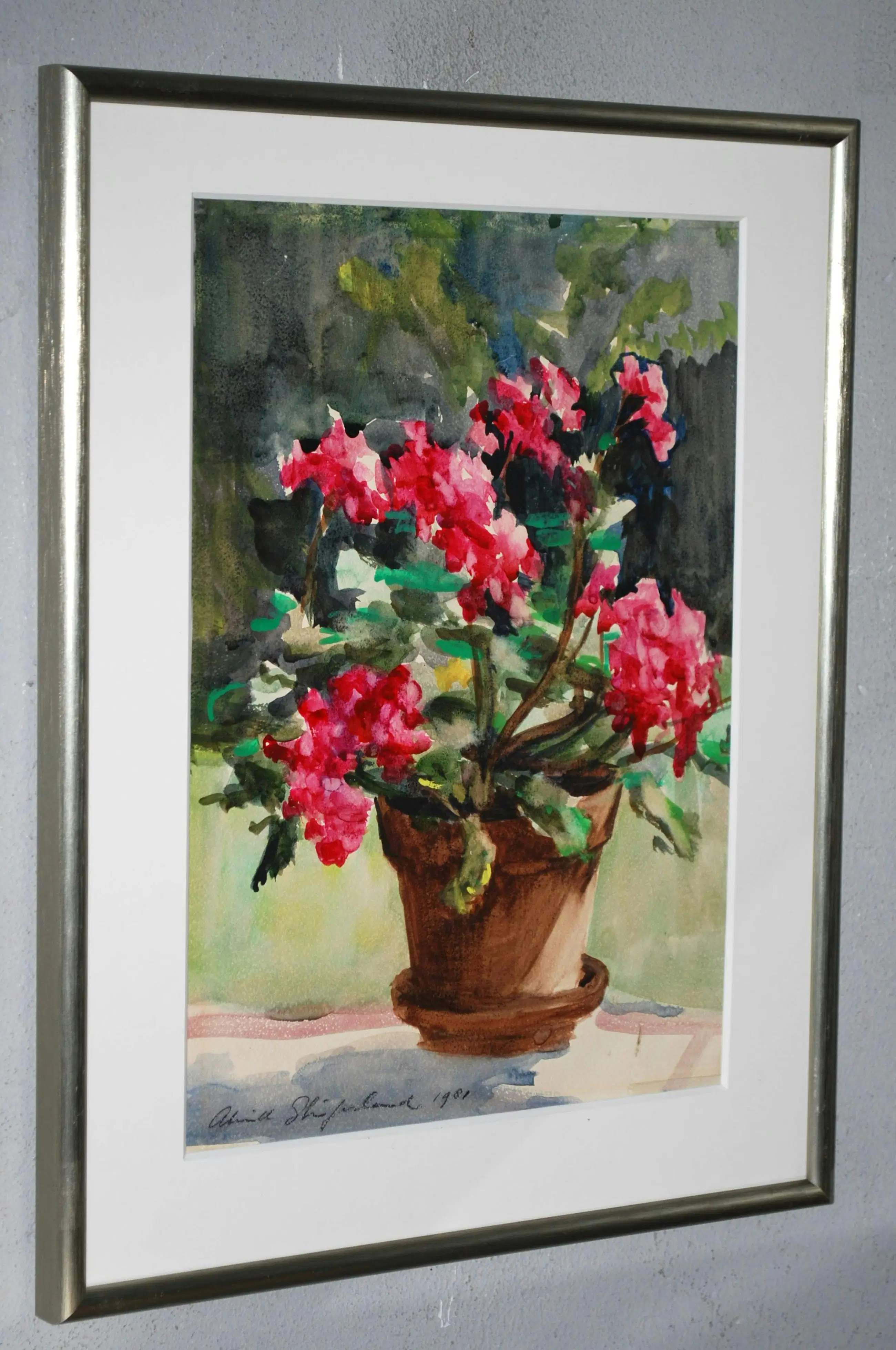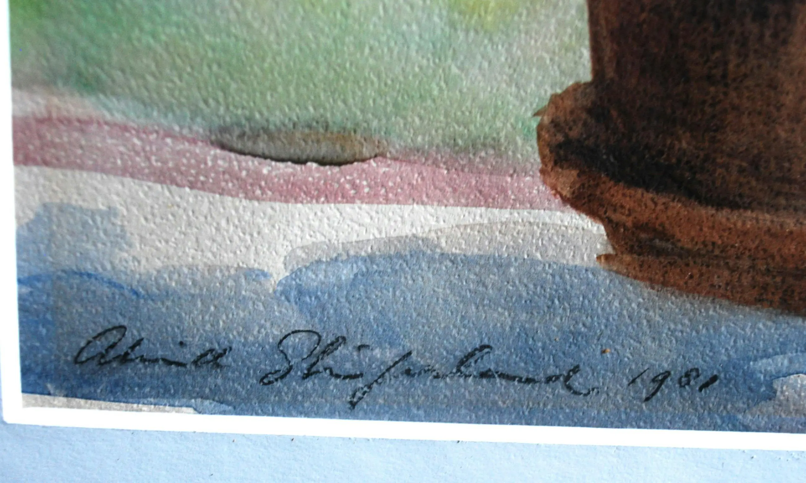Olieverf en waterverf op papier. Achter glas en passepartout. In een mooie lichtgroene alu lijst.