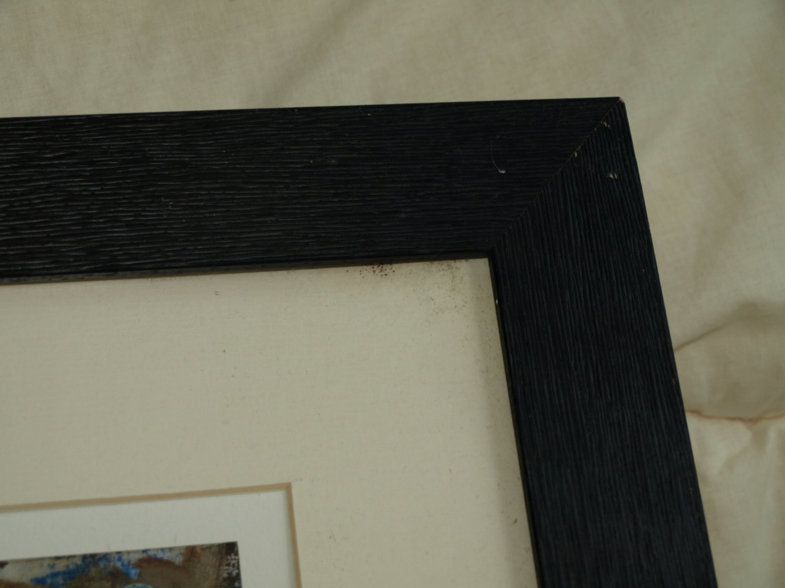 Ingelijst: Ingelijst in een houten lijst met een passe-partout en glasplaat.