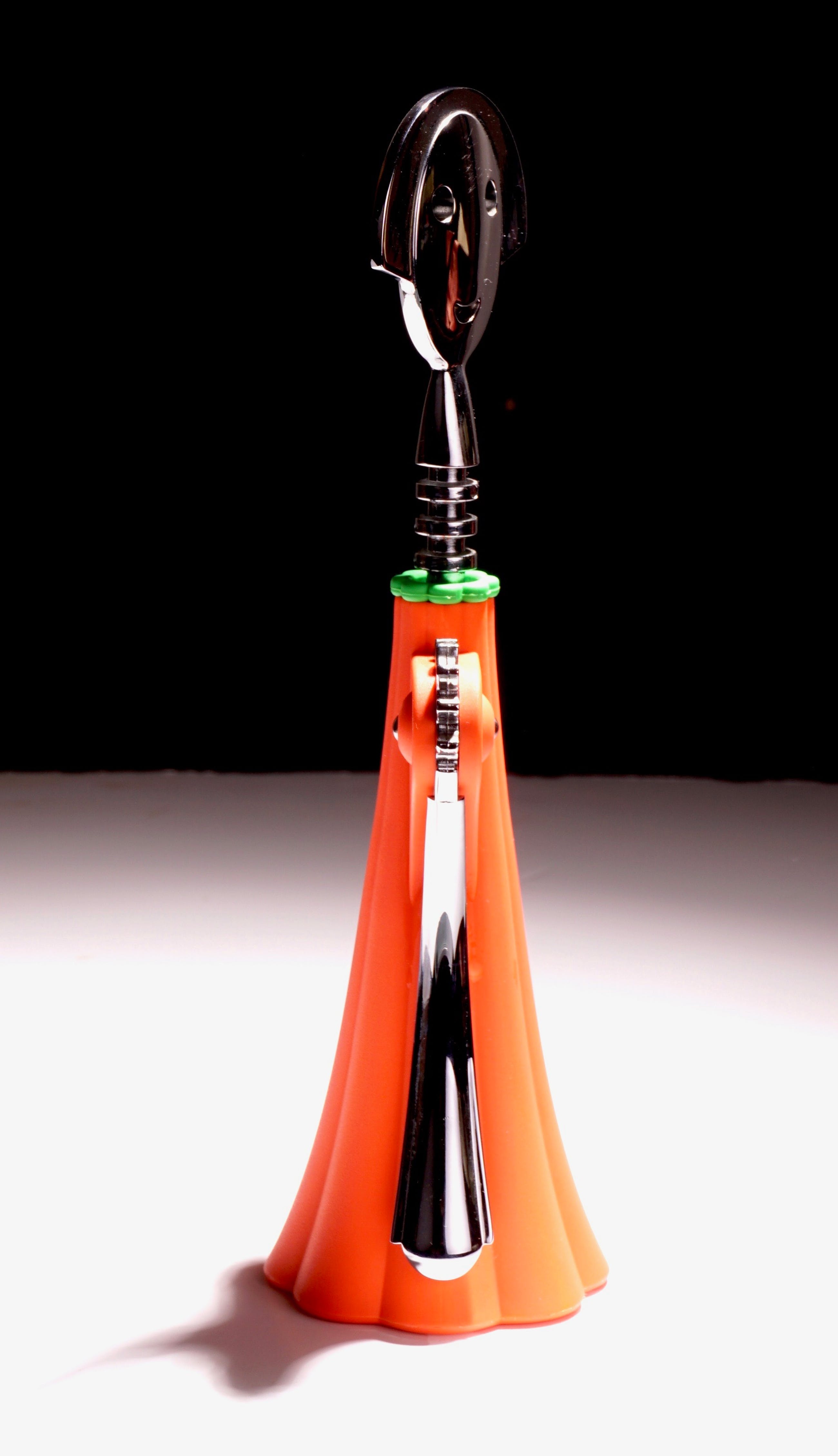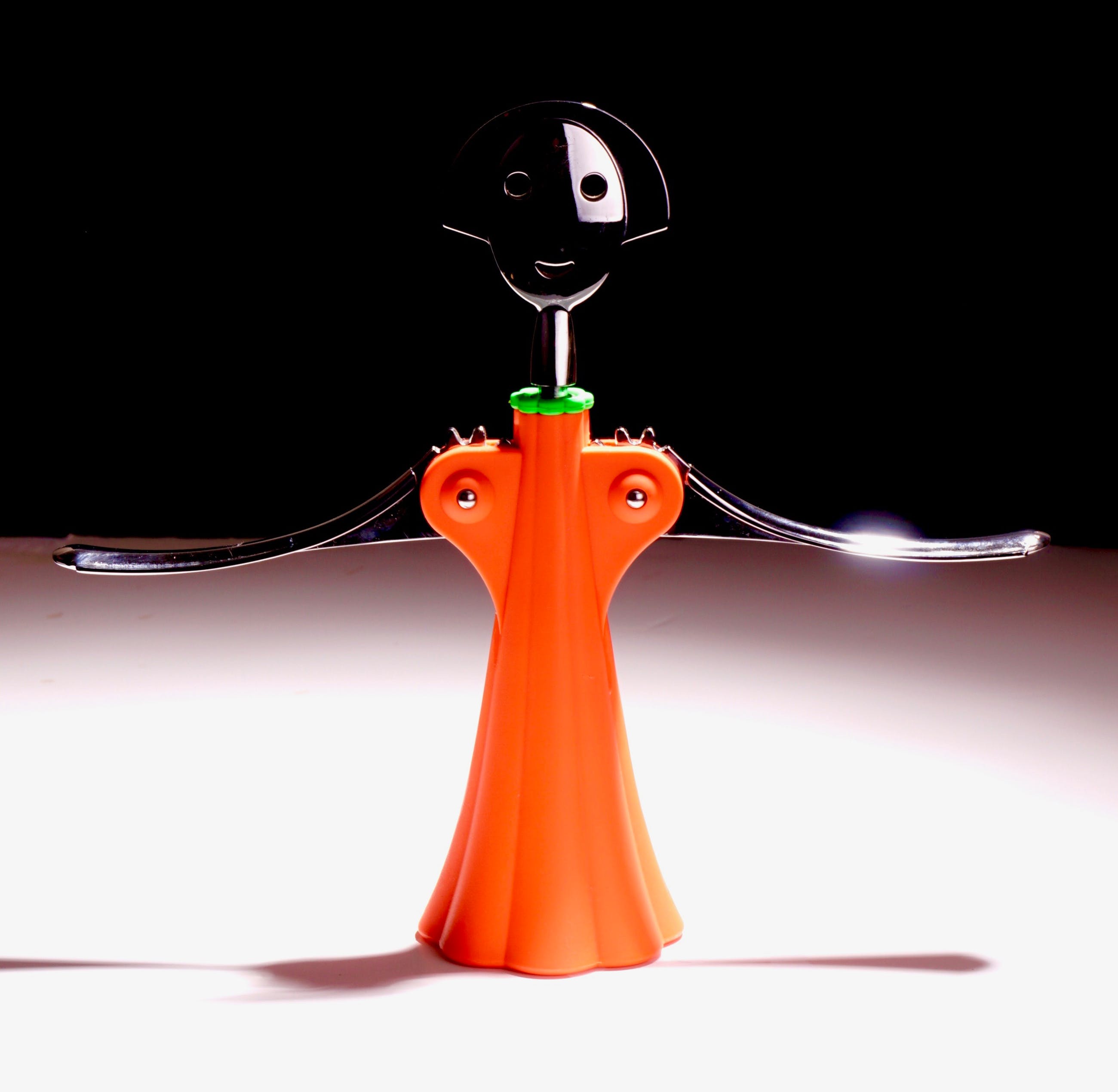 Alessandro Mendini in opdracht van Alessi: het beroemde Italiaanse bedrijf voor eigentijds design huishoudelijke artikelen. in 1993 en het jaar daarop uitgebracht, werd deze leuke flesopener gemodelleerd door Alessandro Mendini naar het vrouwelijk lichaam: je moet Anna's "hoofd" draaien om de schroef in te steken, terwijl haar 'armen' langs het lichaam en de vintage jurk omhooggaan die ze draagt. Het item is in goede werkende staat.