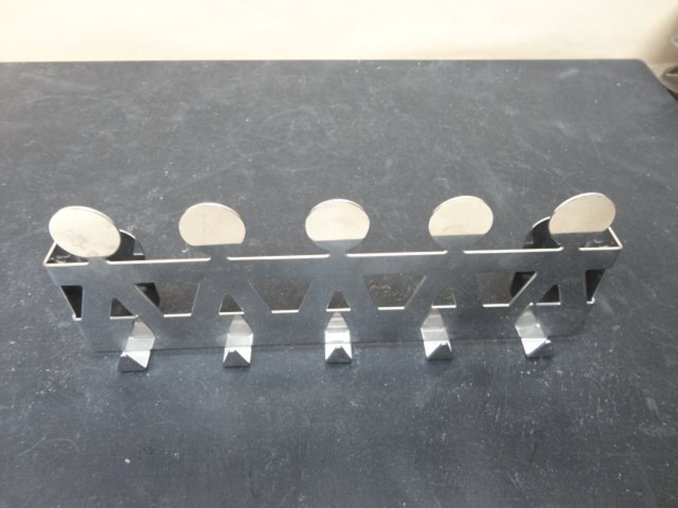 Broodschaal 27x18; 8 cm hoog 8 eierdopjes doorsnee 10 cm handdoekenrekje lengte 20 cm; hoogte 7,5 cm Alles gemerkt