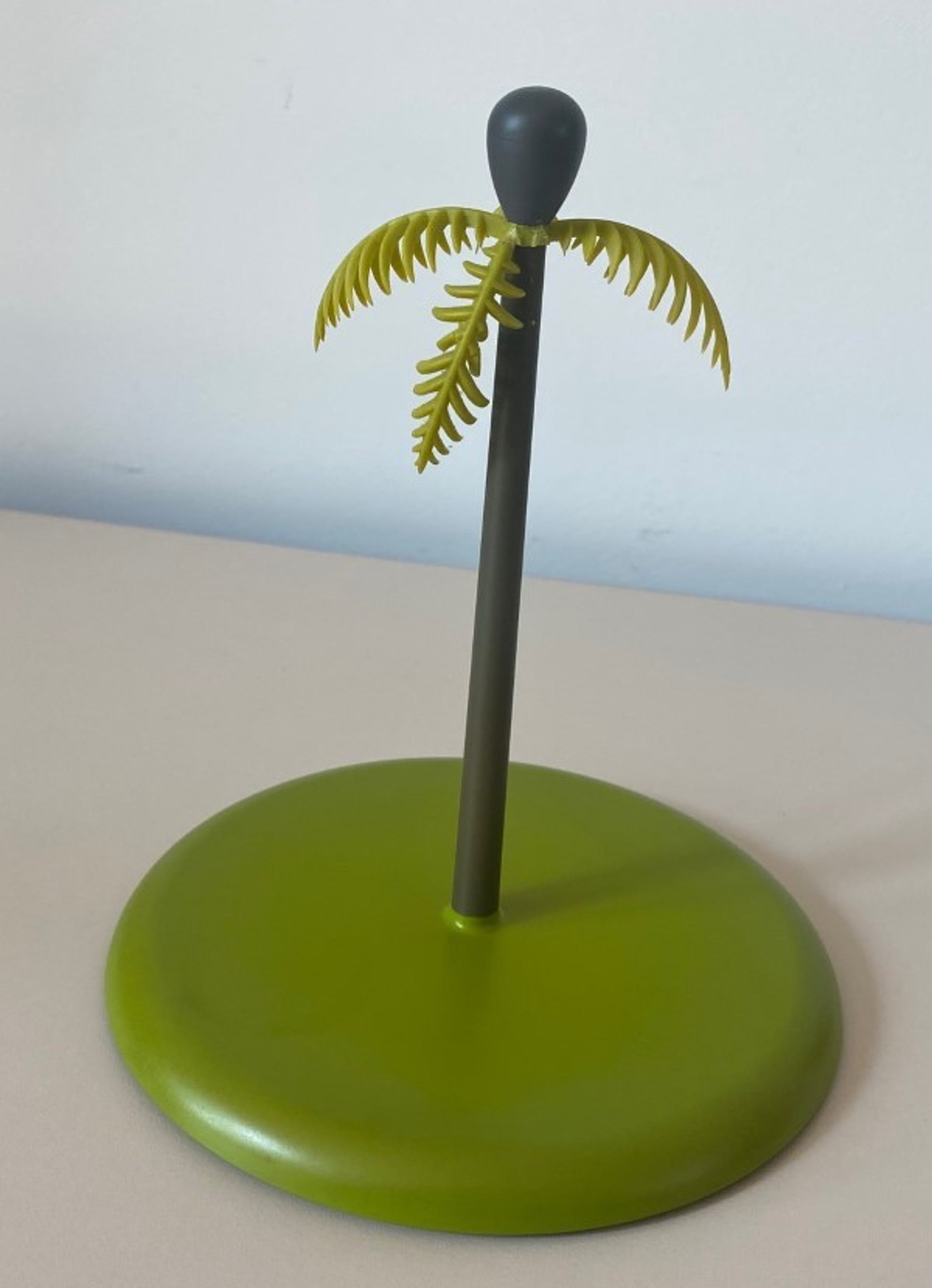 Helaas zijn de bladeren van de palmboom beschadigd en mist er een blad. De set is met de hand beschilderd.