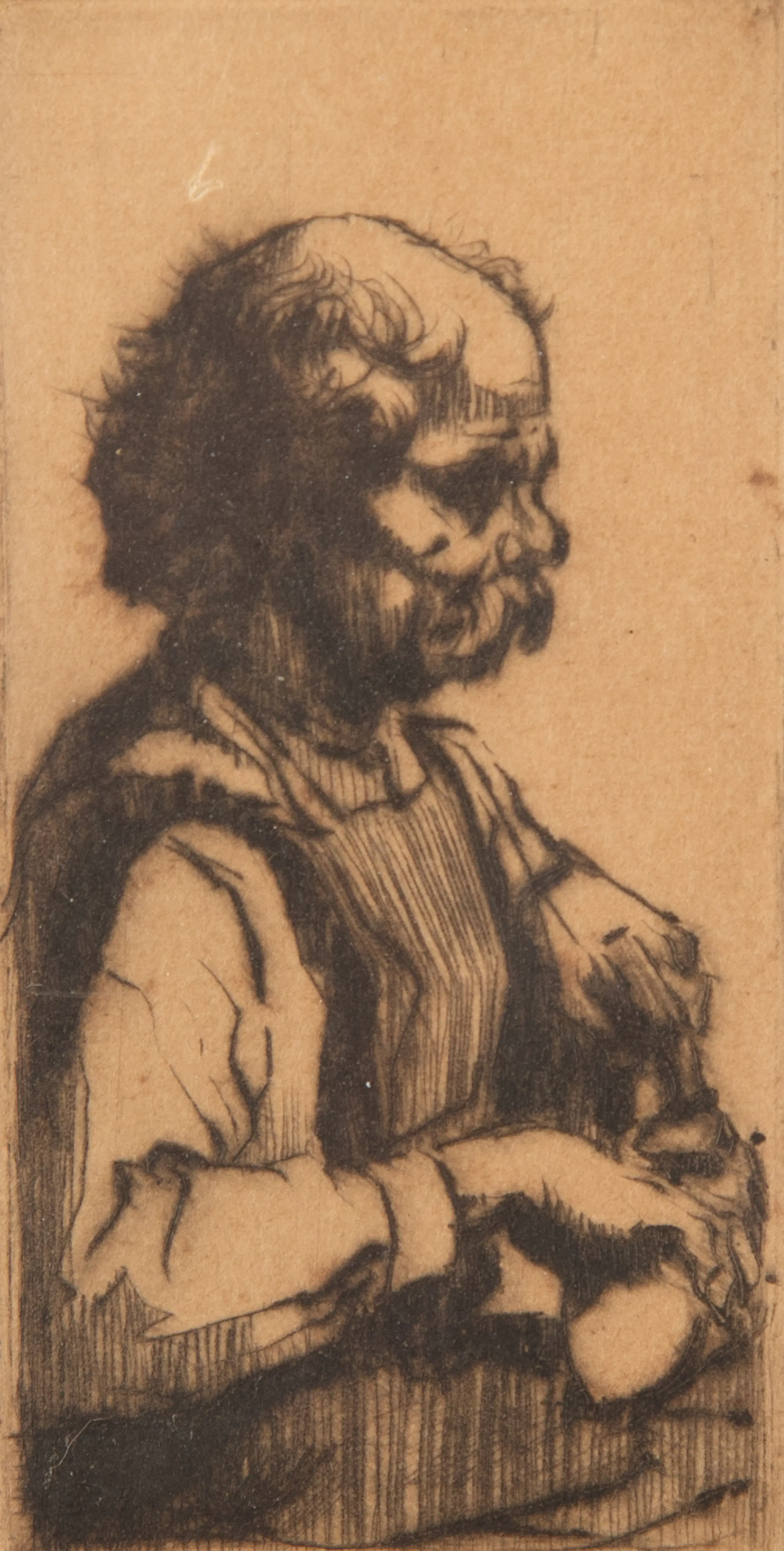 Dit is een ets van Alex Asperslagh. Het werk komt uit 1924 en linksonder staat het nummer 16. De ets toont een oude man die aan het werk lijkt te zijn.