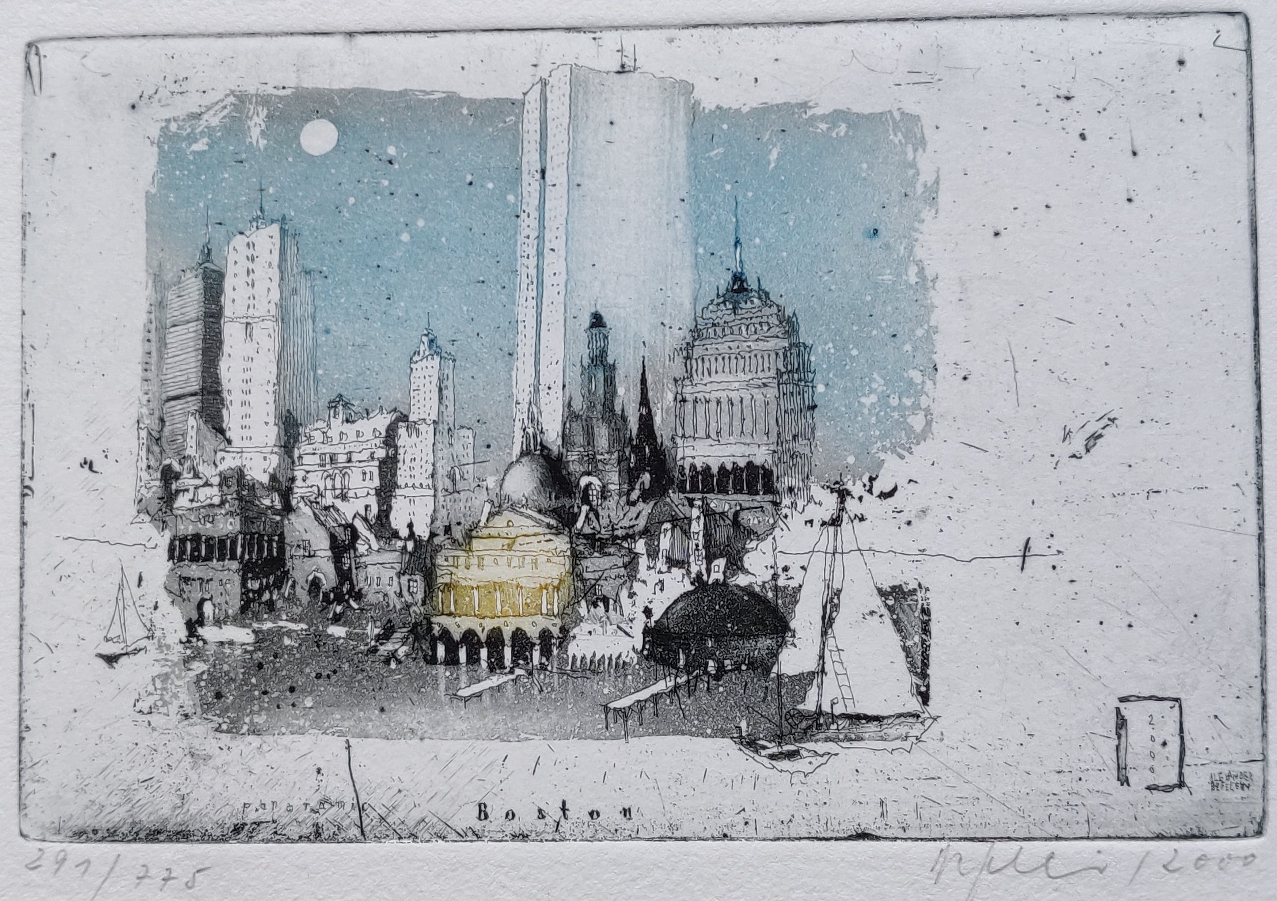 Stadsgezicht van Boston, "Originele ets door Alexander Befelein voor de Boston Consulting Group"