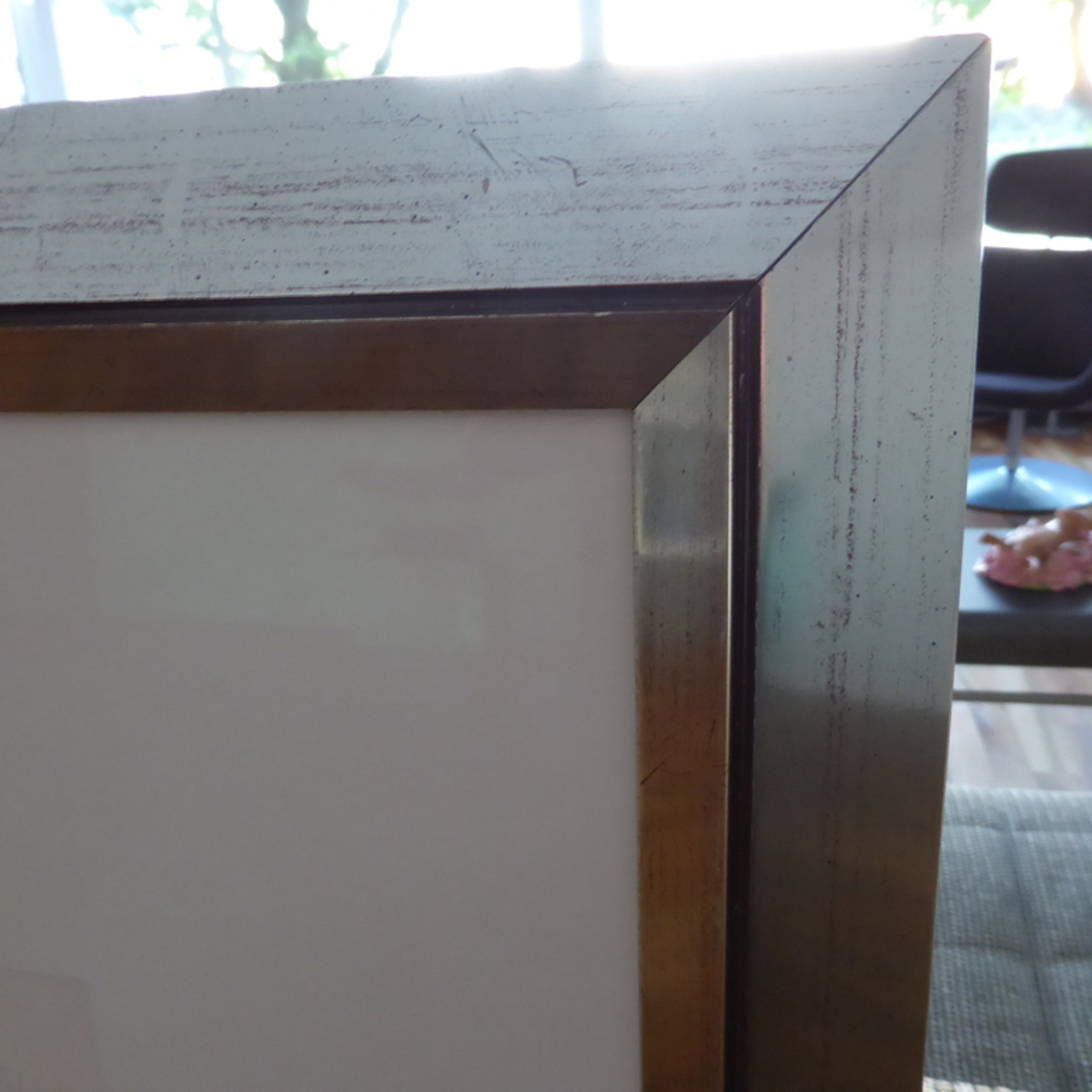 De afmetingen van de lijst zijn110 bij 85 cm, en de passepartoutmaten zijn74 bij 54 cm.