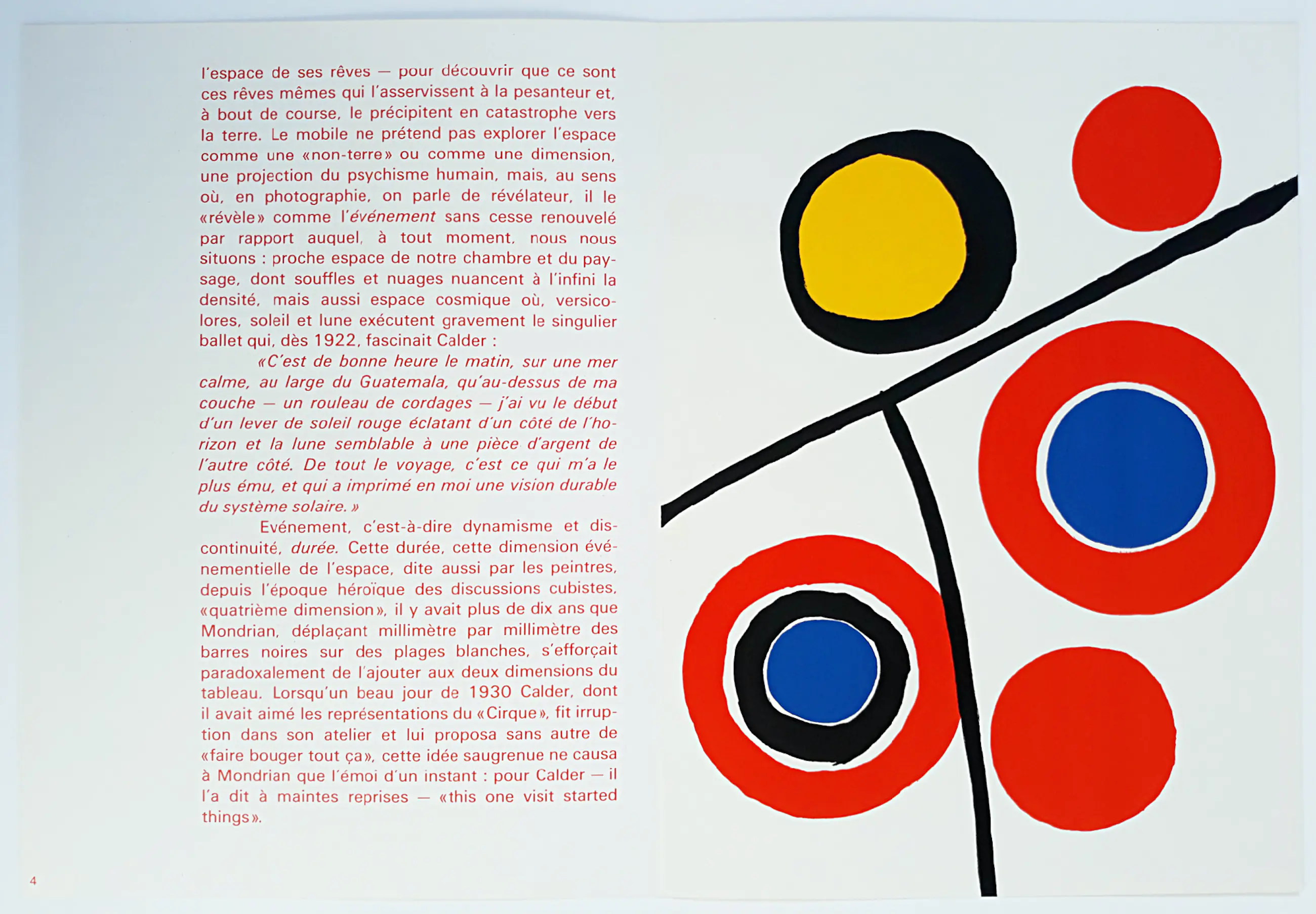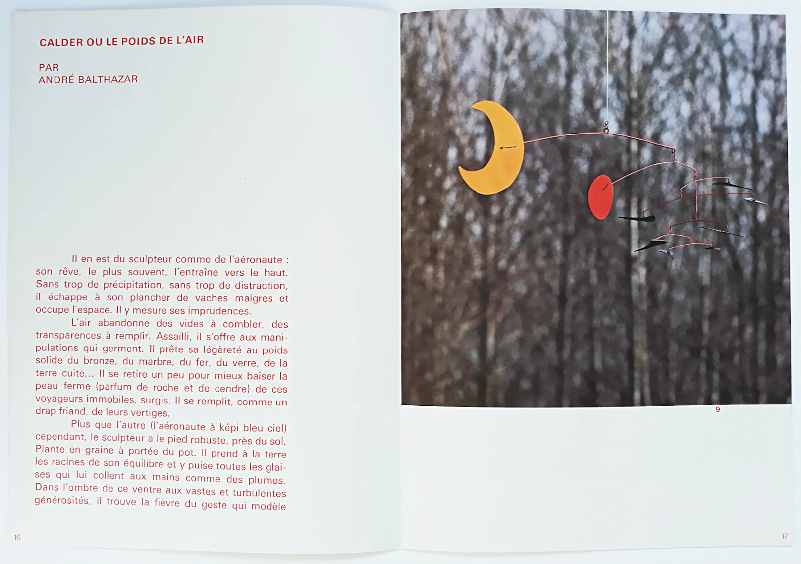 Prachtige, originele uitgave van deze Derriere le Miroir uit 1973 in een speciale, luxueuze portefeuille. De omslag is een dubbelpagina kleurenlitho en binnenin zitten nog vier litho’s van zijn hand (drie enkelpagina, één dubbelpagina). Verder ook foto’s van zijn installaties, met tekst van Maurice Besset. In uitstekende conditie.