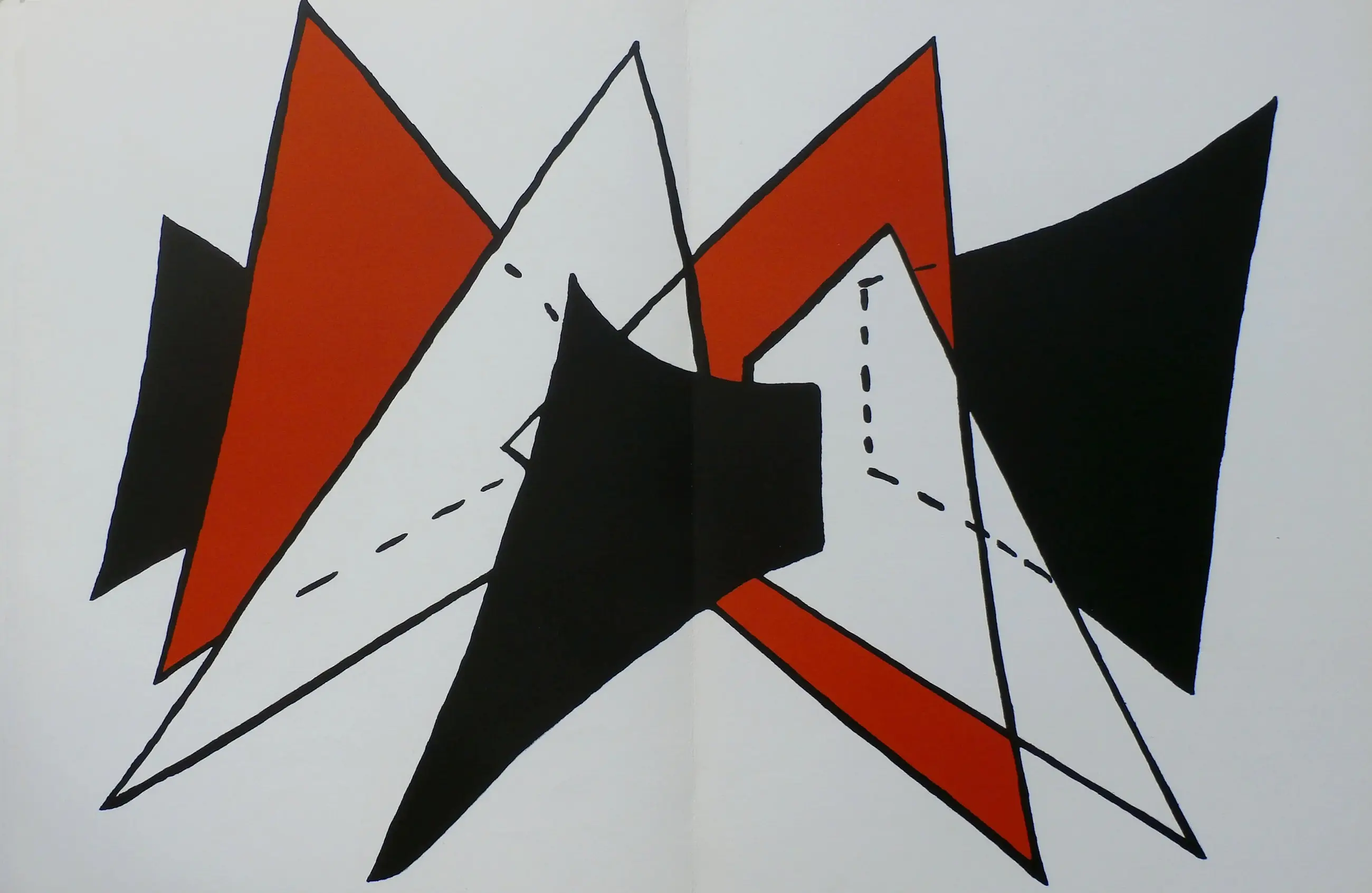 Litho van Alexander Calder uit de uitgave van Derriere le Miroir uit 1963. In de litho zit een middenvouw ( zoals origineel uitgegeven). Uitgever: Galerie Maeght, Parijs