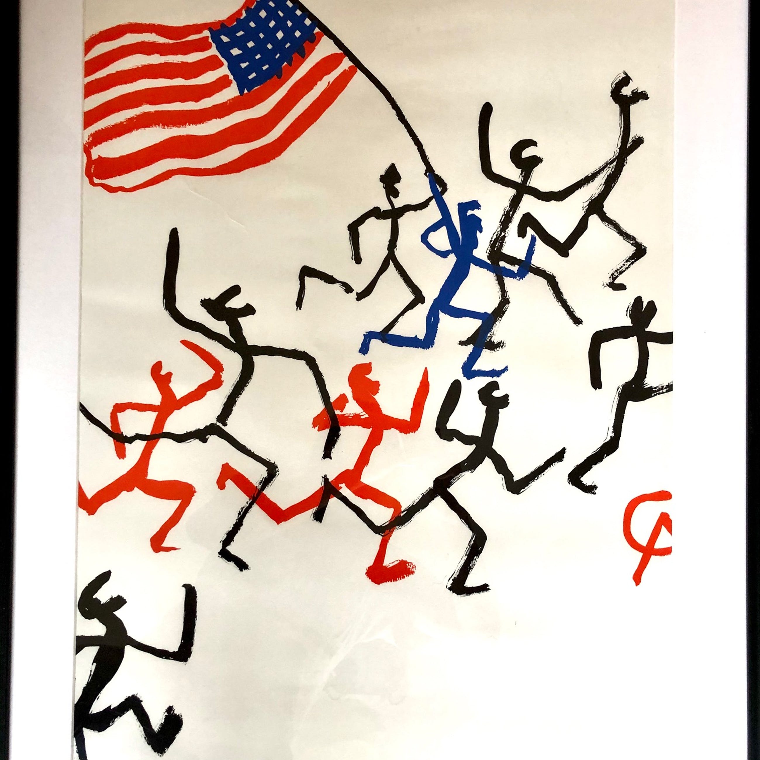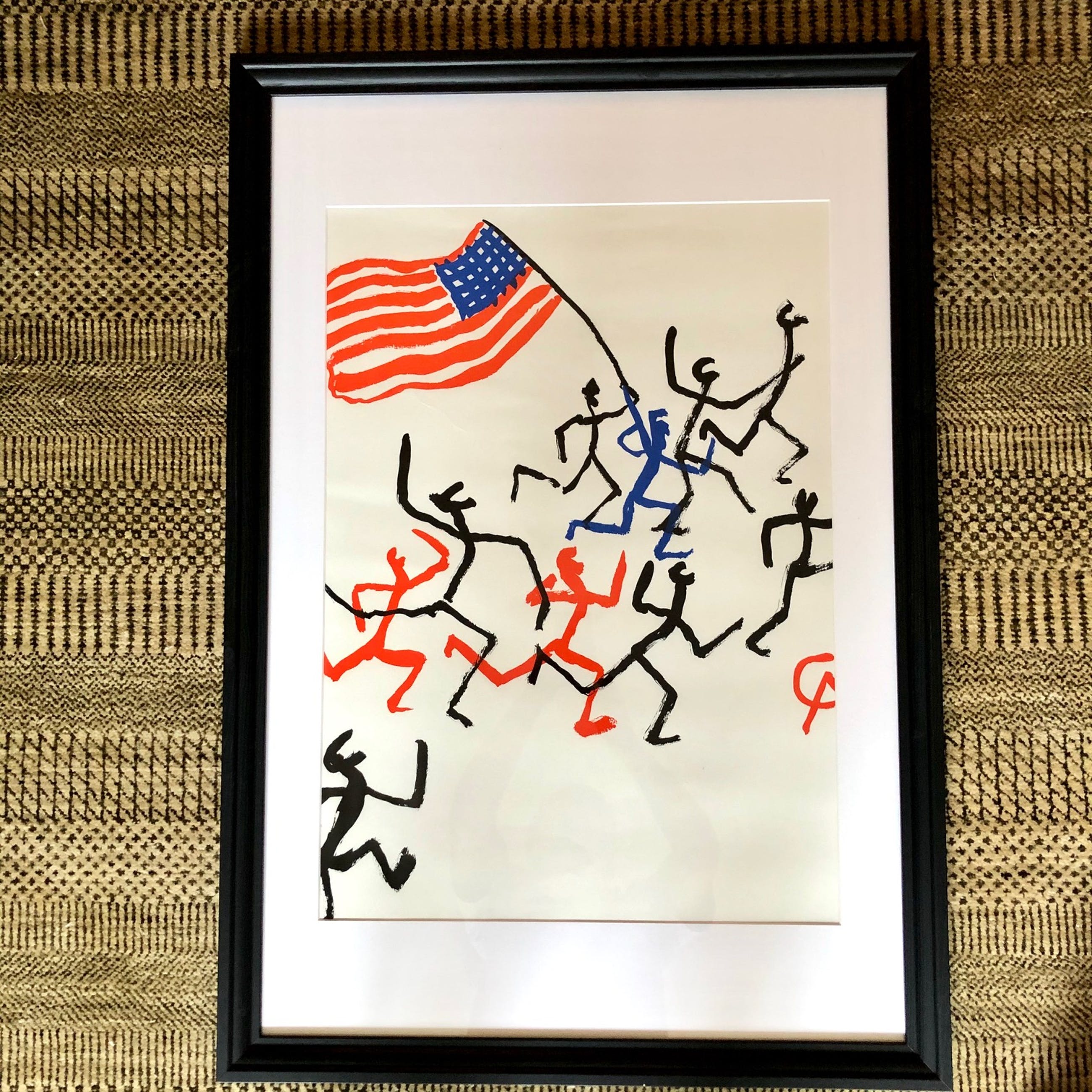 Groot formaat litho van Alexander Calder, getiteld 'Stars & Stripes'. Bijzondere Uitgave. Ingelijst in mooie zwarte lijst. Signatuur meegedrukt.