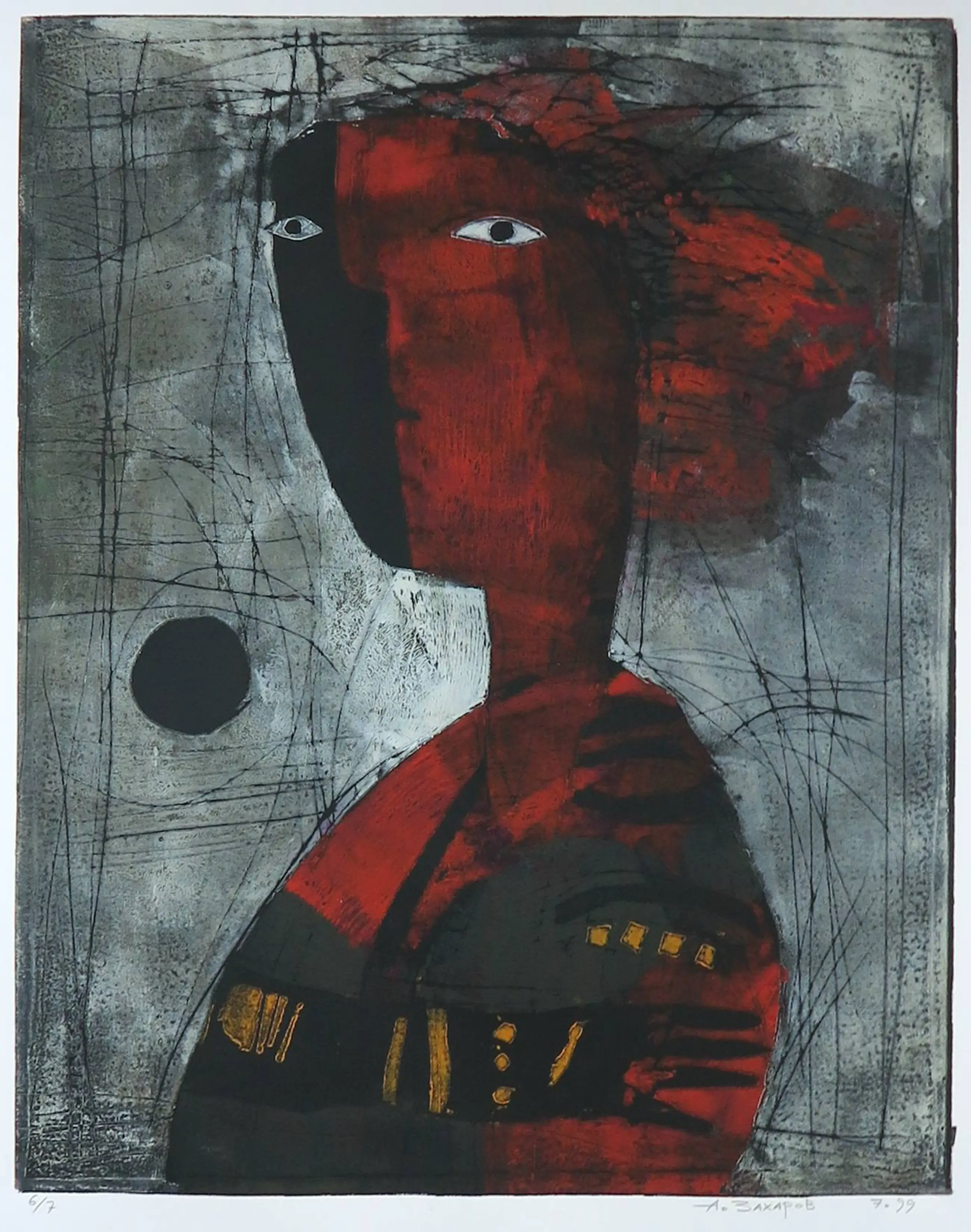 Grote prent in gemengde druktechniek in kleine oplage door de Oekraïense kunstenaar Alexander Zakharov.