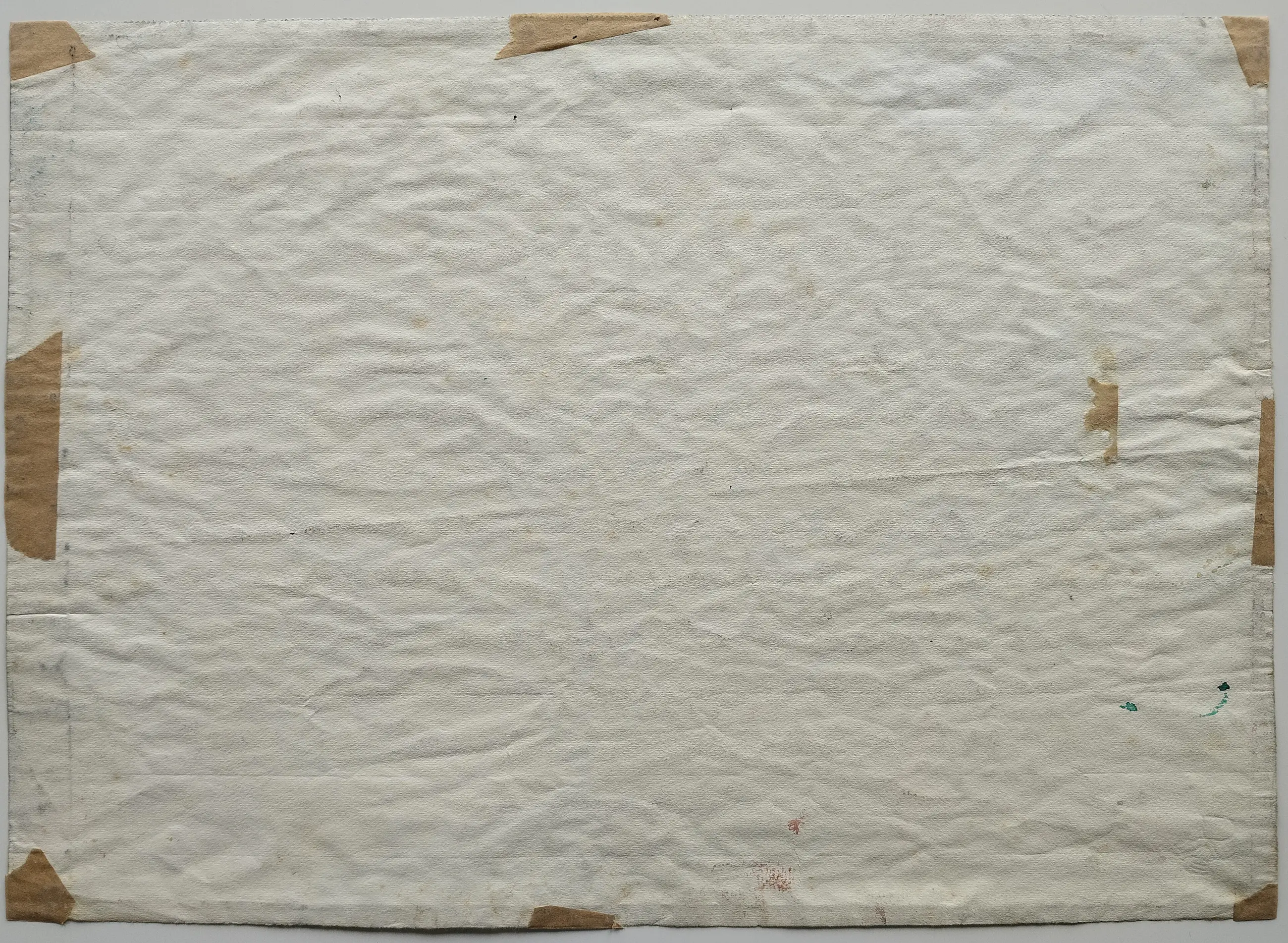 In het papier zitten vouwen, op de achterzijde van het werk zit tape.