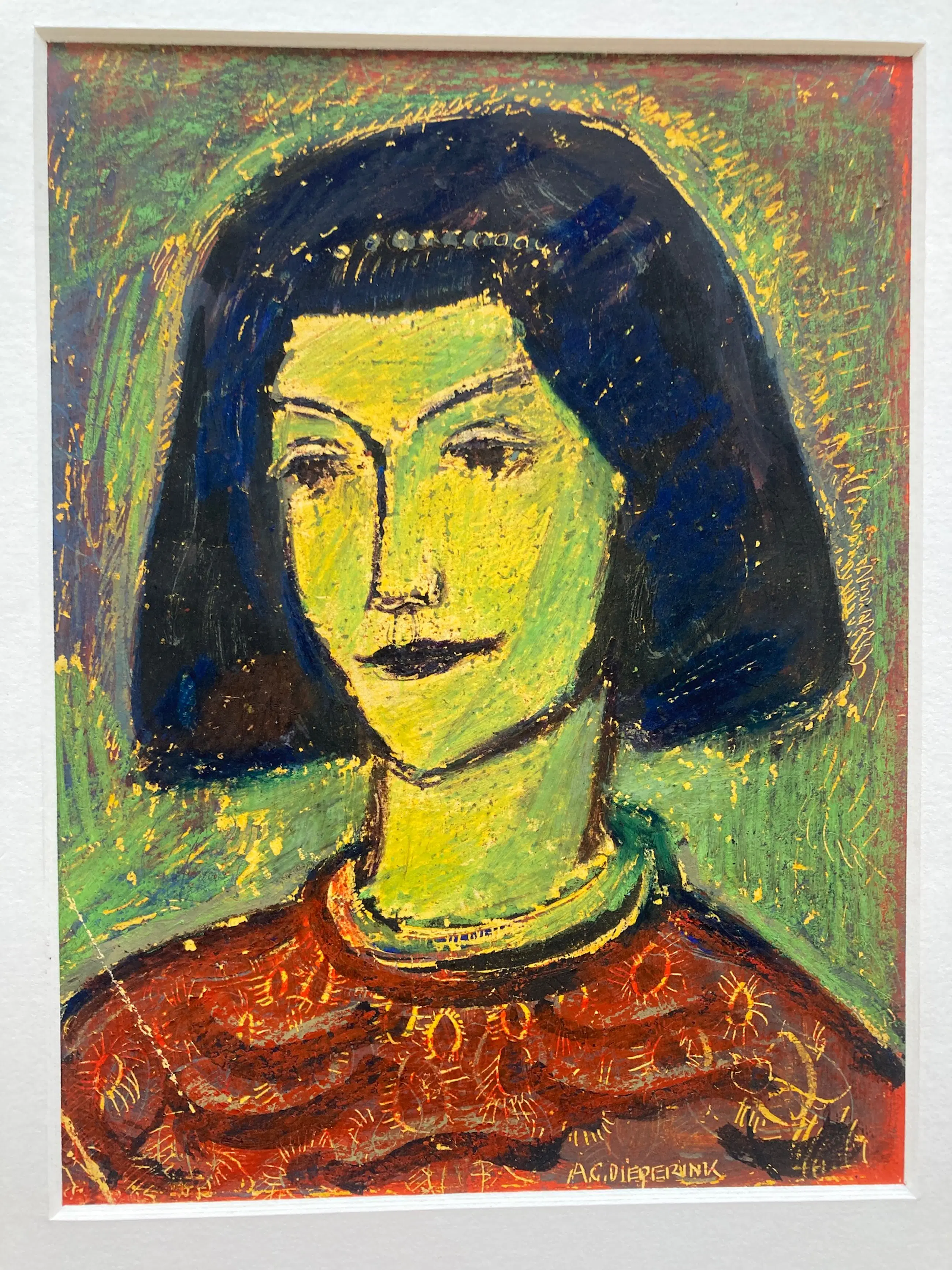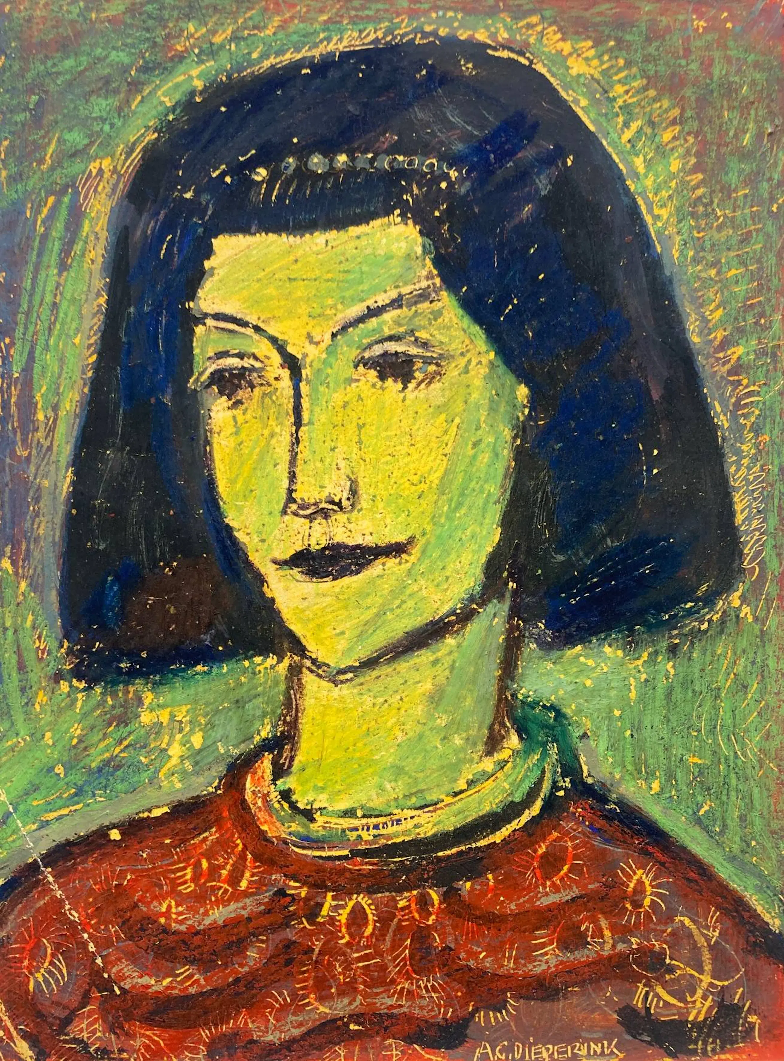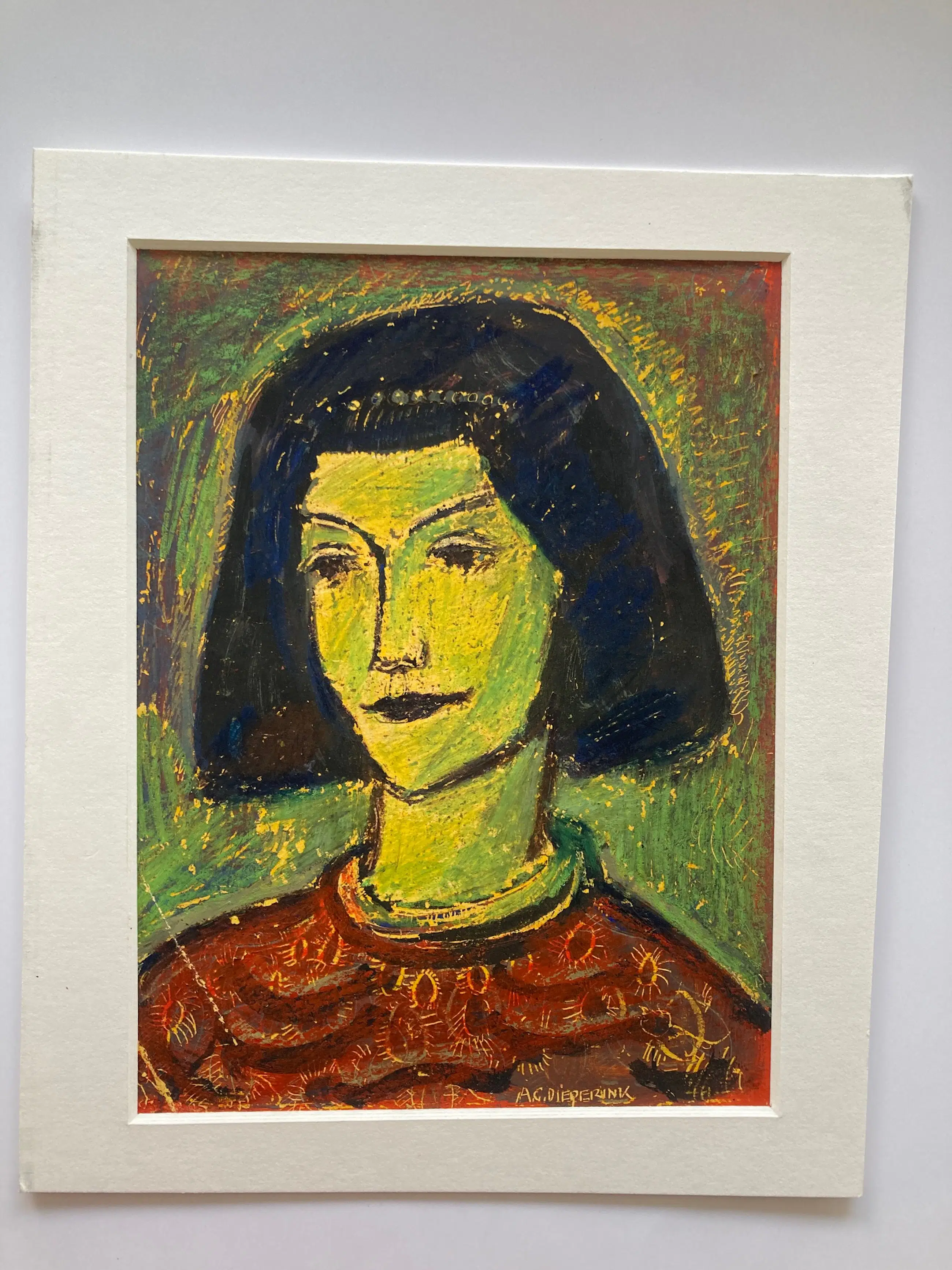 Mooieportrettekening in oliepastel van de Nederlandse kunstenaar AG Dieperink . Gesigneerd in onderaan. U kunt het werk vooraf komen beoordelen in de schatkamer van galerie Rotor in Gorinchem. Wij kunnen ook uw inlijsting verzorgen.