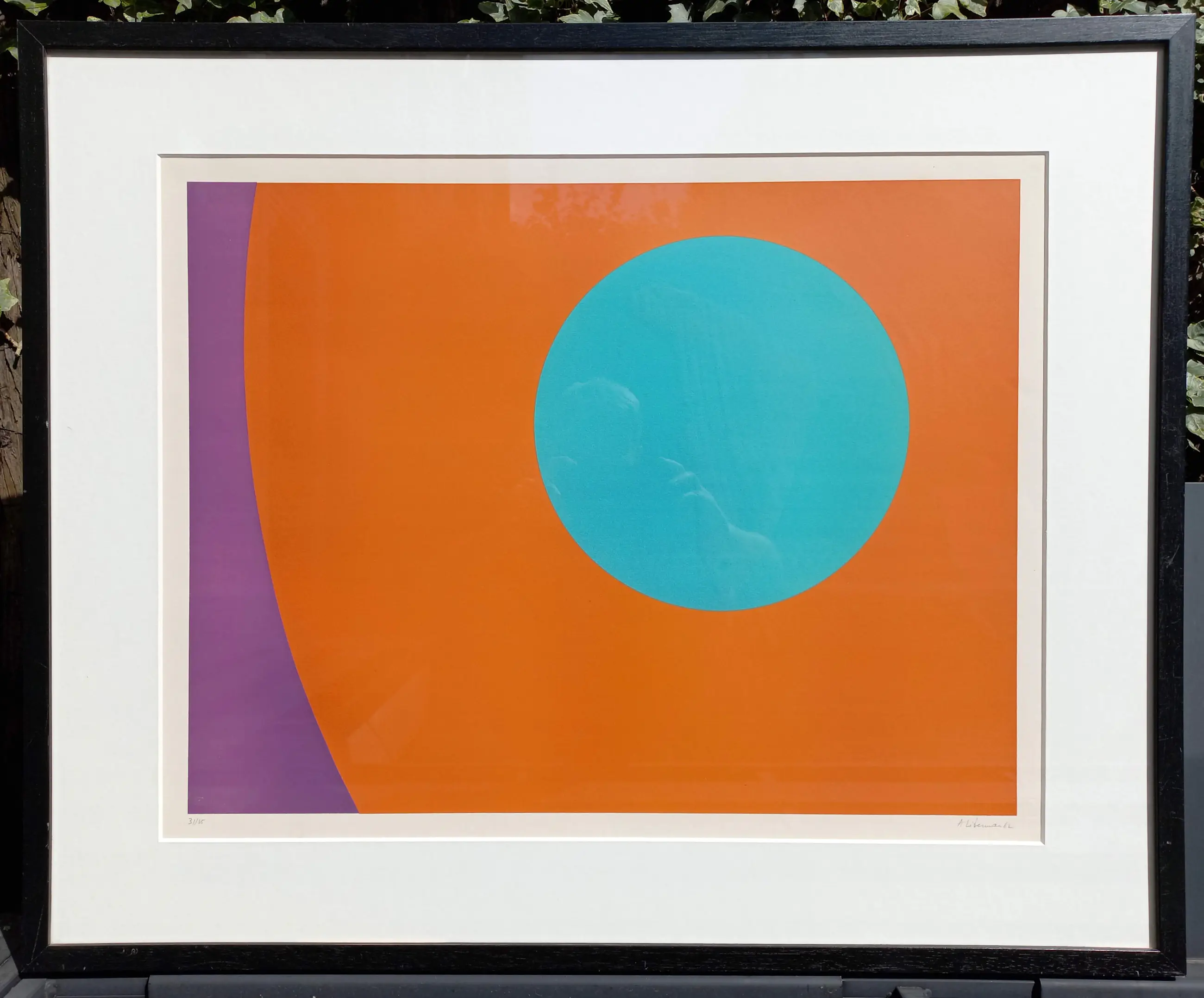 Zeer mooi abstract werk van Alexander Liberman. Litho op Rives papier, met potlood gesigneerd, gedateerd (’62) en genummerd (31/35). Professioneel ingelijst door L’Encadreur (Amsterdam), achter glas en met smetteloos, zuurvrij passe-partout. Alles in zeer goede conditie.