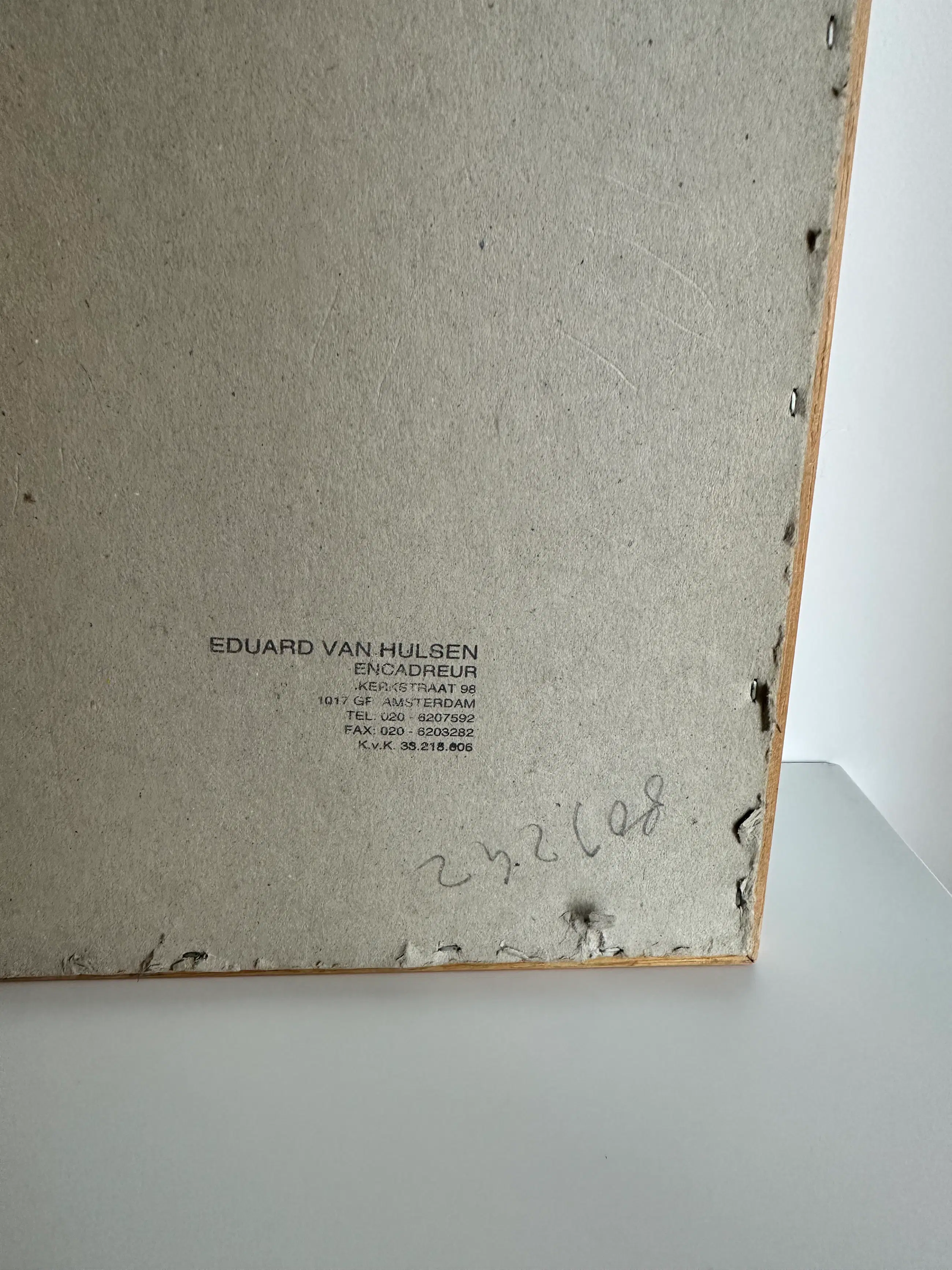 -lichte waterschade en scheurtjes zichtbaar op de achterkant van de lijst (zie foto 8).