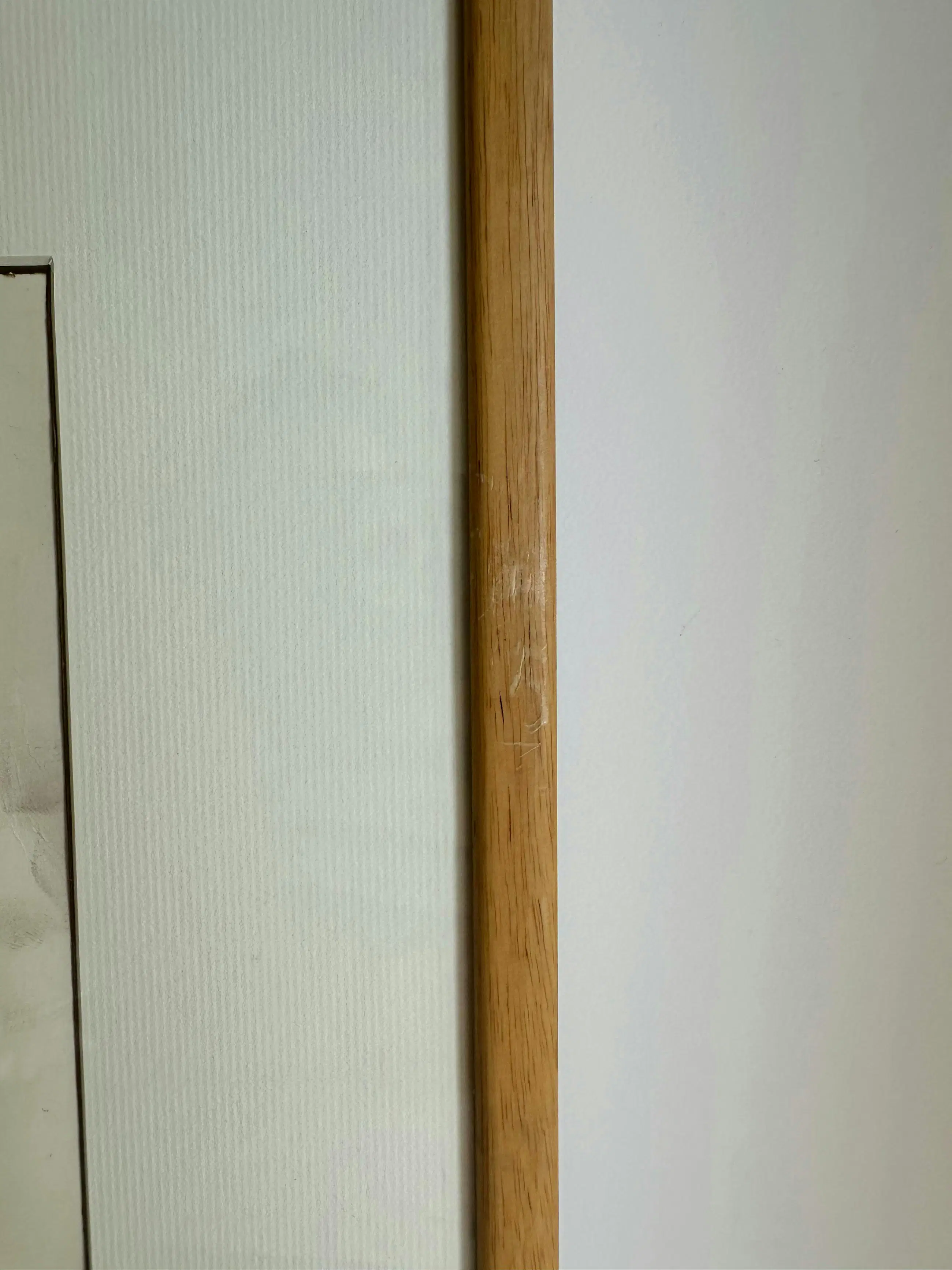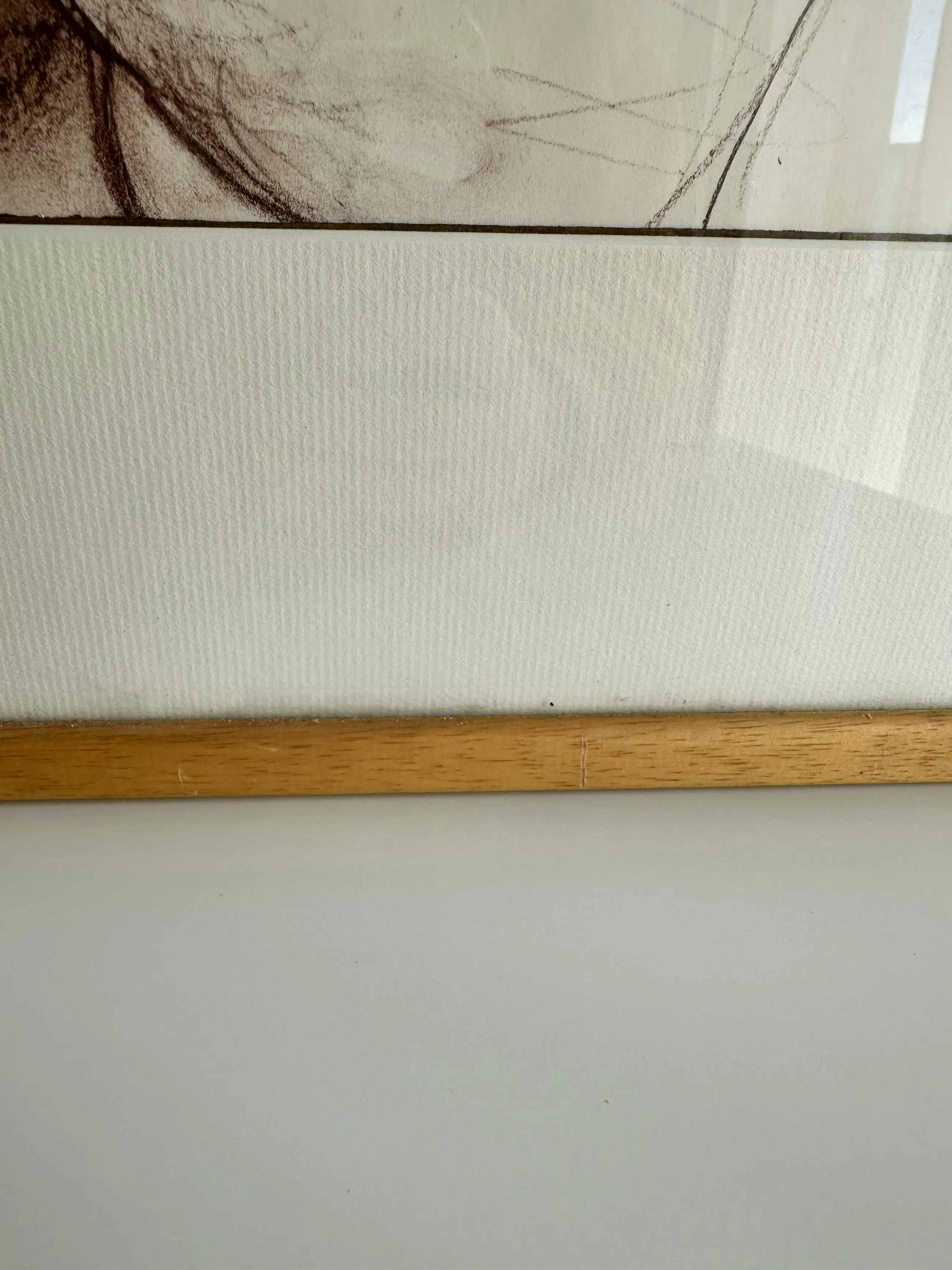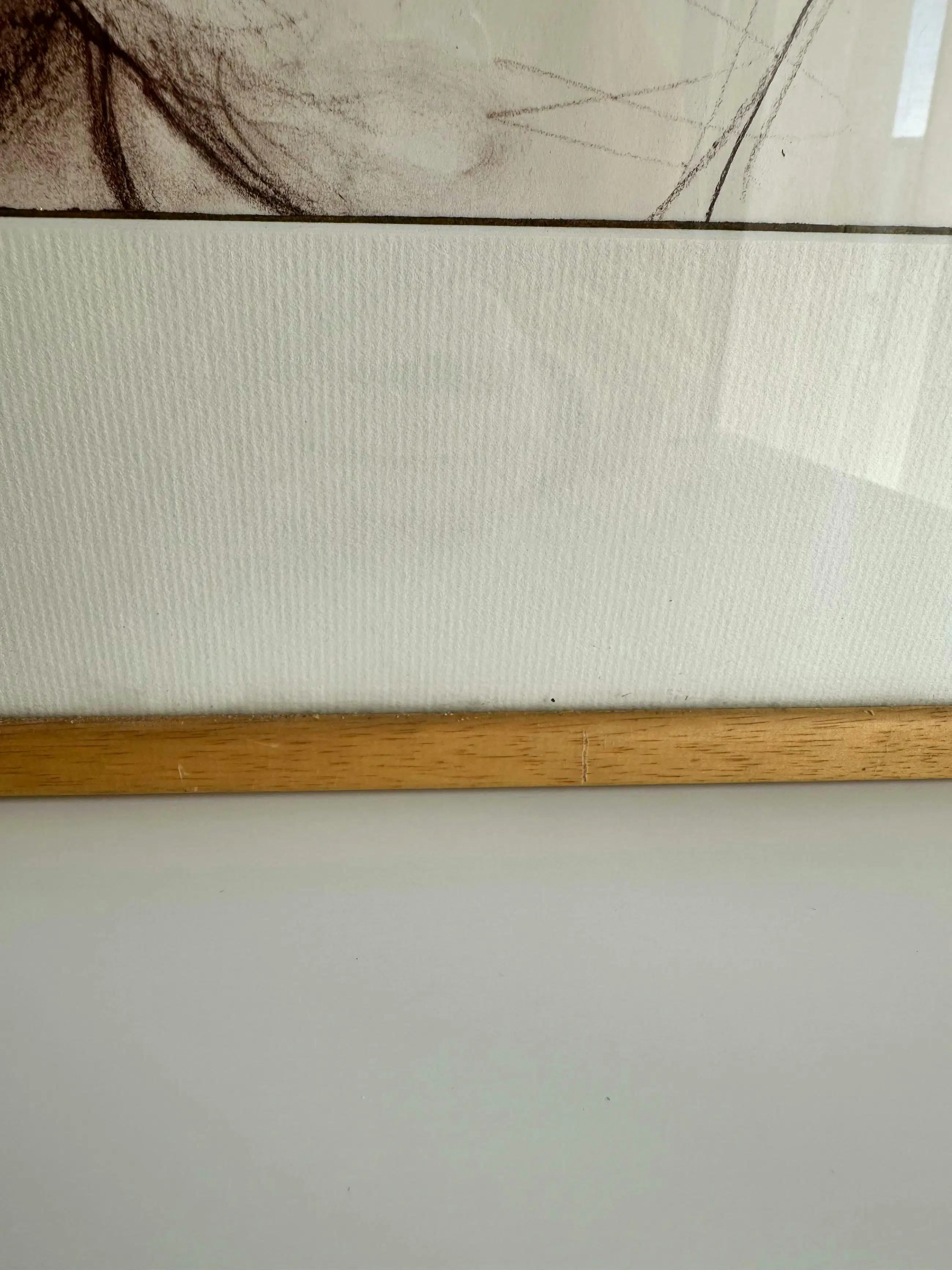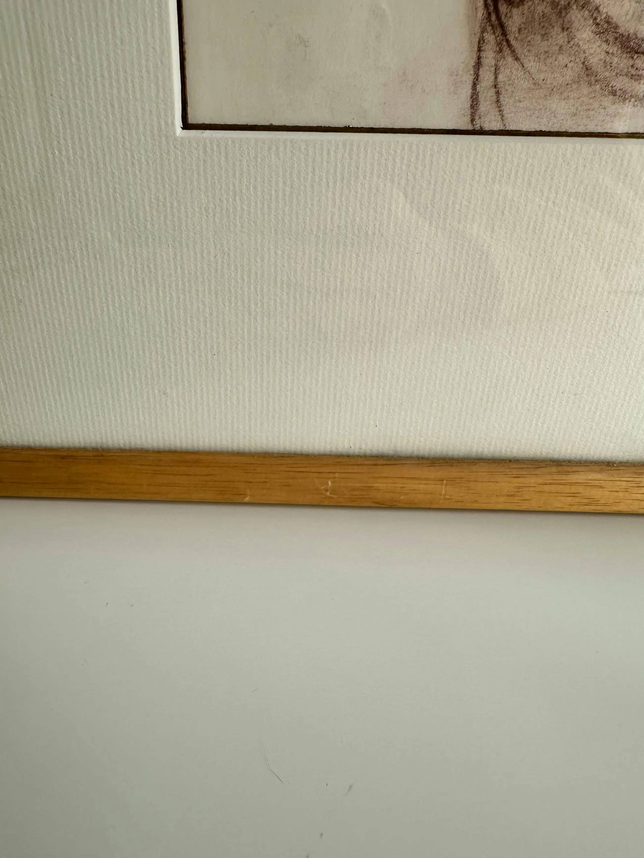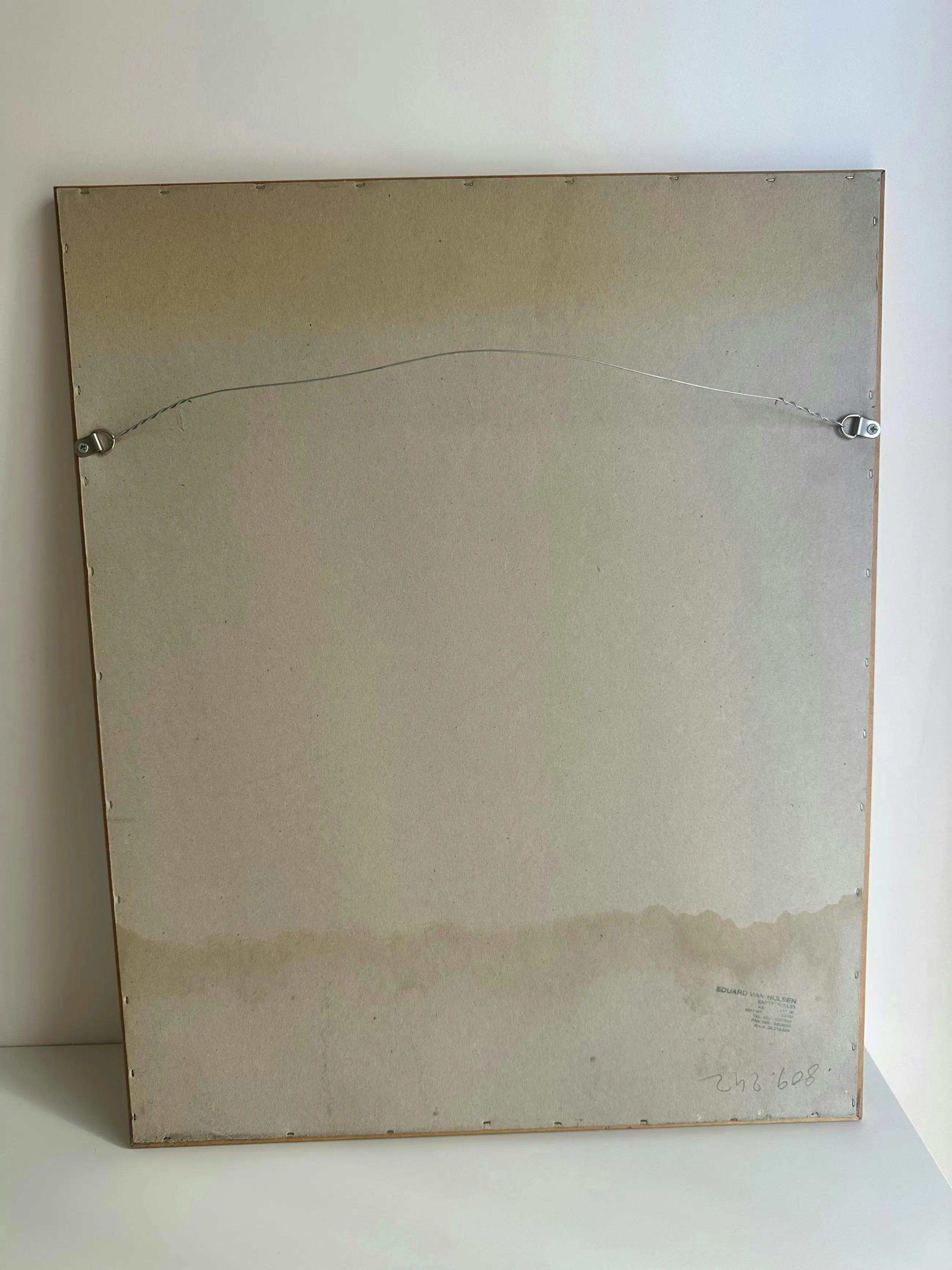 -lichte waterschade zichtbaar op de achterkant van de lijst. Het kunstwerk zelf is verder volledig intact en onbeschadigd.