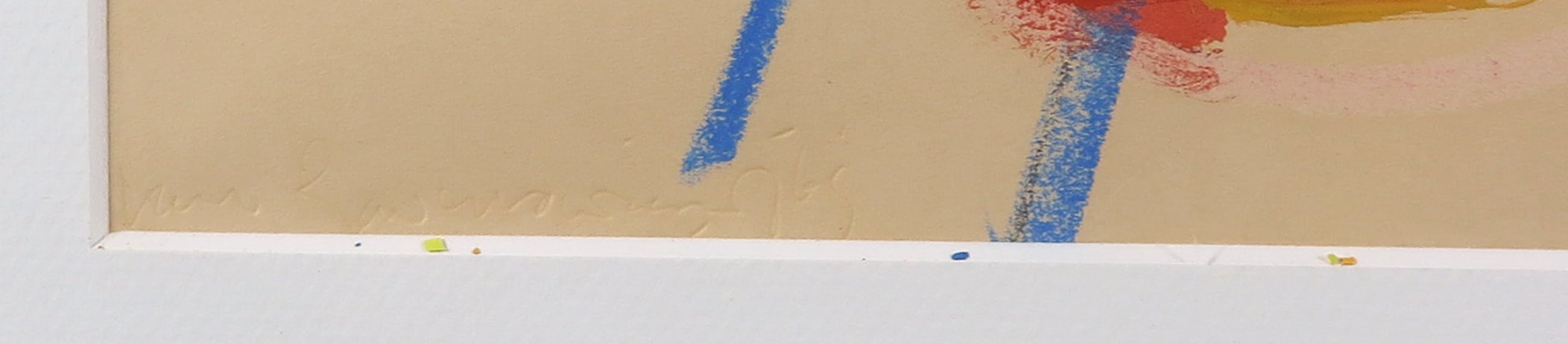 | Sterke vergeling. Ook is er wat verf afgebrokkeld, wat nu los in de lijst zit. In de hoek linksonder een scherfje uit het glas (zit net achter de lijst). | |