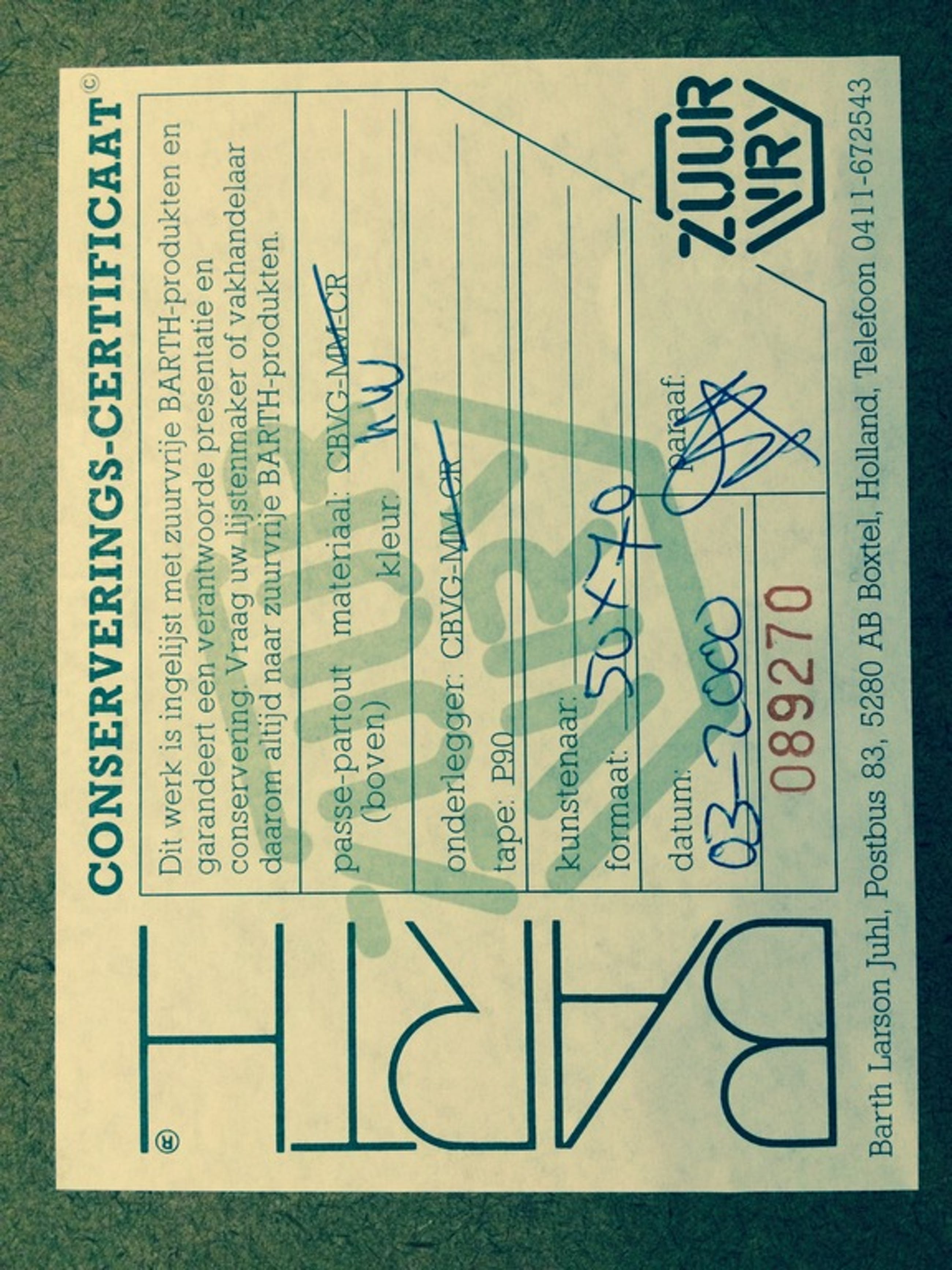 Met zuurvrij passe-partout ingelijst.