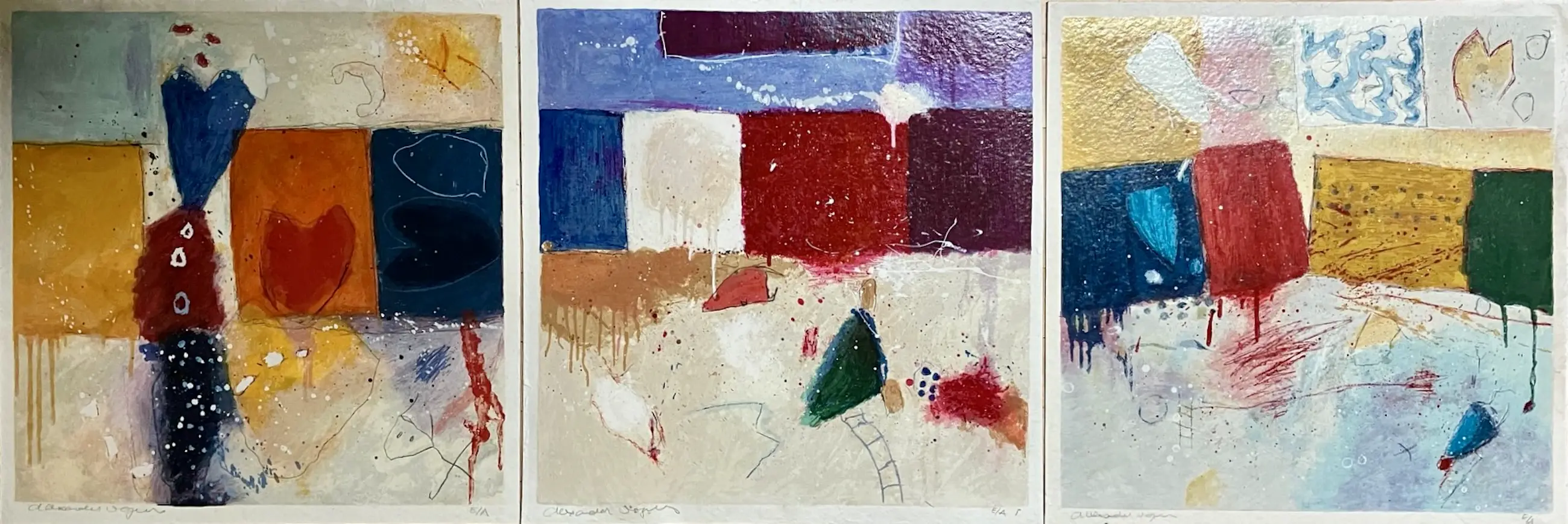 Drie épreuves d’artiste van Alexander Vogels, lyrisch-abstract schilder.