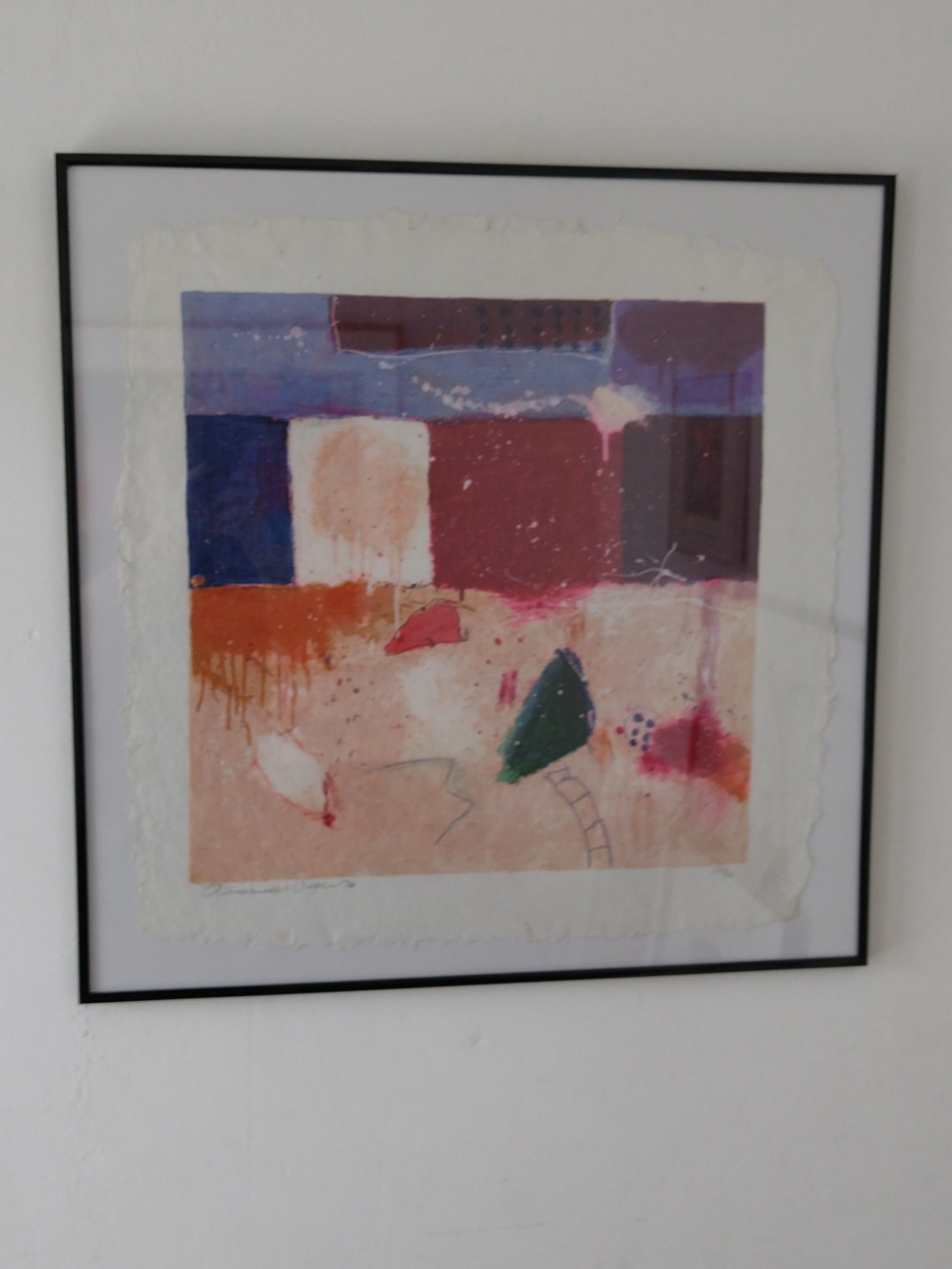 Mooie abstracte litho op geschept papier in nieuwe lijst puntgaaf
