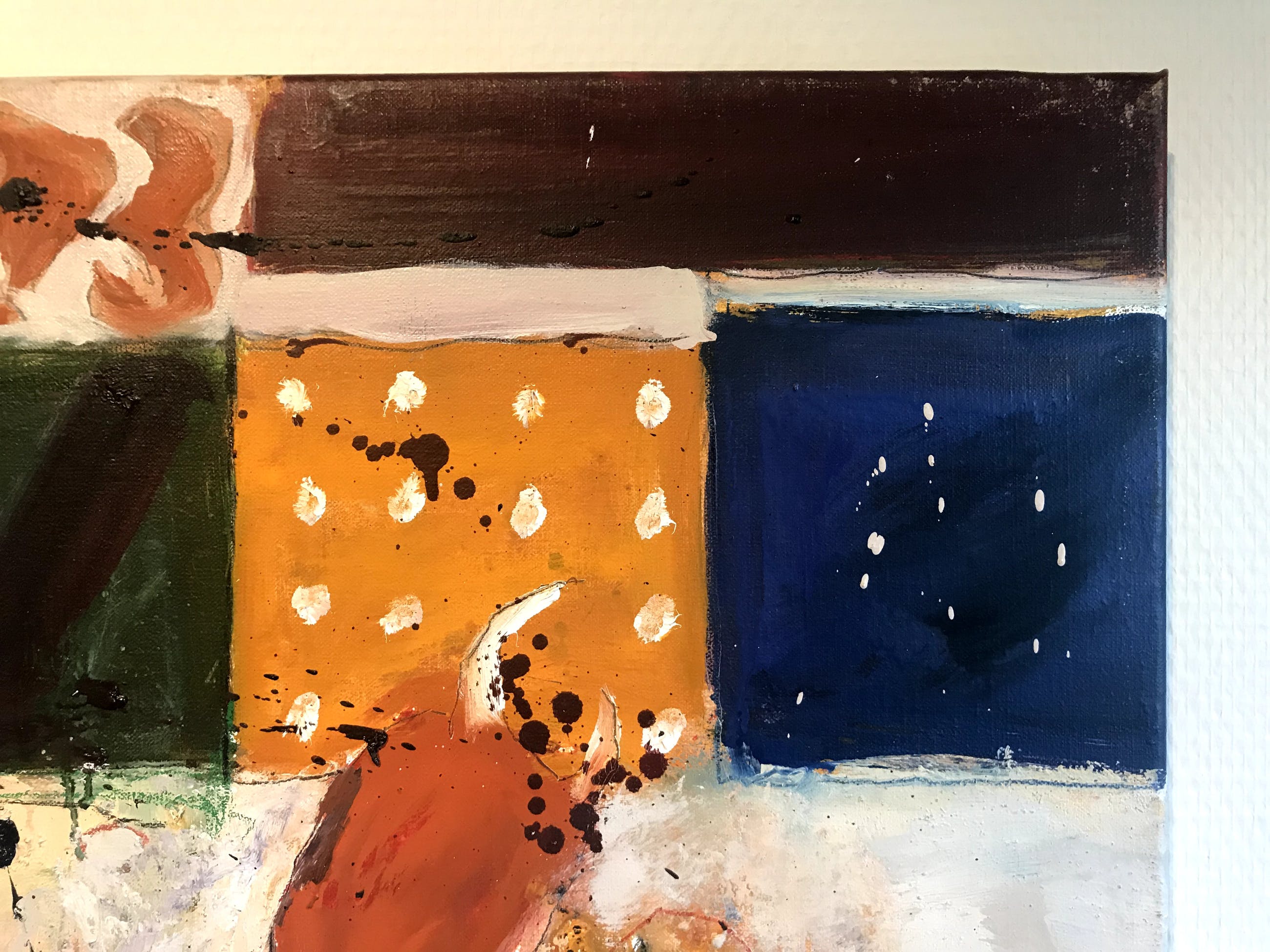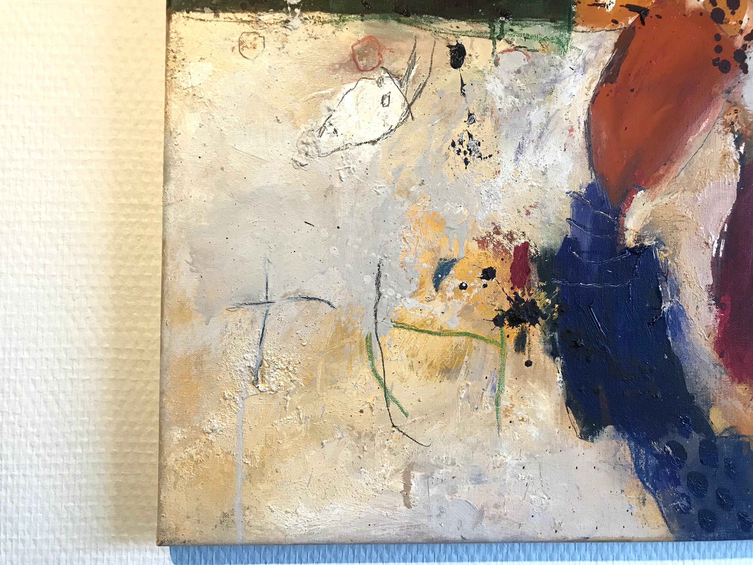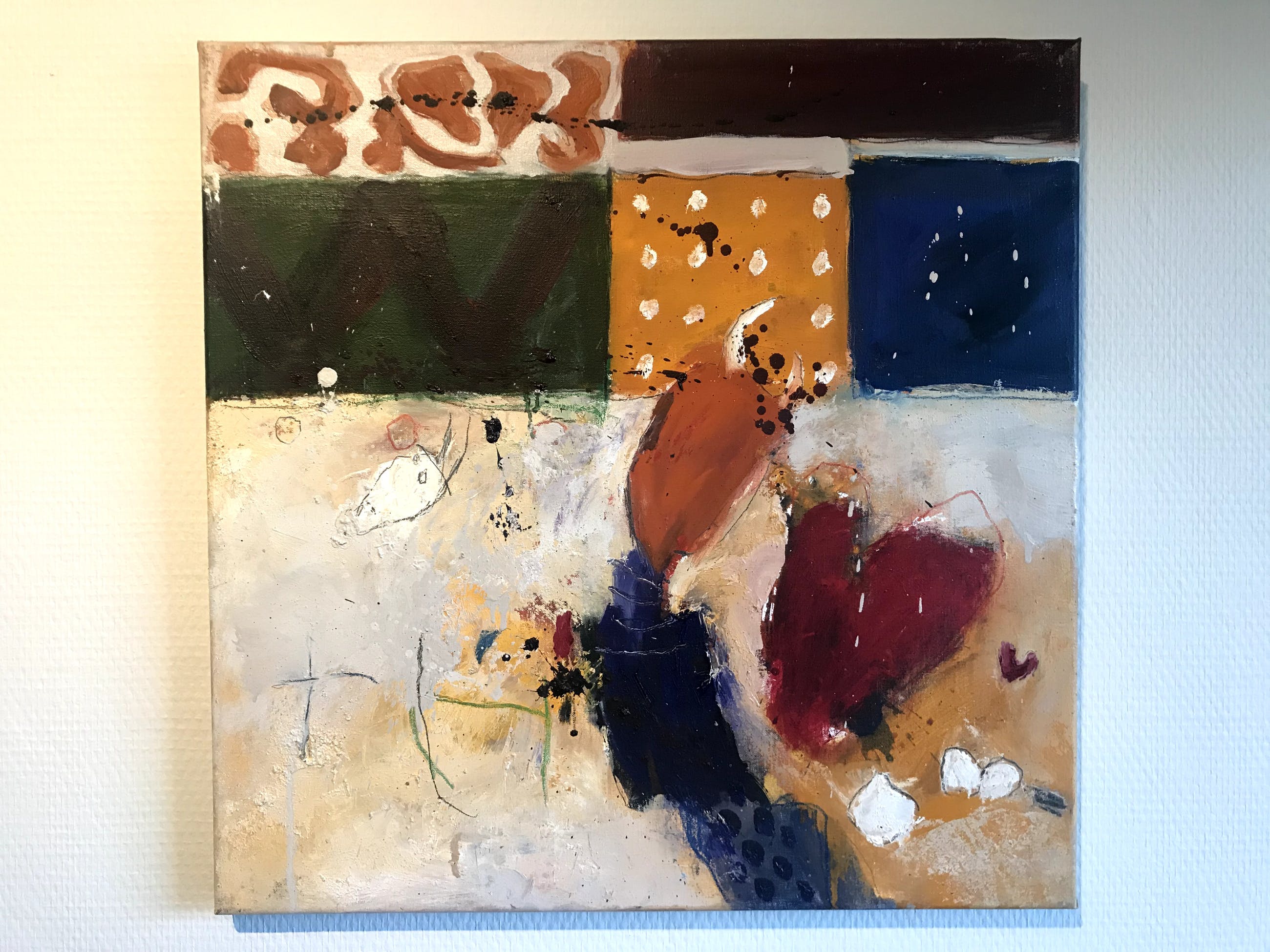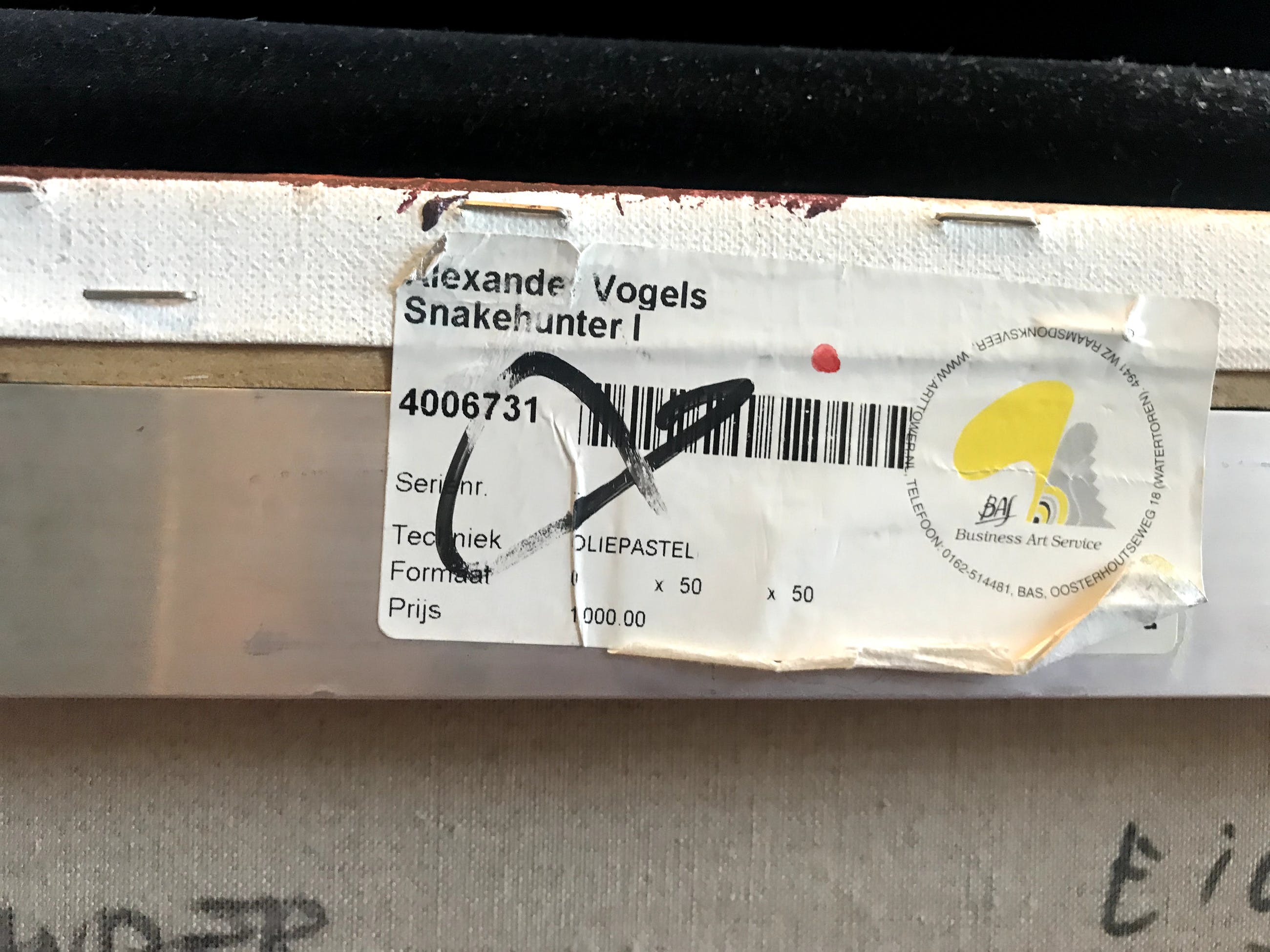 "Snakehunter I", een sprekend abstract kunstwerk van 50x50 cm van de begaafde kunstenaar Alexander Vogels. Het schilderij is gebruikt als "moeder" voor een grafiekblad. De grafiekbladen kunt u inzien bij verkochte werken van A. Vogels op Kunstveiling.
