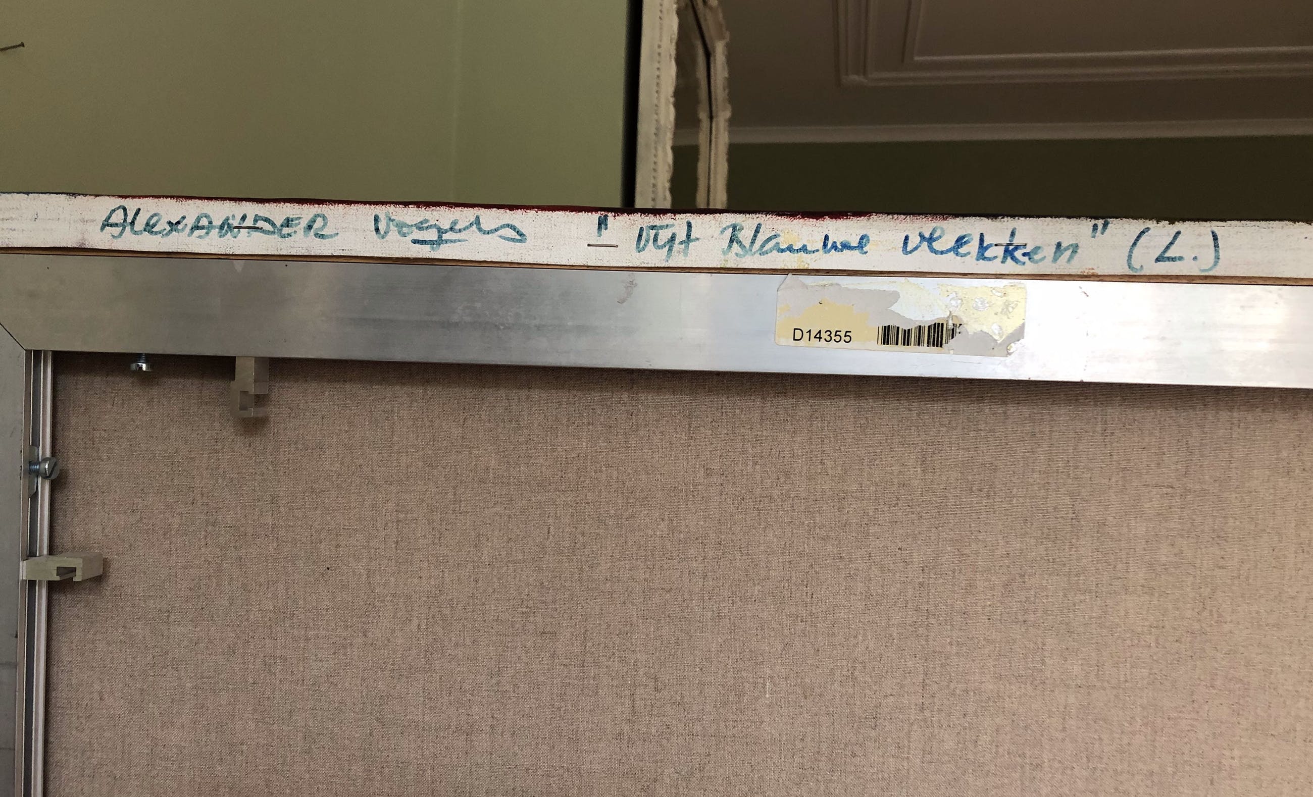 Het schilderij 'Vijf blauwe vlekken' van Alexander Vogels heeft jaren prachtig gehangen in mijn huis, maar nu ik verhuisd ben past het niet meer en verkoop ik het graag.