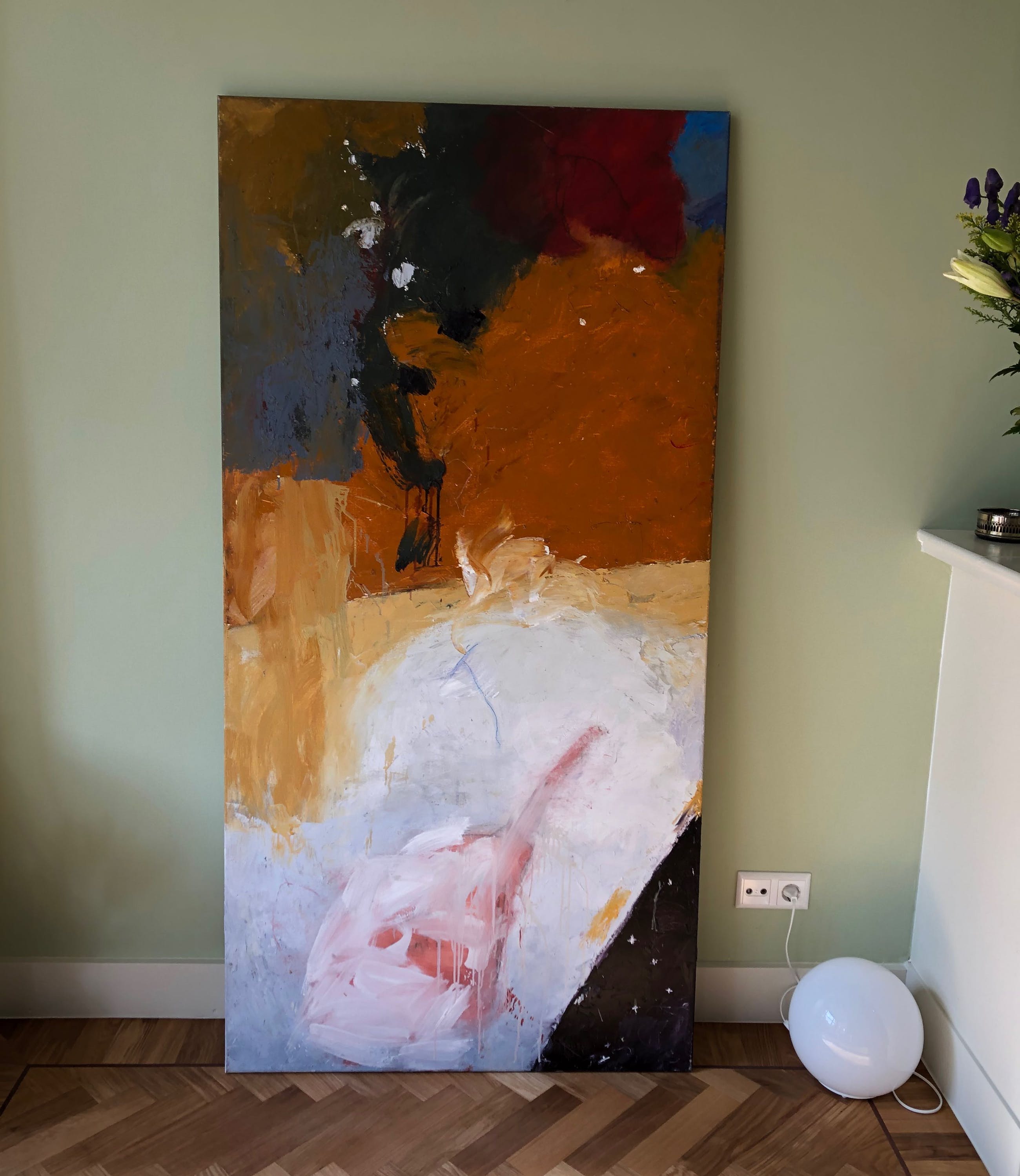 De conditie van het schilderij is zeer goed, op een kleine beschadiging in het canvas na.
