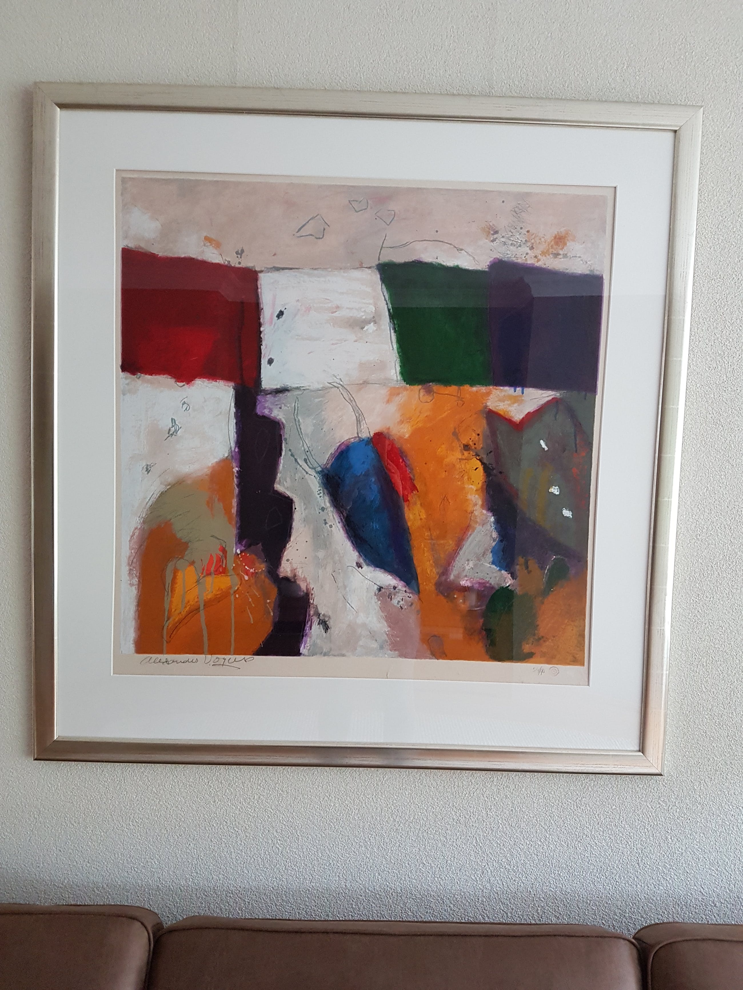 Mooie zeefdruk van Alexander Vogels. Hoogte 113 cm, breedte 110 cm.