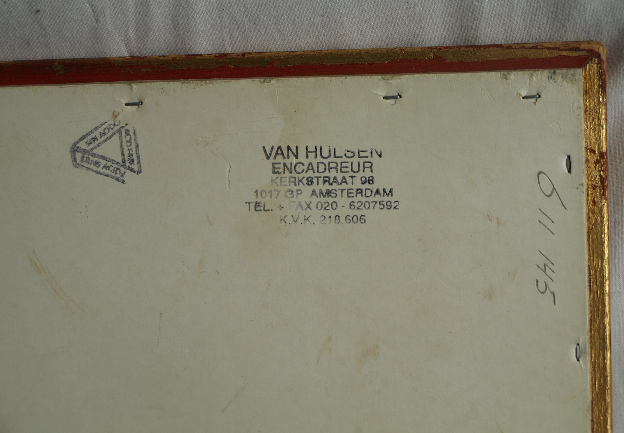 Afhandeling: Let op A.U.B. -Het ingelijste werk kan opgehaald worden in Amsterdam. Vanwege het formaat en de kwetsbaarheid van de glasplaat kan het werk niet per post verzonden worden. Het afhalen heeft voor ons geen haast, dus het kan wanneer het u schikt om naar Amsterdam te komen. -U kunt in Nederland en België eventueel gebruikmaken van de gespecialiseerde koeriersdienst van Kunstveiling: “Swift koeriers”. (zie ook de info onderaan deze pagina onder het kopje “Koeriersdienst”). Binnen Nederland zijn de bezorgkosten van Swift Koeriers voor dit werk: € 45,50.