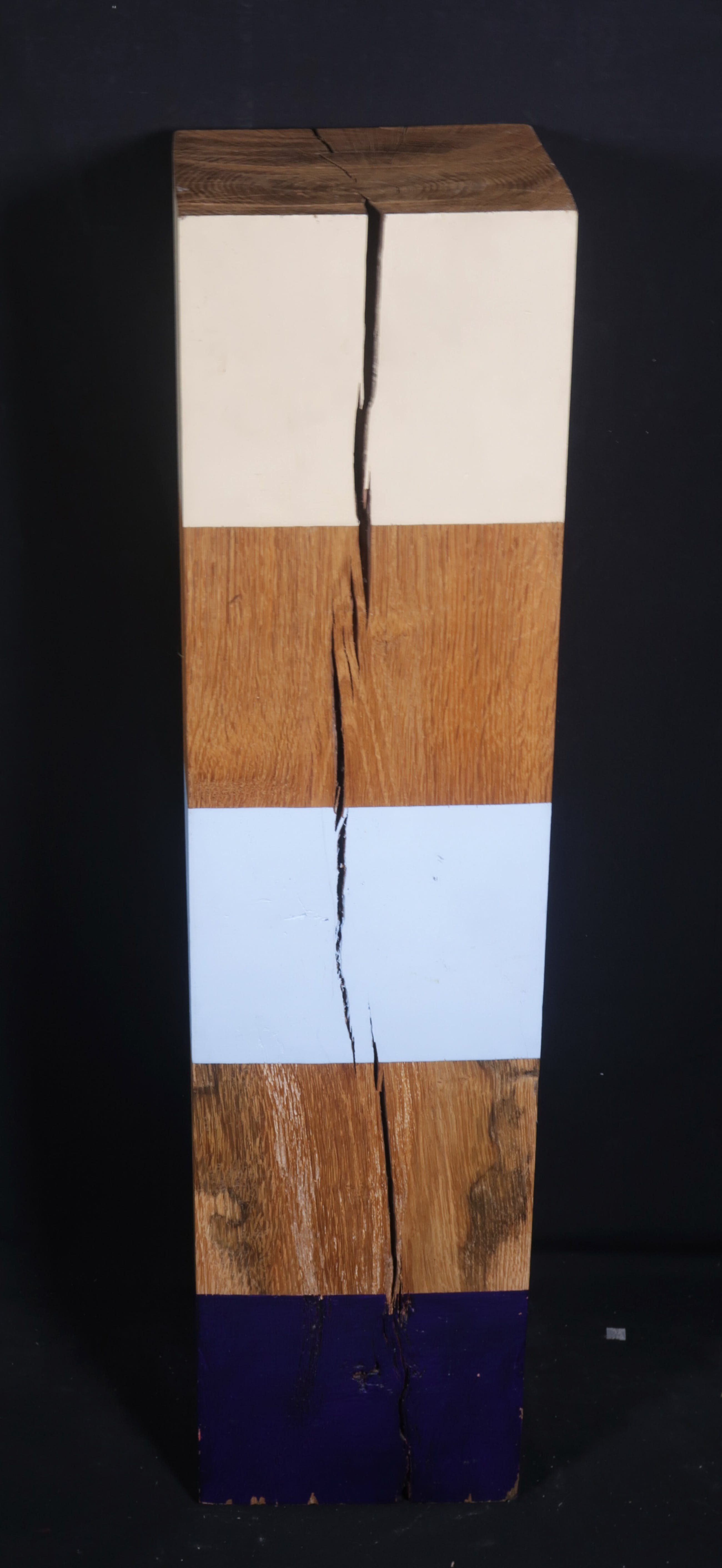 Houten object van de kunstenaar Alf Slegers, met inkeping aan de achterzijde, zodat deze opgehangen kan worden.