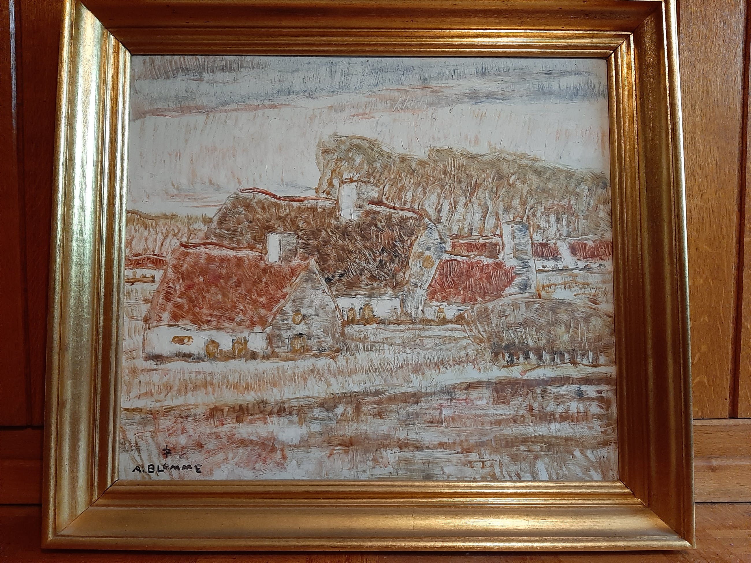 Het schilderij stelt een boerenlandschap voor in West-Vlaanderen.