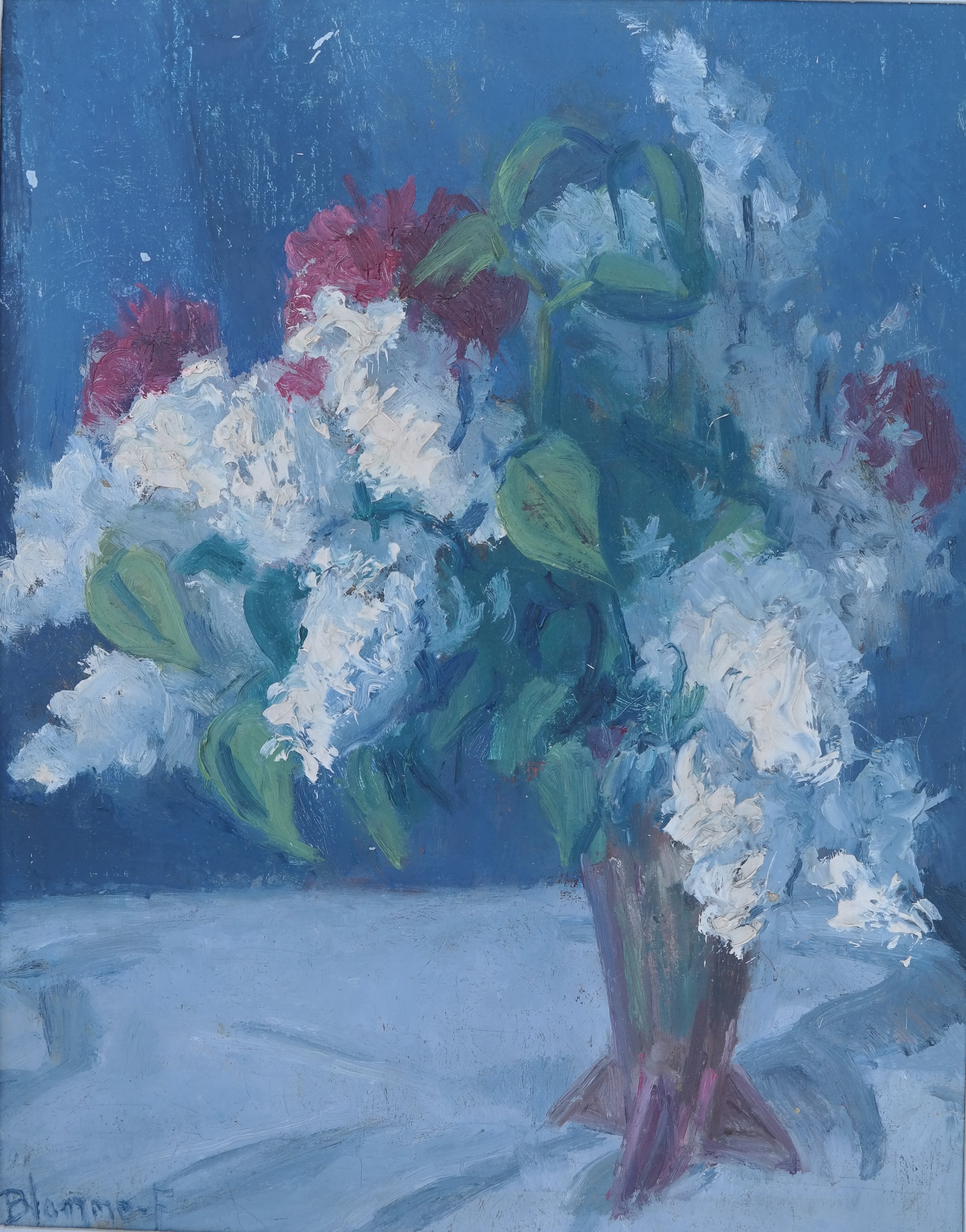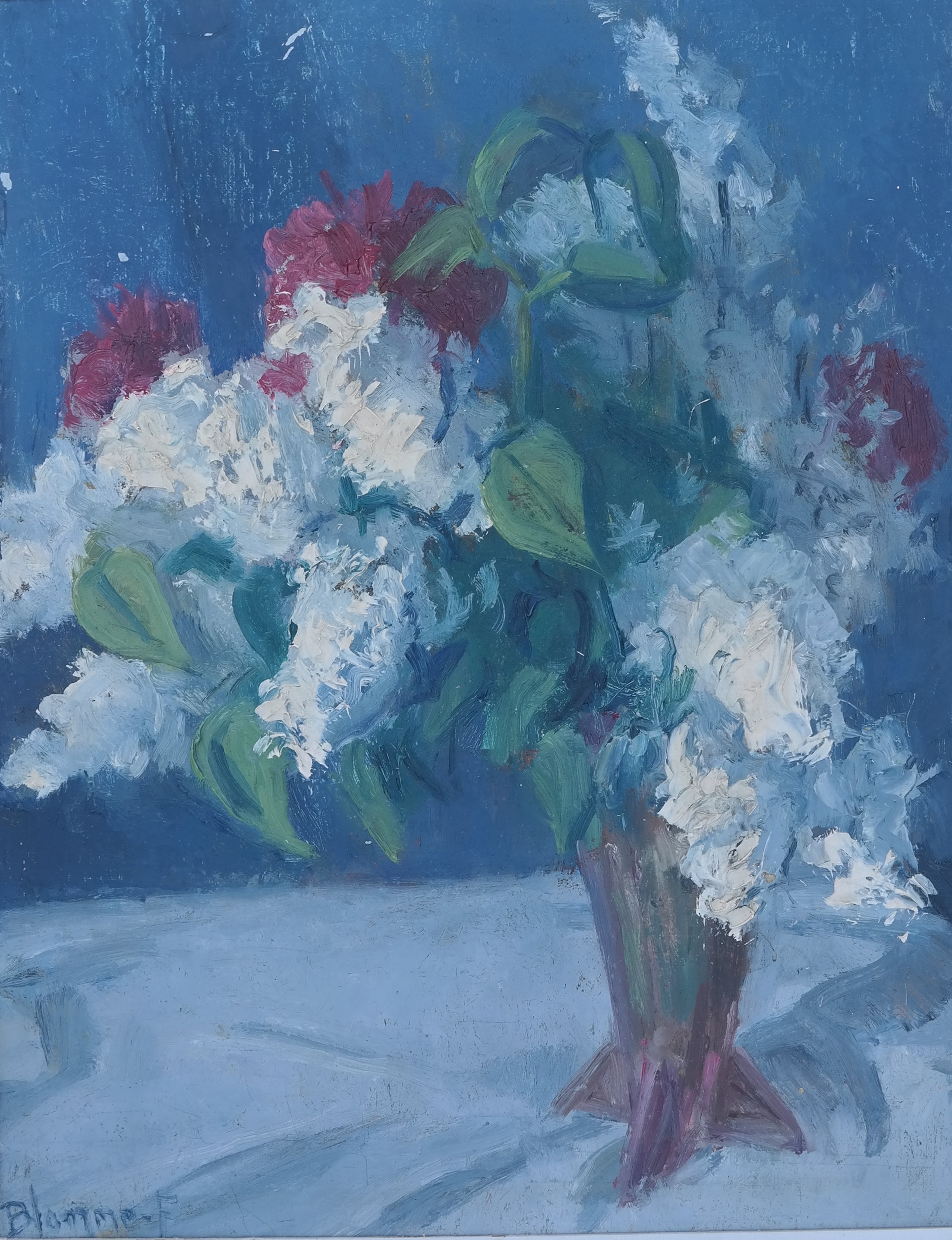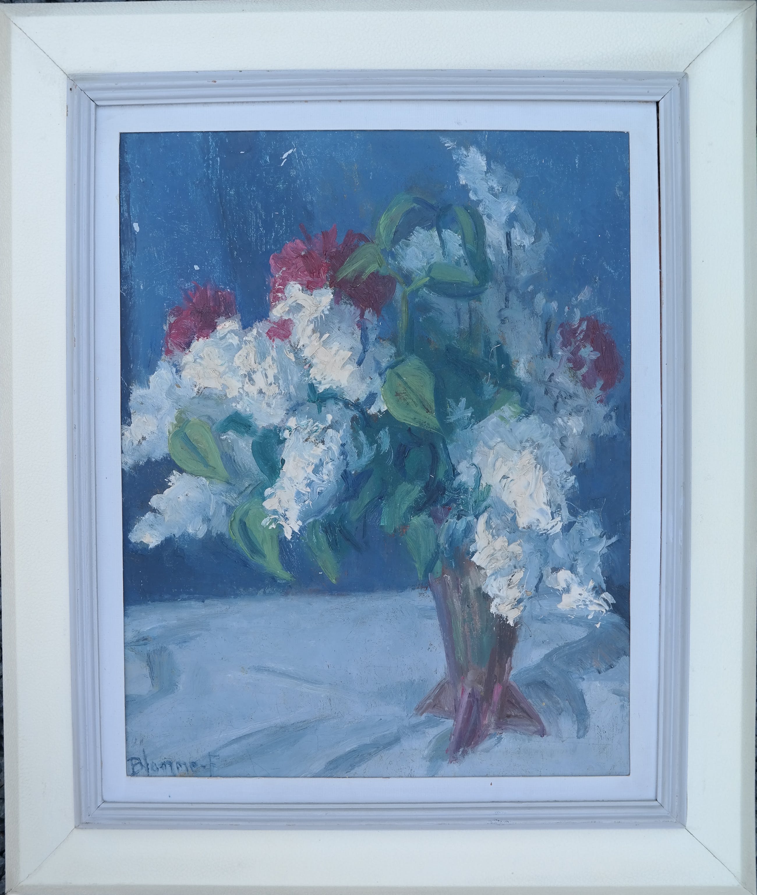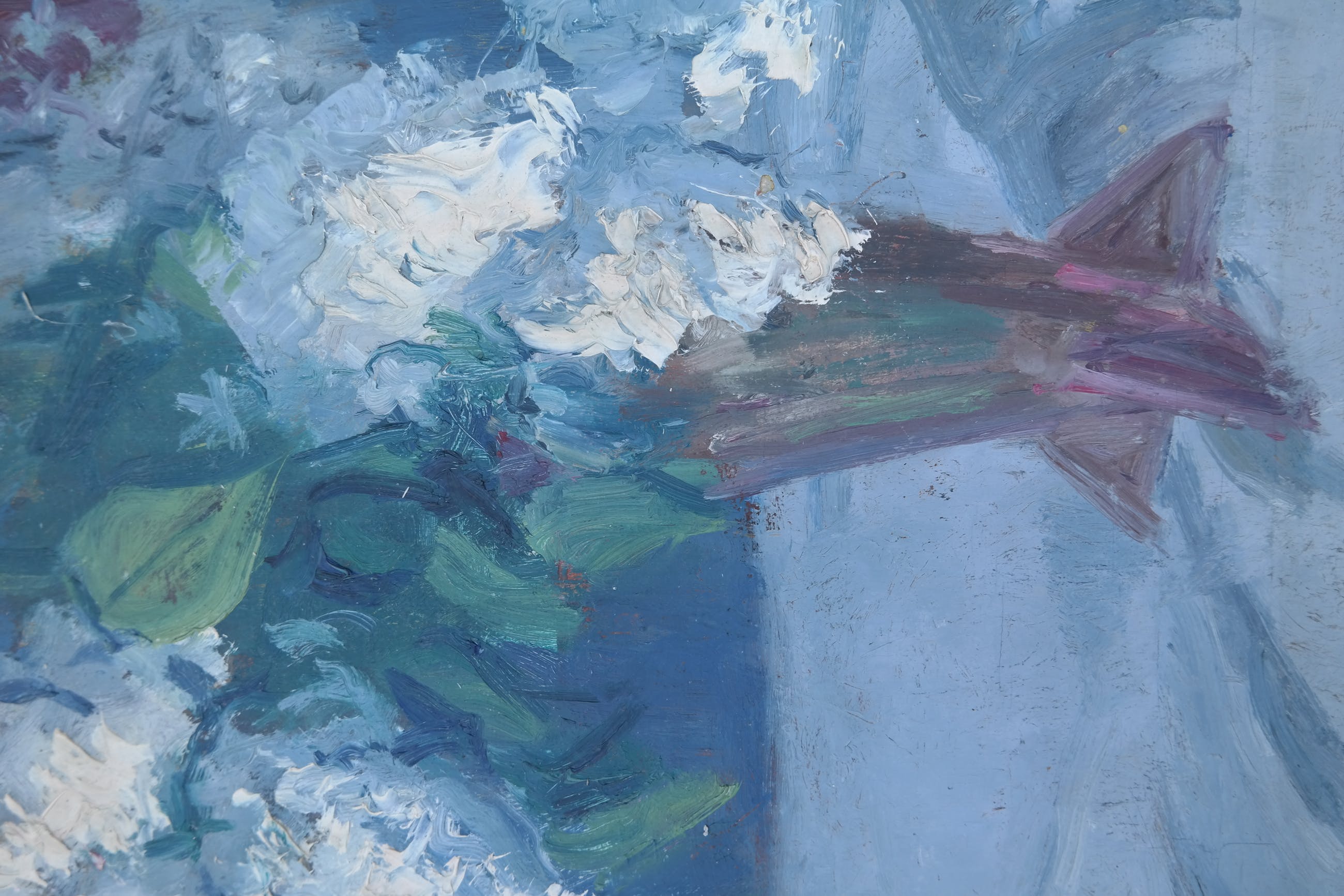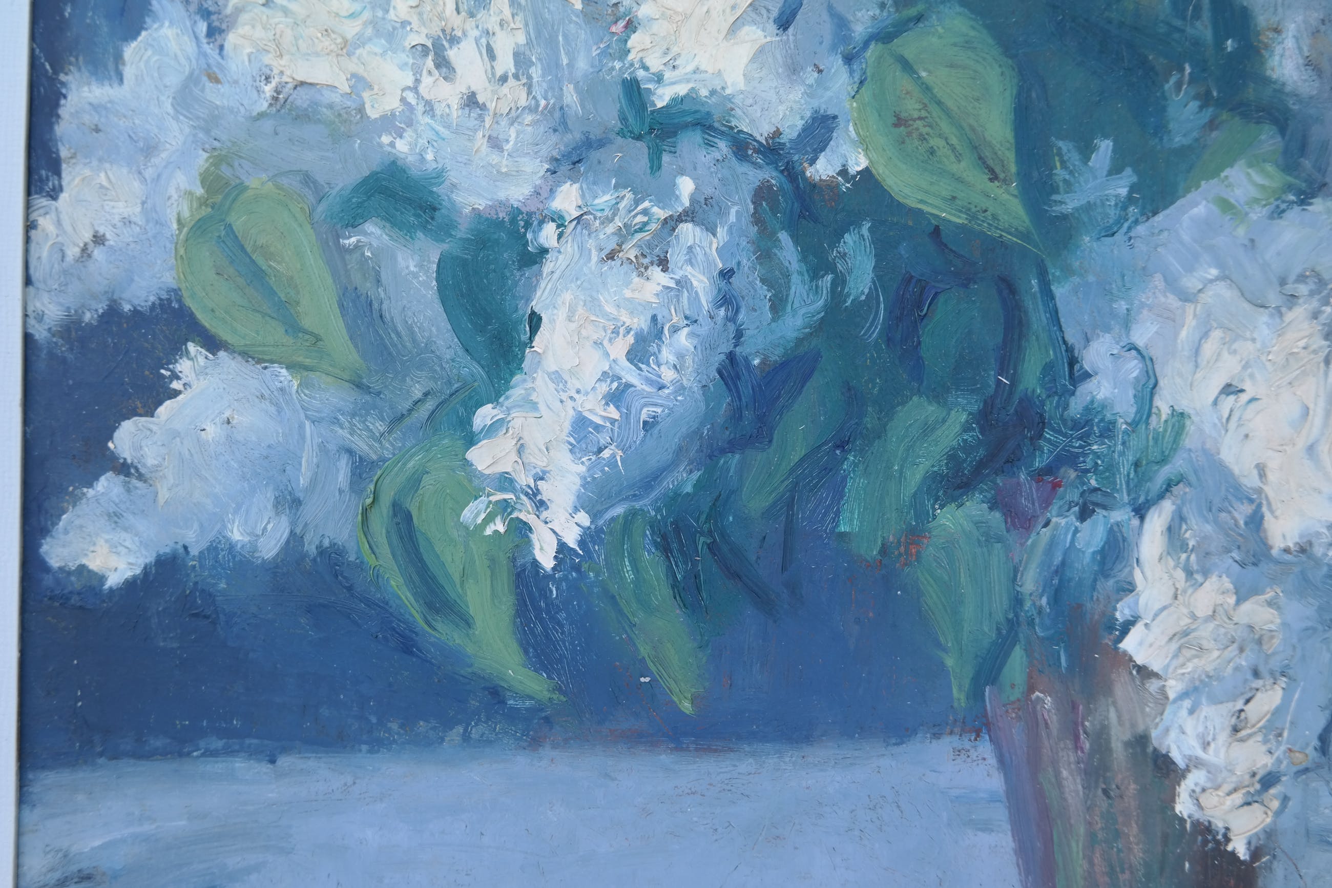 De verf ligt dik op het werk, voornamelijk bij de bloemen waardoor het een mooi plastisch effect krijgt.