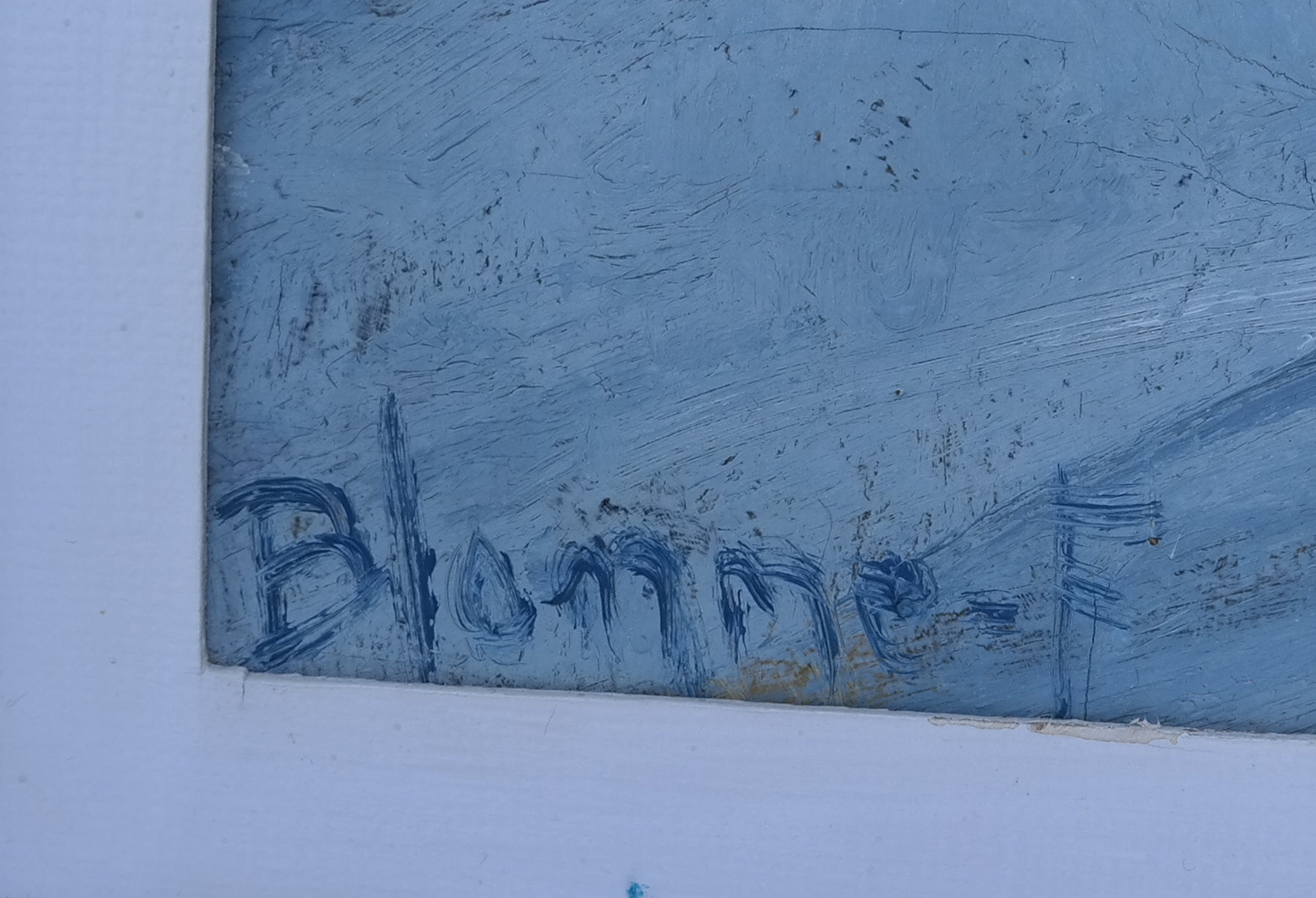 in linkerhoek zijn twee lichte plekjes zichtbaar, onduidelijk of dat verfspetters zijn of dat de verf eraf is. zie foto's