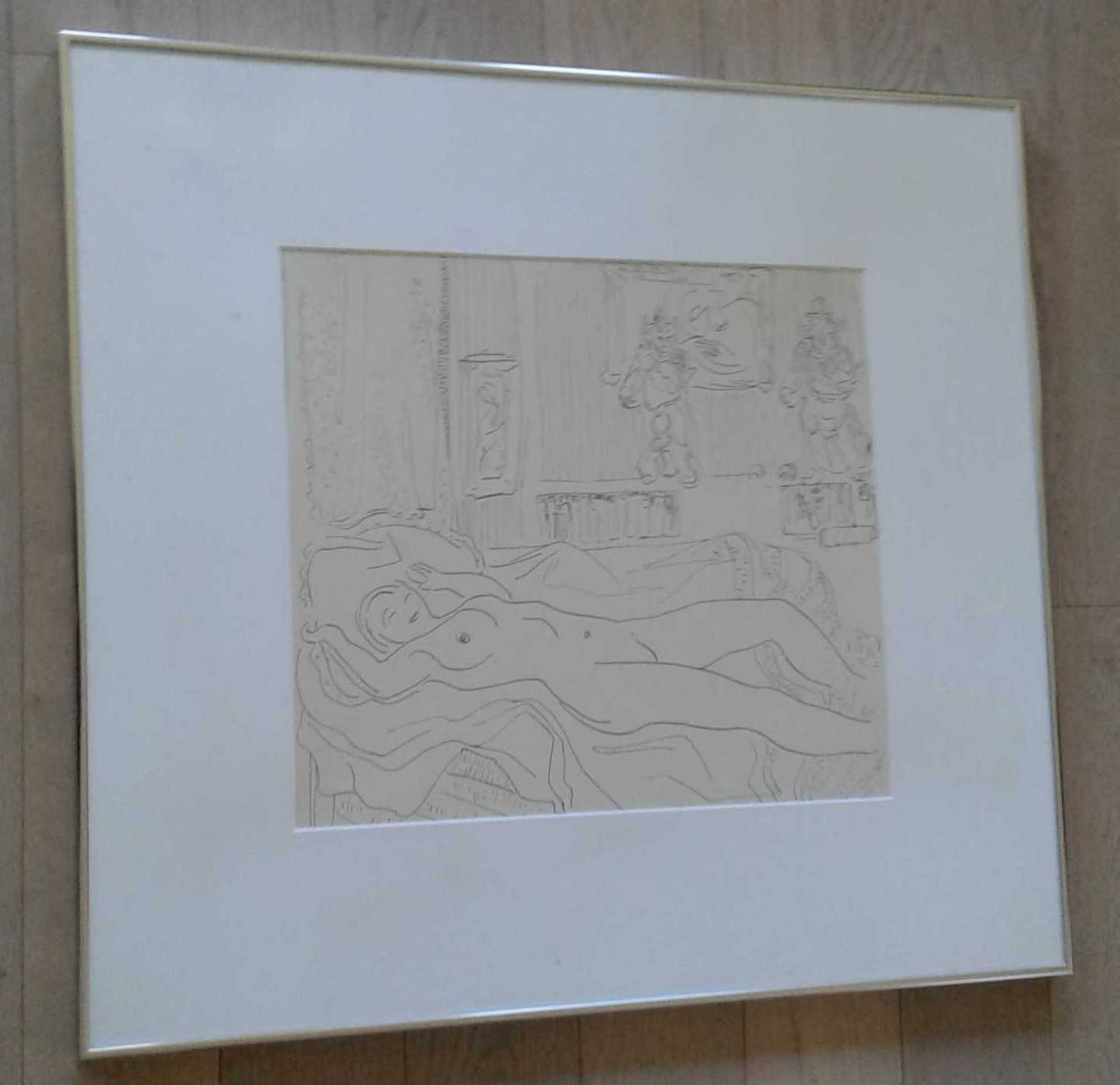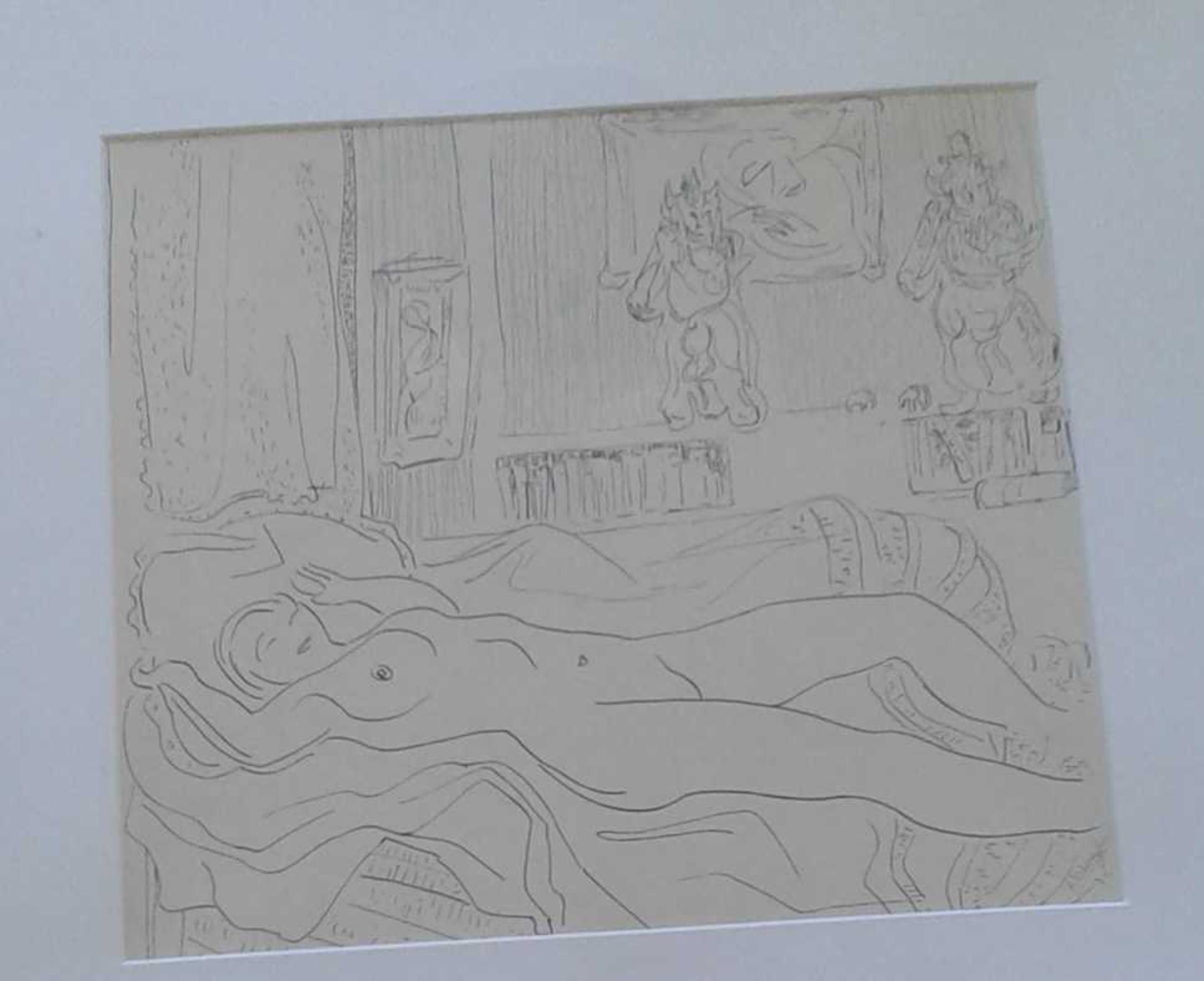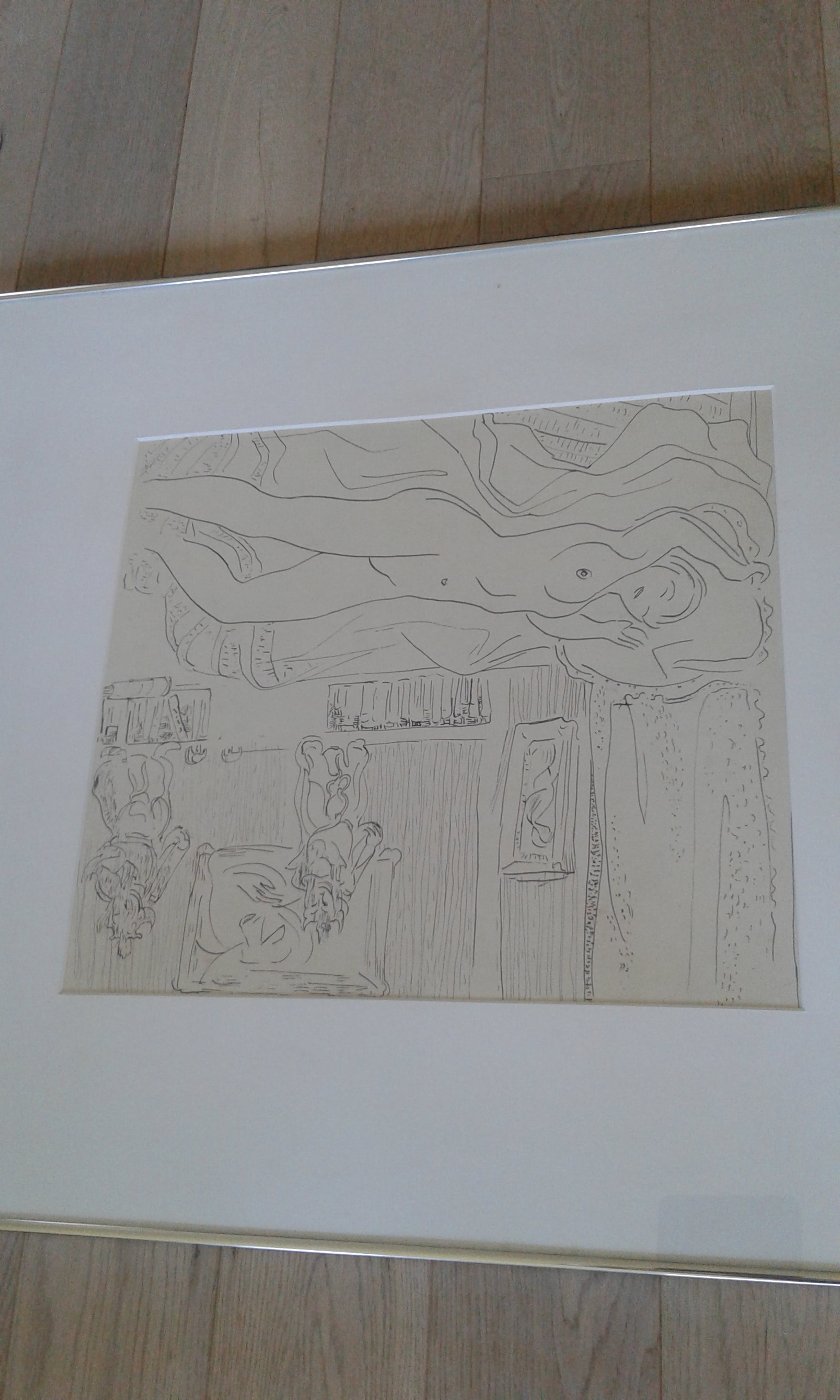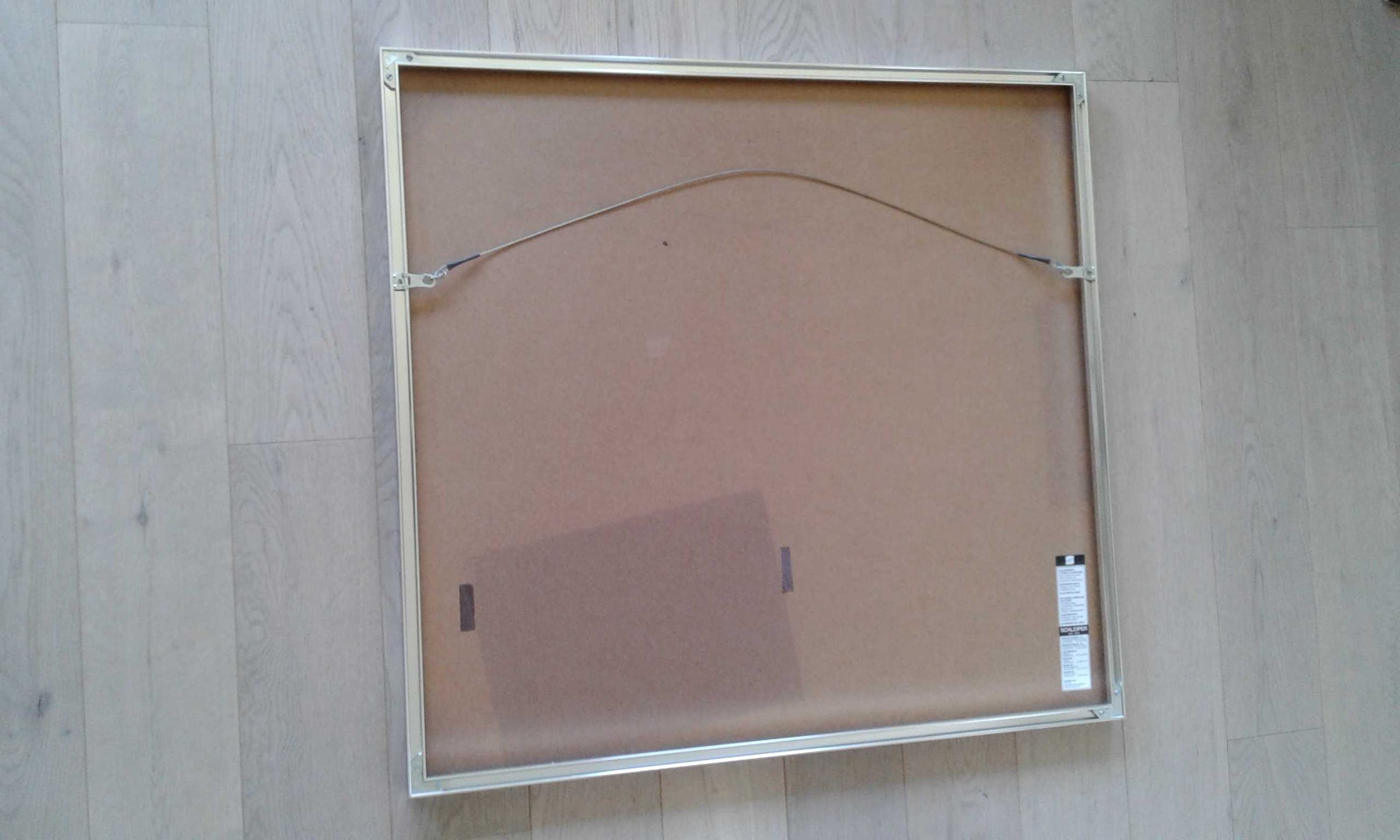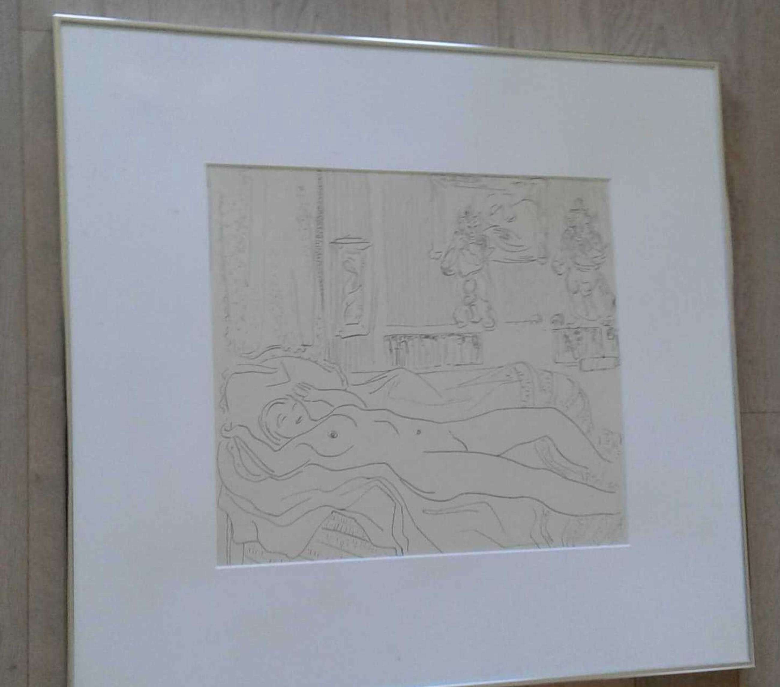 Is kwalitatief ingelijst met brede passe-partout en ophang door Schleiper, etiket achteraan.
