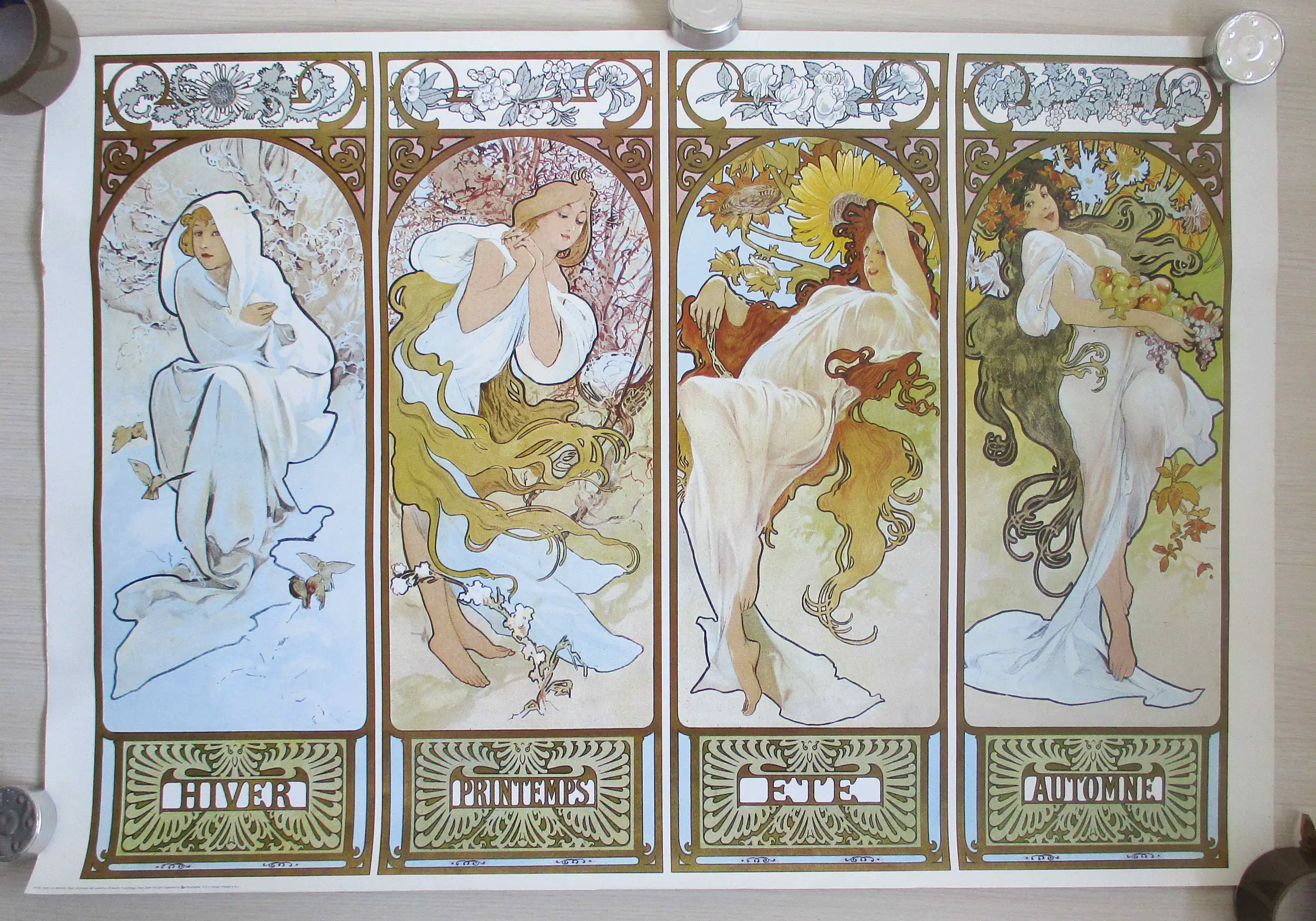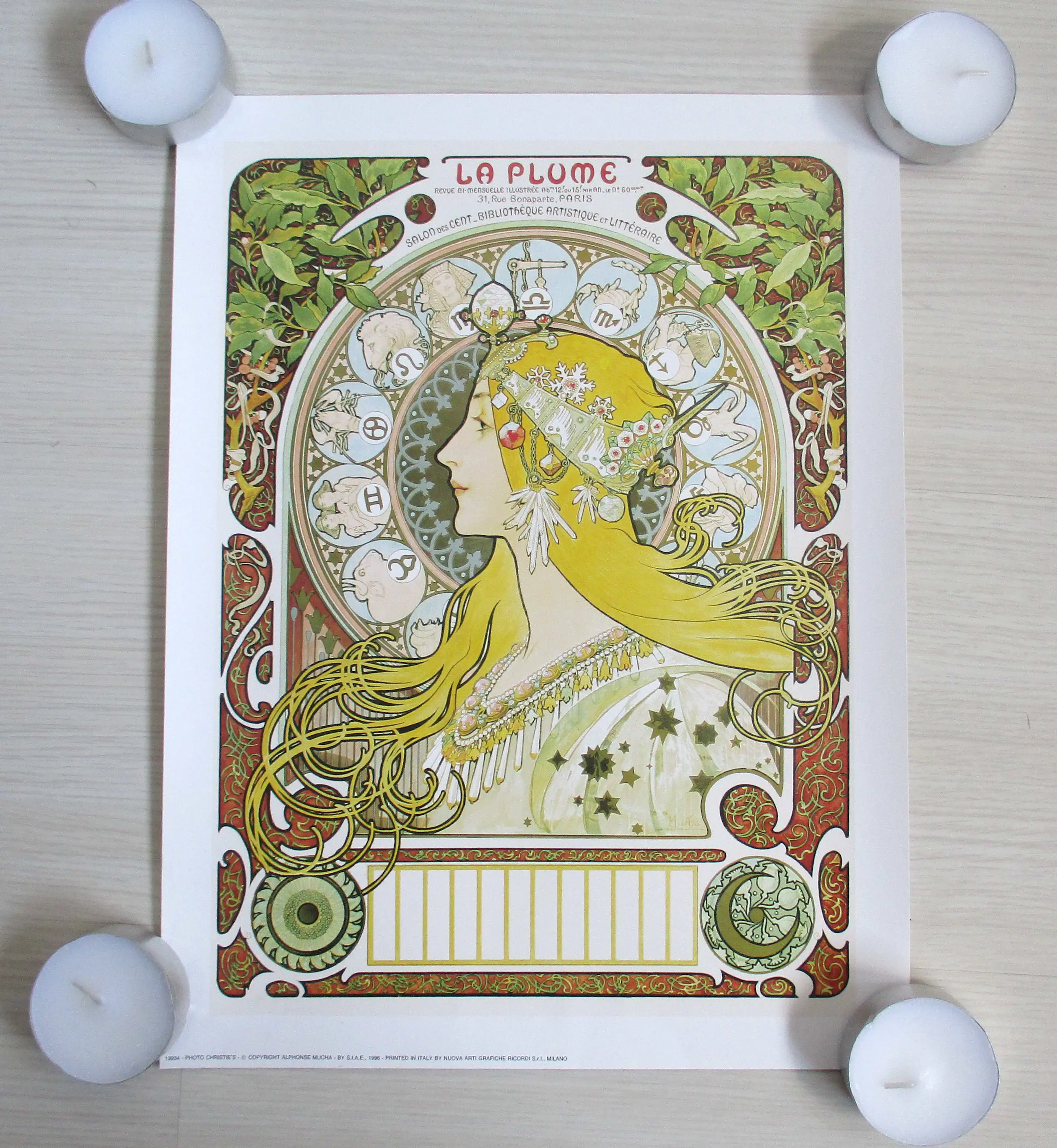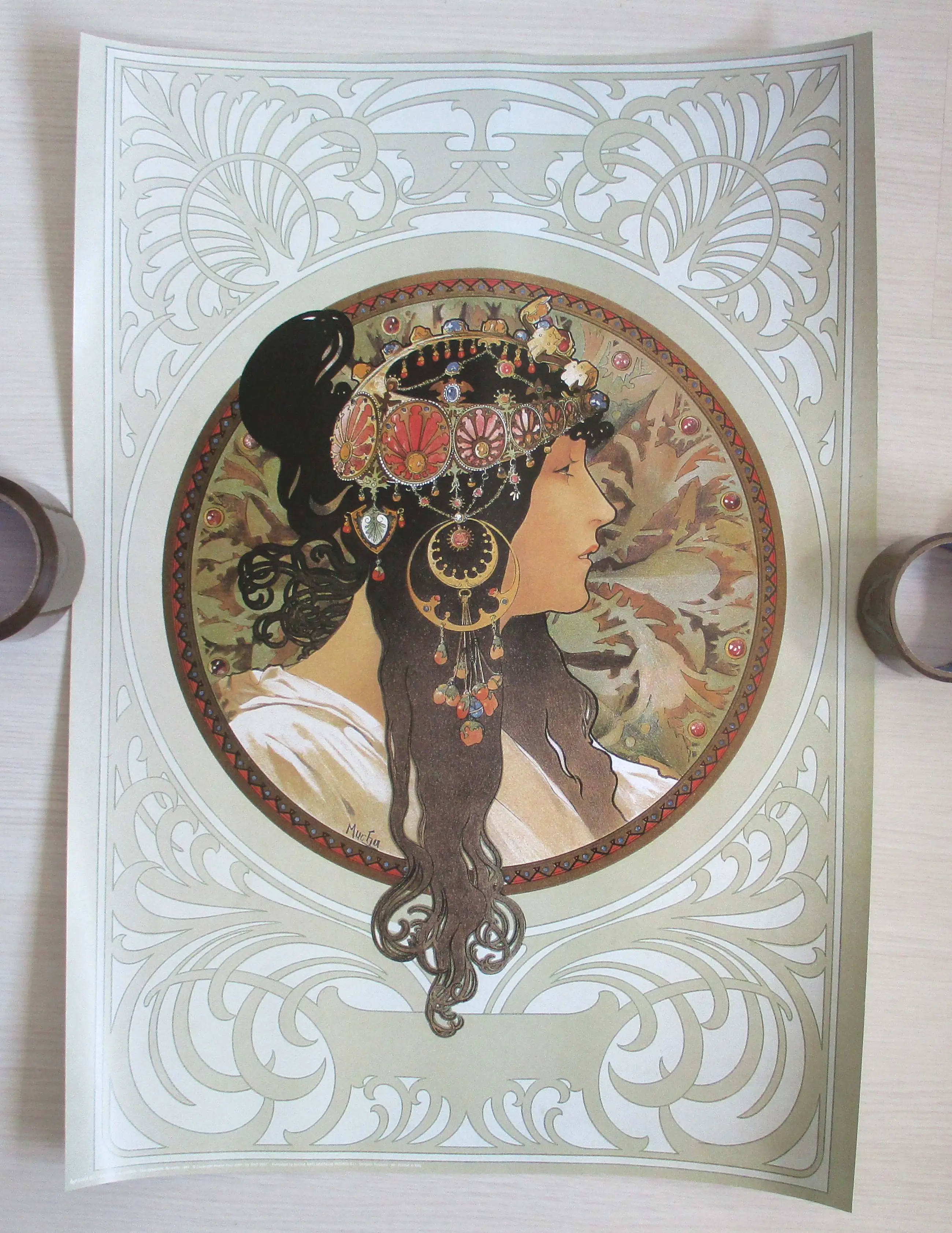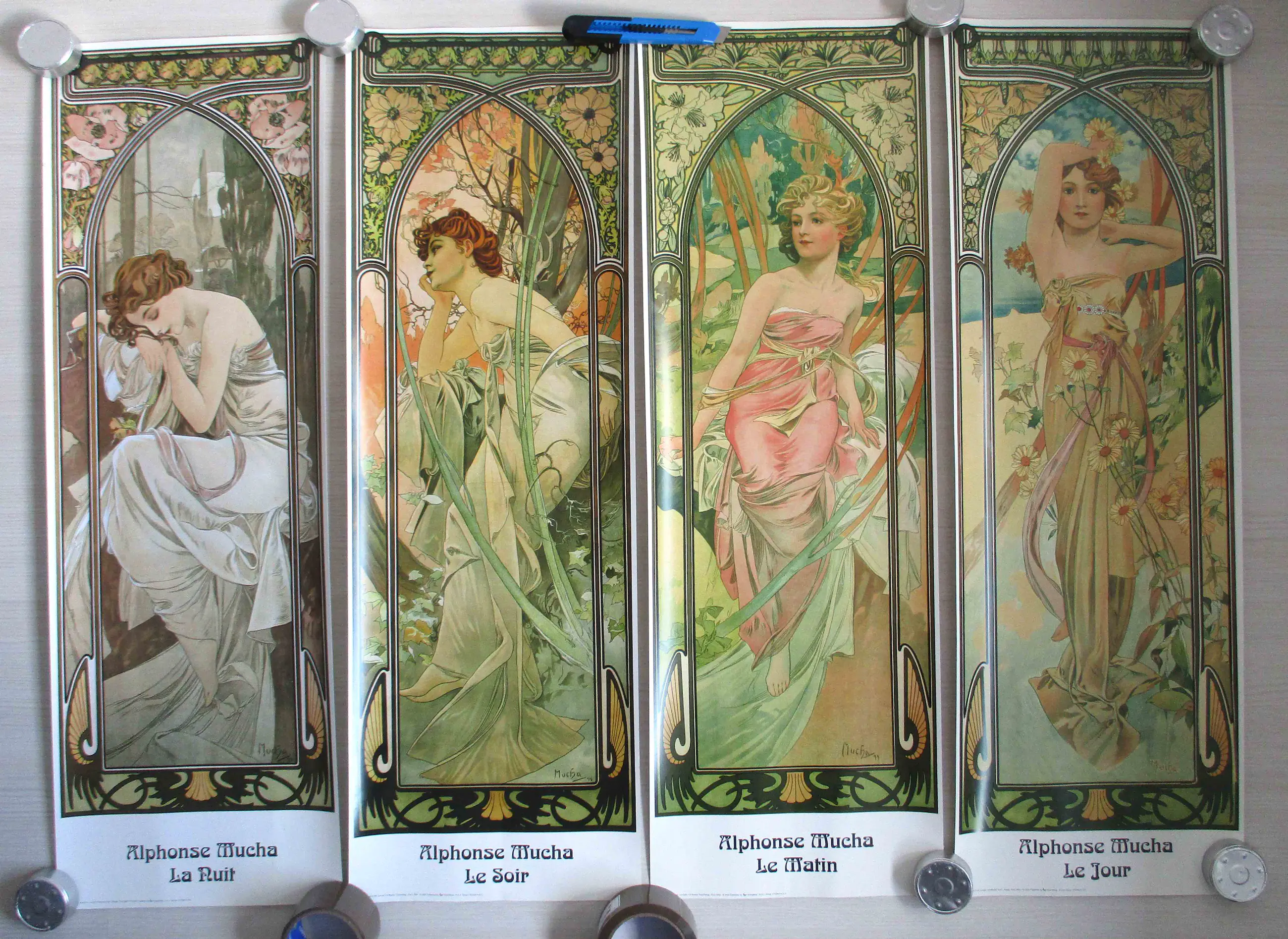 Negen diverse offset affiches van Alfons Mucha in verschillende formaten. Aangeschaft tijdens de tentoonstelling van Mucha in de Kunsthal Rotterdam (2004). Formaten: van 40 x 30 tot 98 x 68 cm. Worden opgerold verstuurd.