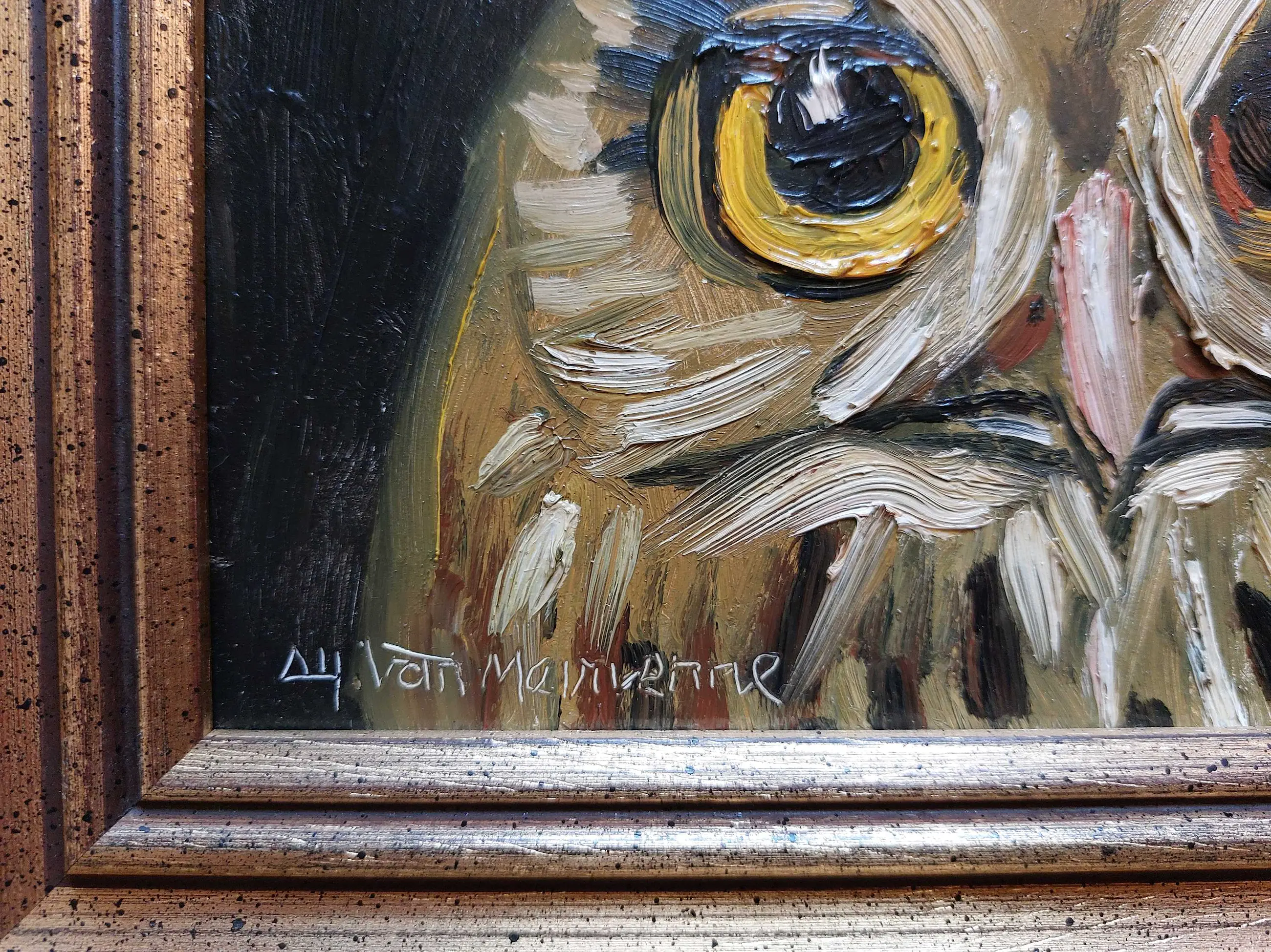 Alfons Van Meirvenne ( 1932 ). Zeer dik geschilderd olieverfschilderij van deze kunstenaar uit Haasdonk ( Beveren ). Het werk en de verzorgde inkadering is in perfecte staat: Afmetingen werk: 18 cm x 22 cm. Afmetingen met kader: 28 cm x 33 cm. Getekend onderaan links.