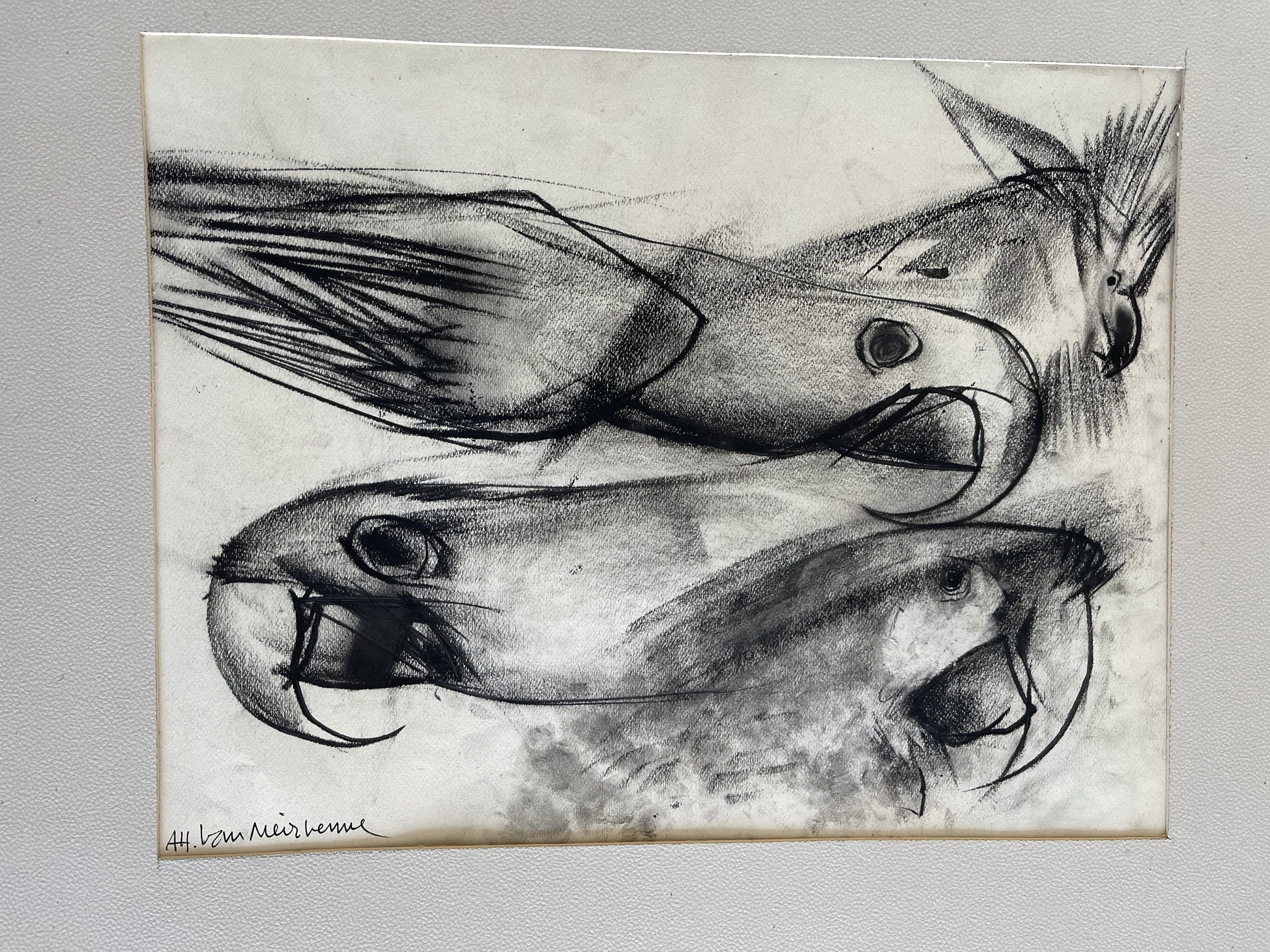 Alfons Van Meirvenne - Papagaaien (ink/houtskool op papier) kopen? Bied vanaf 15!