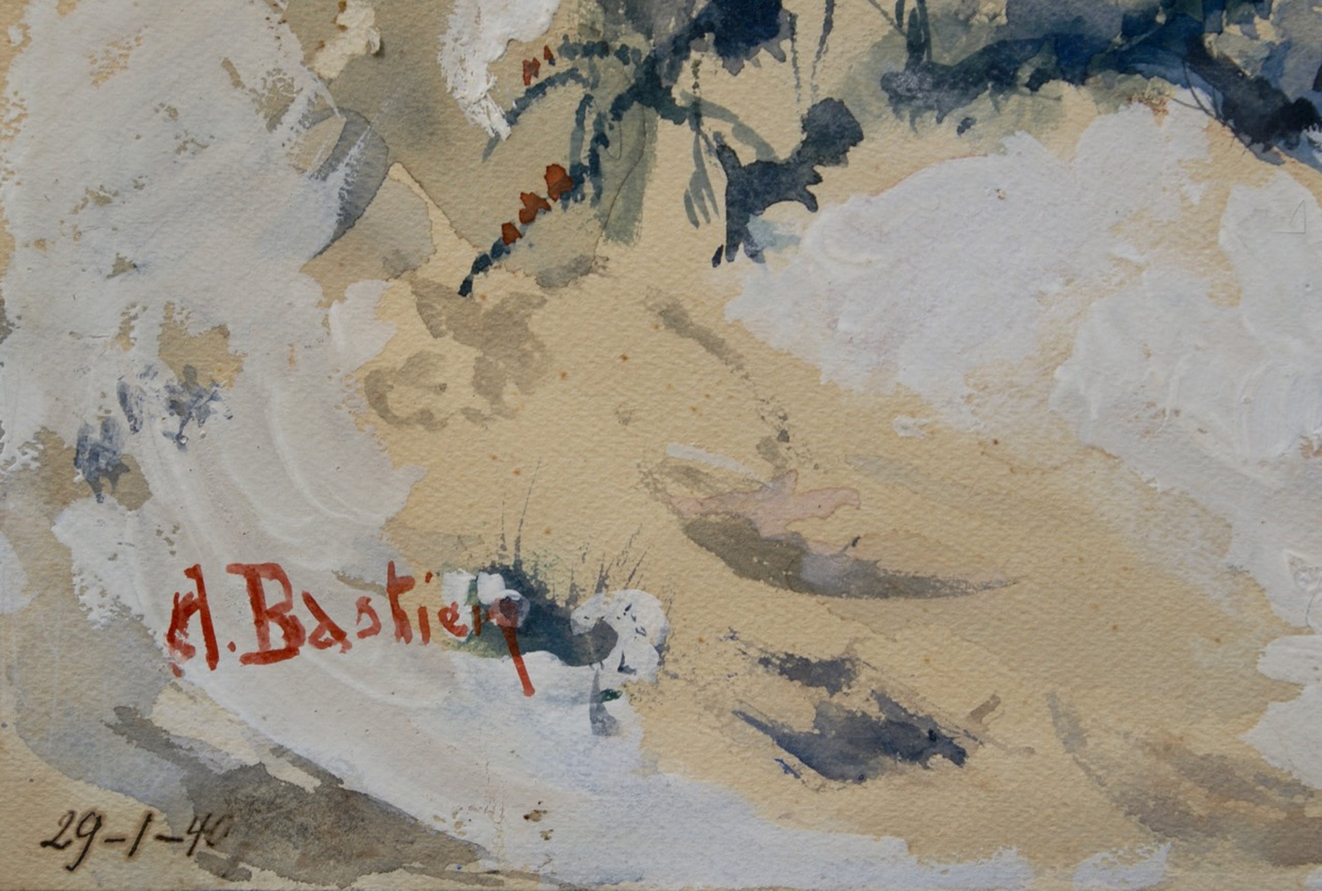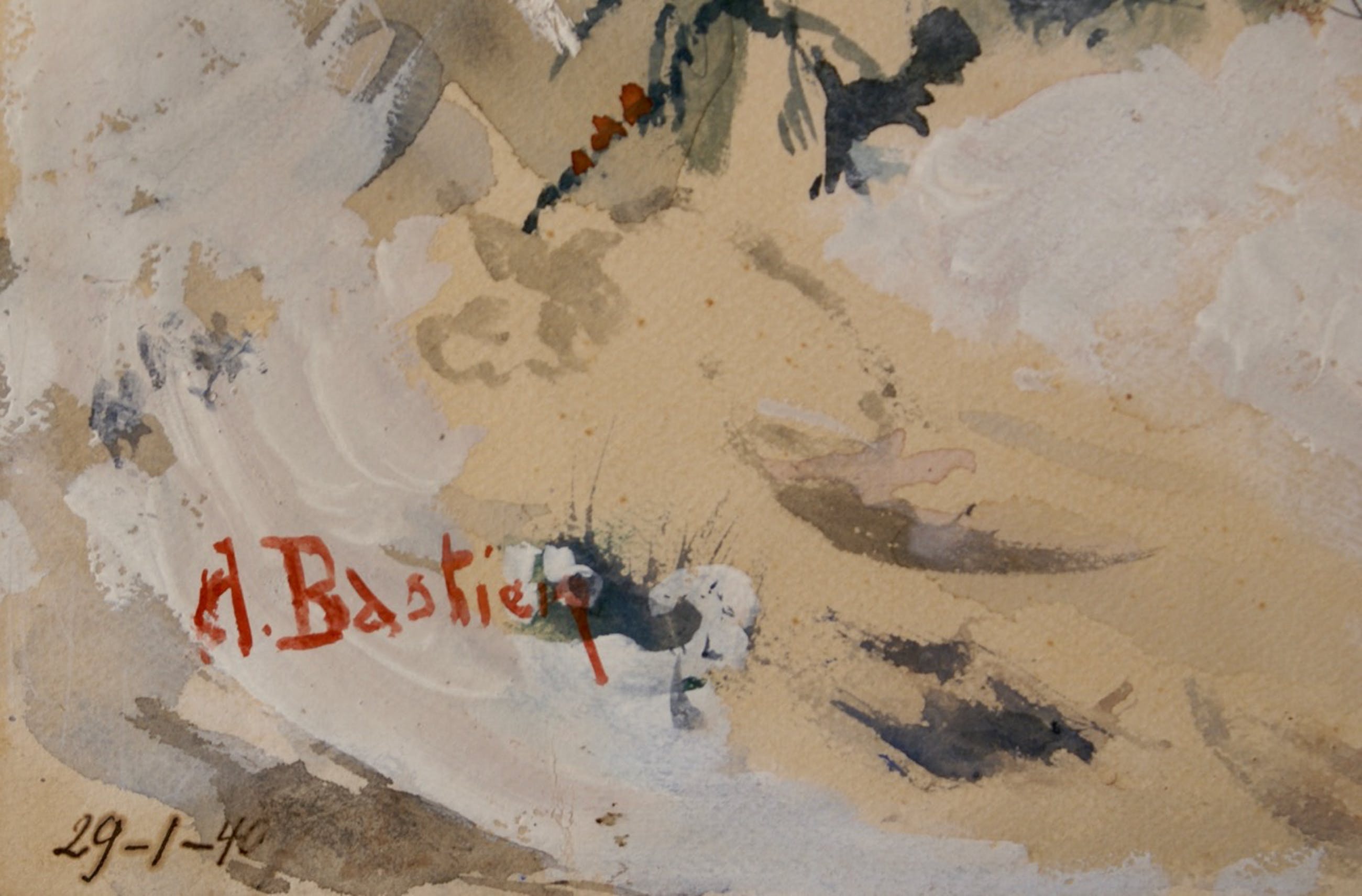 Bij de inlijsting is de achterkant van de aquarel van een
