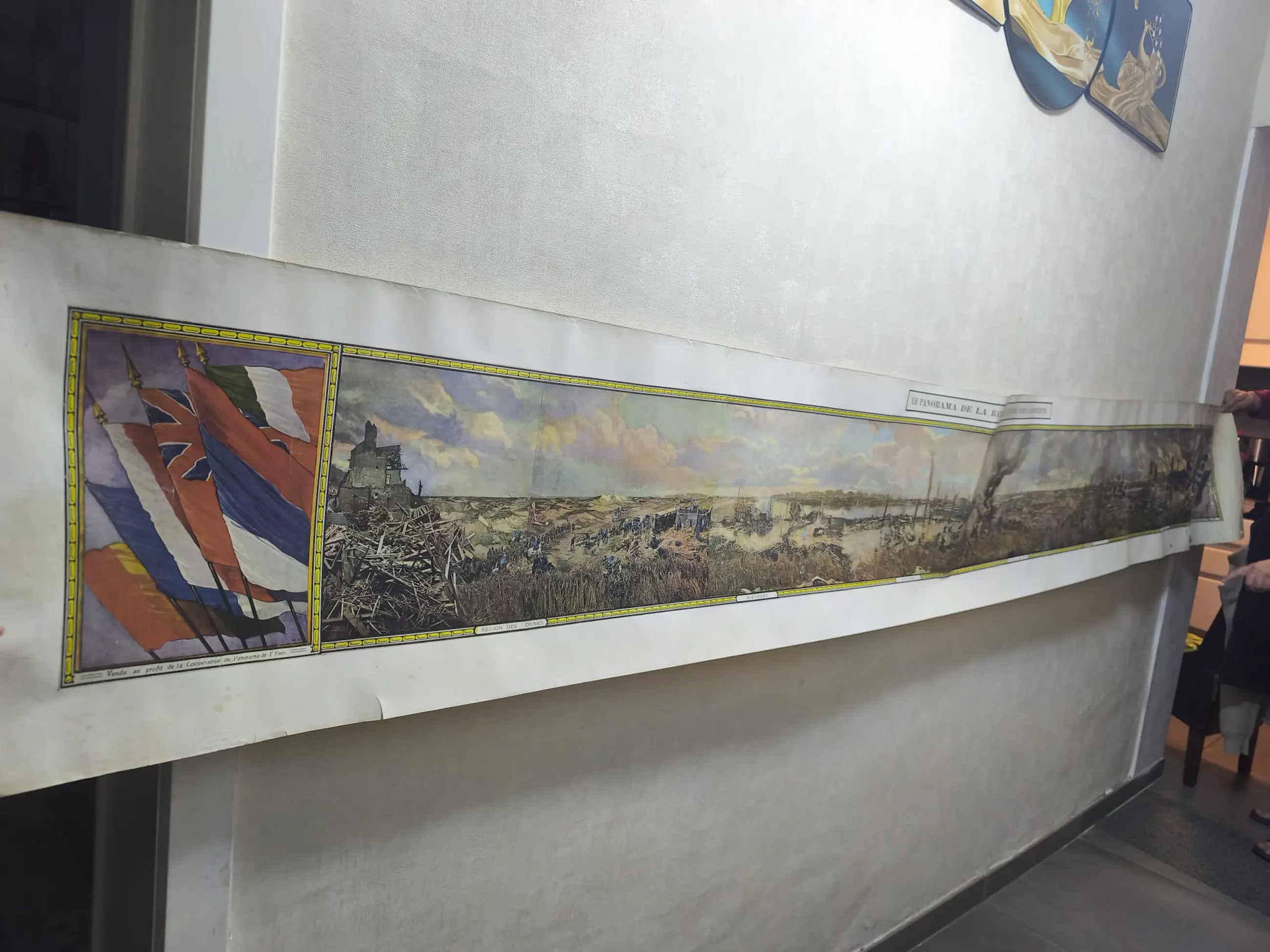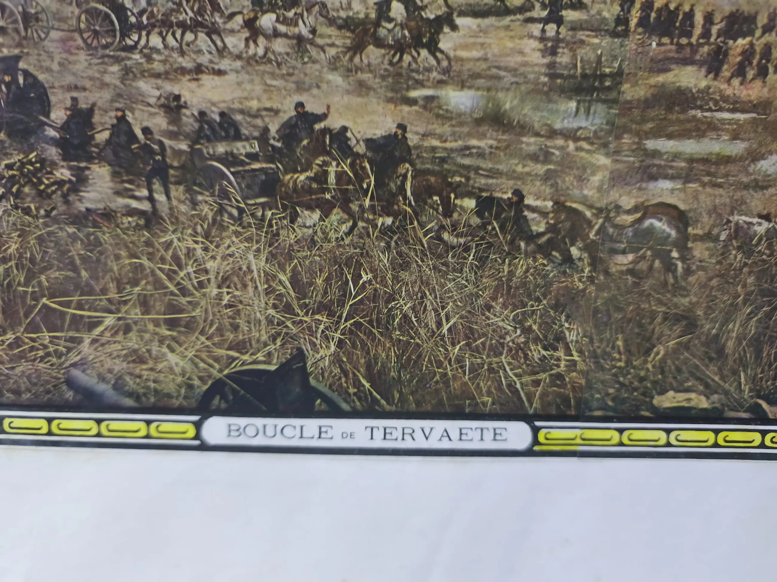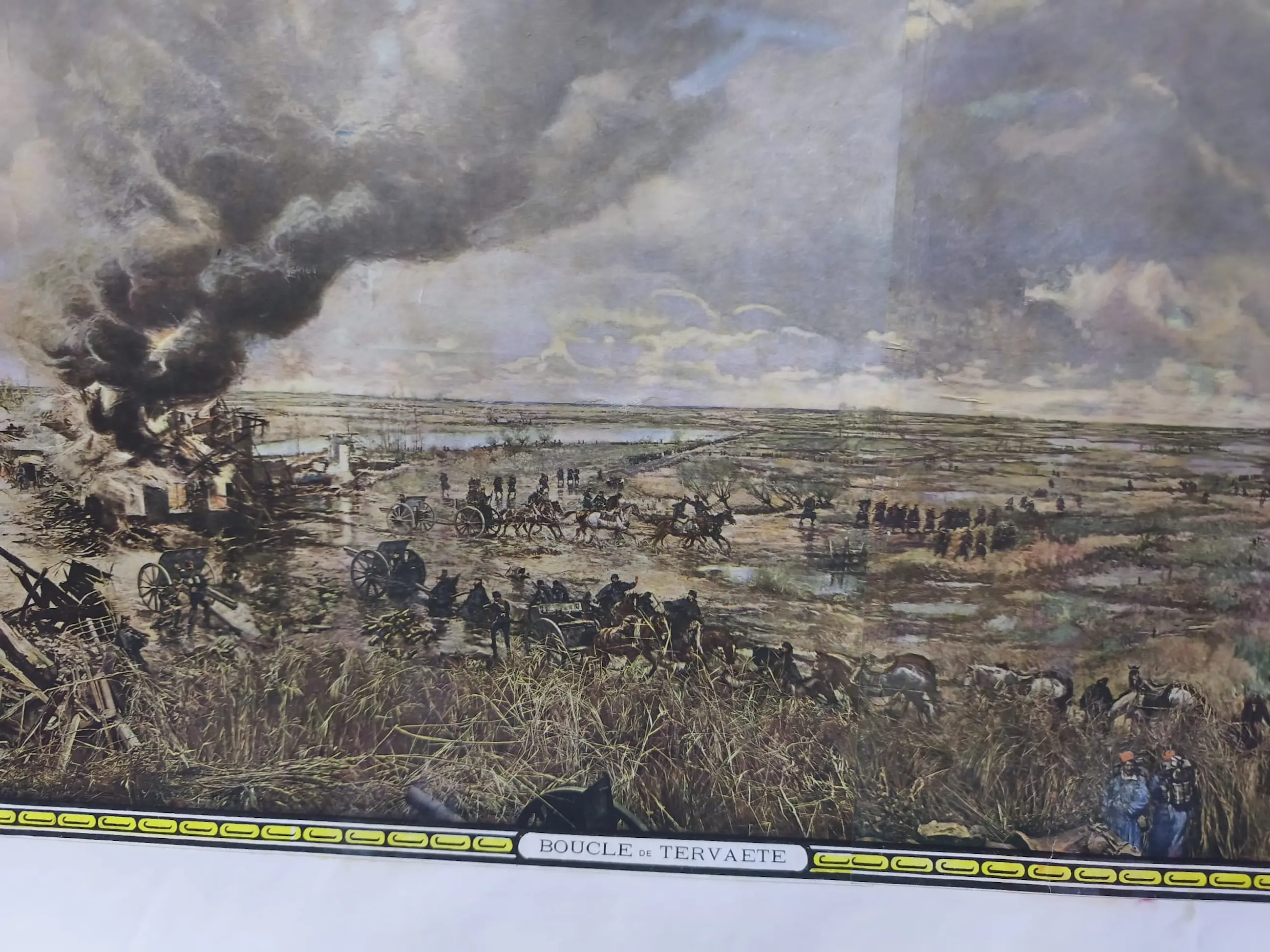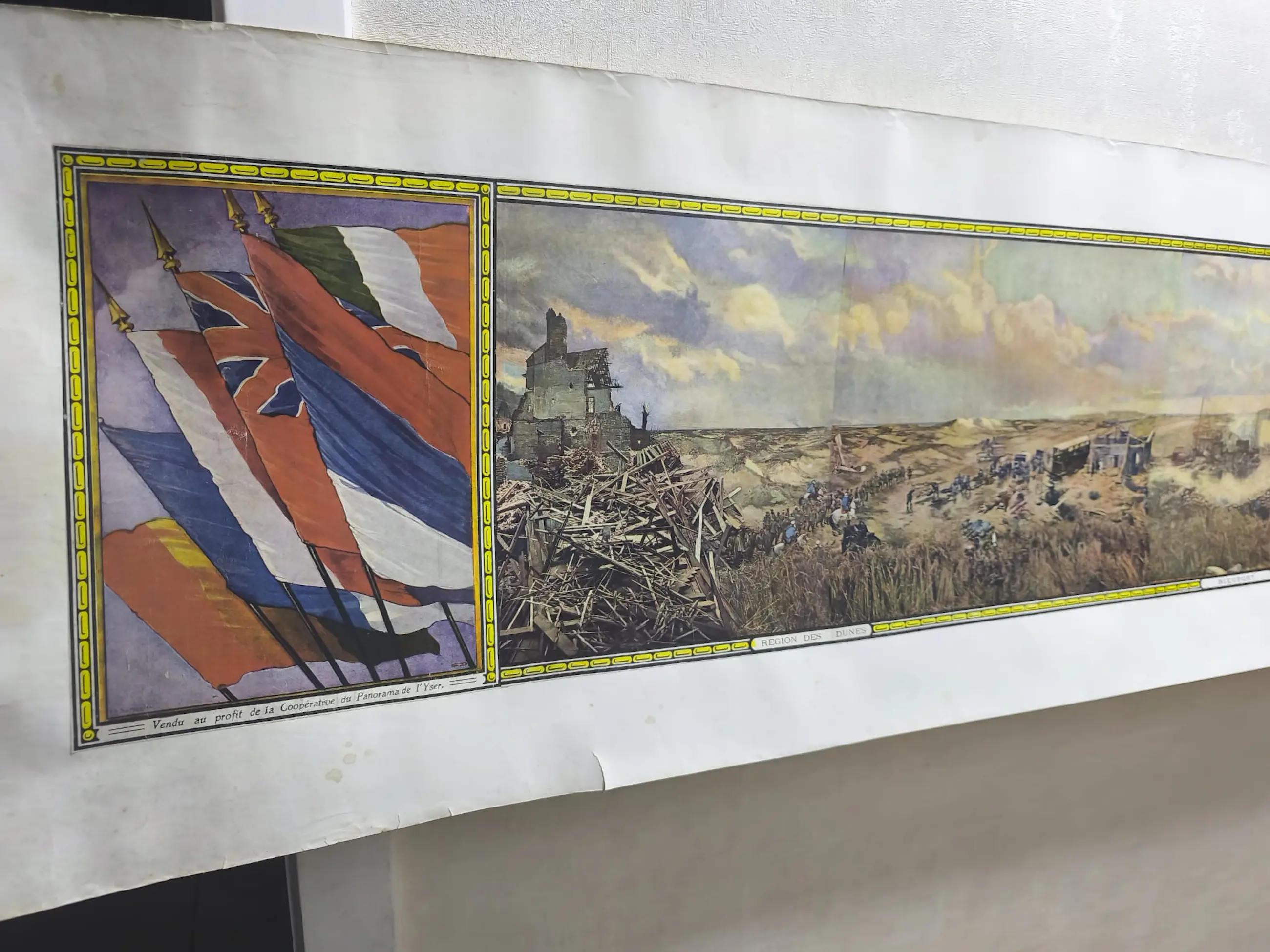 Panorama van de slag om de IJzer uit eerst wereldoorlog het toont de verwoesting en de geallieerde vlaggen tijdens de cruciale slag om de IJzer in oktober 1914 het originele panorama was 1800 vierkante metetdat is in 1921 onthult miniatuur panorama van de battle of the yser 1914 bij Alfred Bastien het is 3.5 meter lang en 45 cm breed en weegt340 gr is origineel heb het al 50 jaar in mijn bezit het is in redelijke staat ooit een geschenk van mijn grootvader aan de koper zorg ervoor heeft altijd droog en goede temperatuur gehad