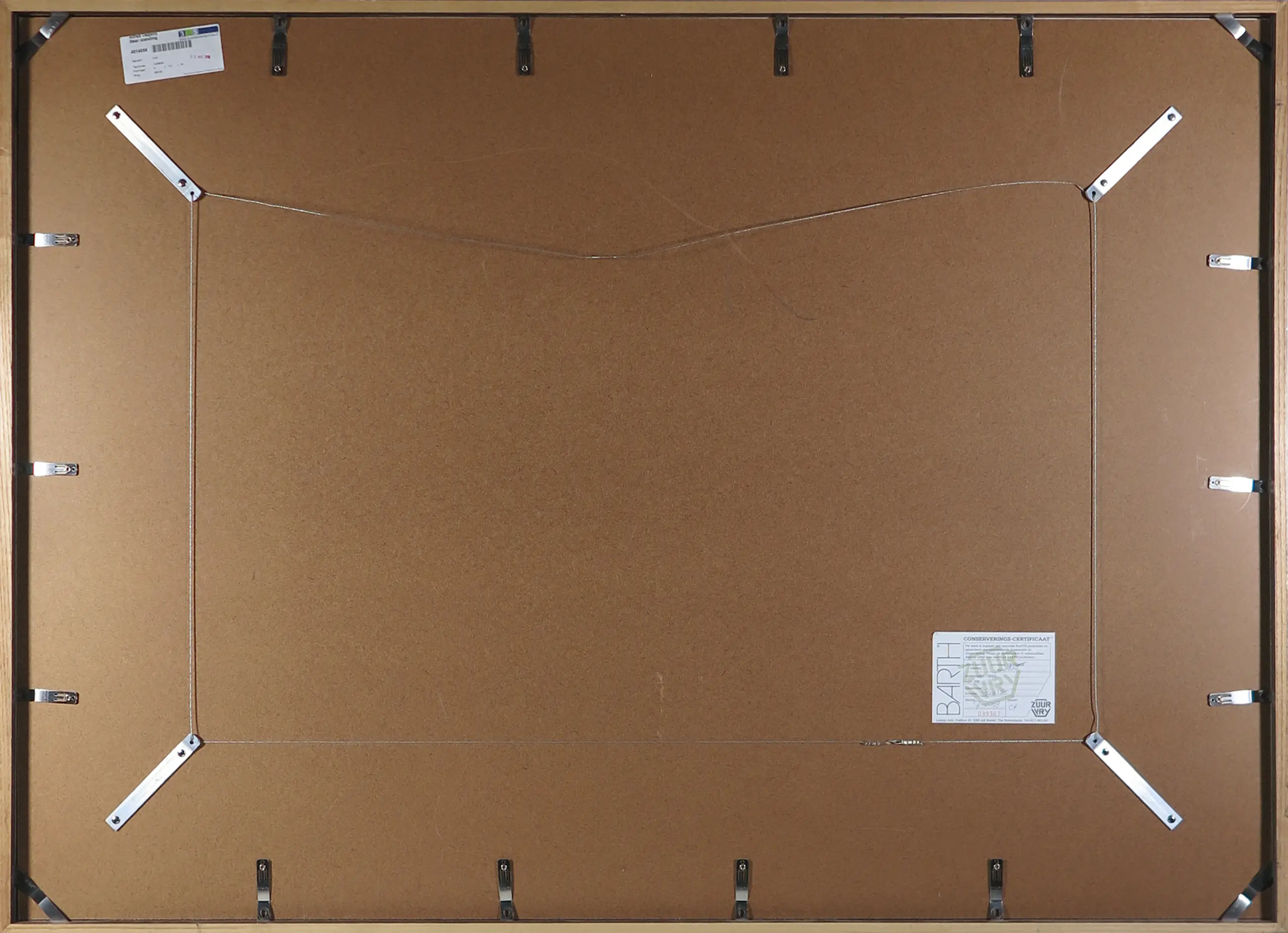 Passe-partout/lijsten: Beschadigingen aan lijsten worden niet beschreven. Indien een werk achter glas is ingelijst en het glas gebroken is, zal dit wel vermeld worden. Passe-partouts worden op geen enkele manier gegarandeerd en ook niet altijd meegezonden.