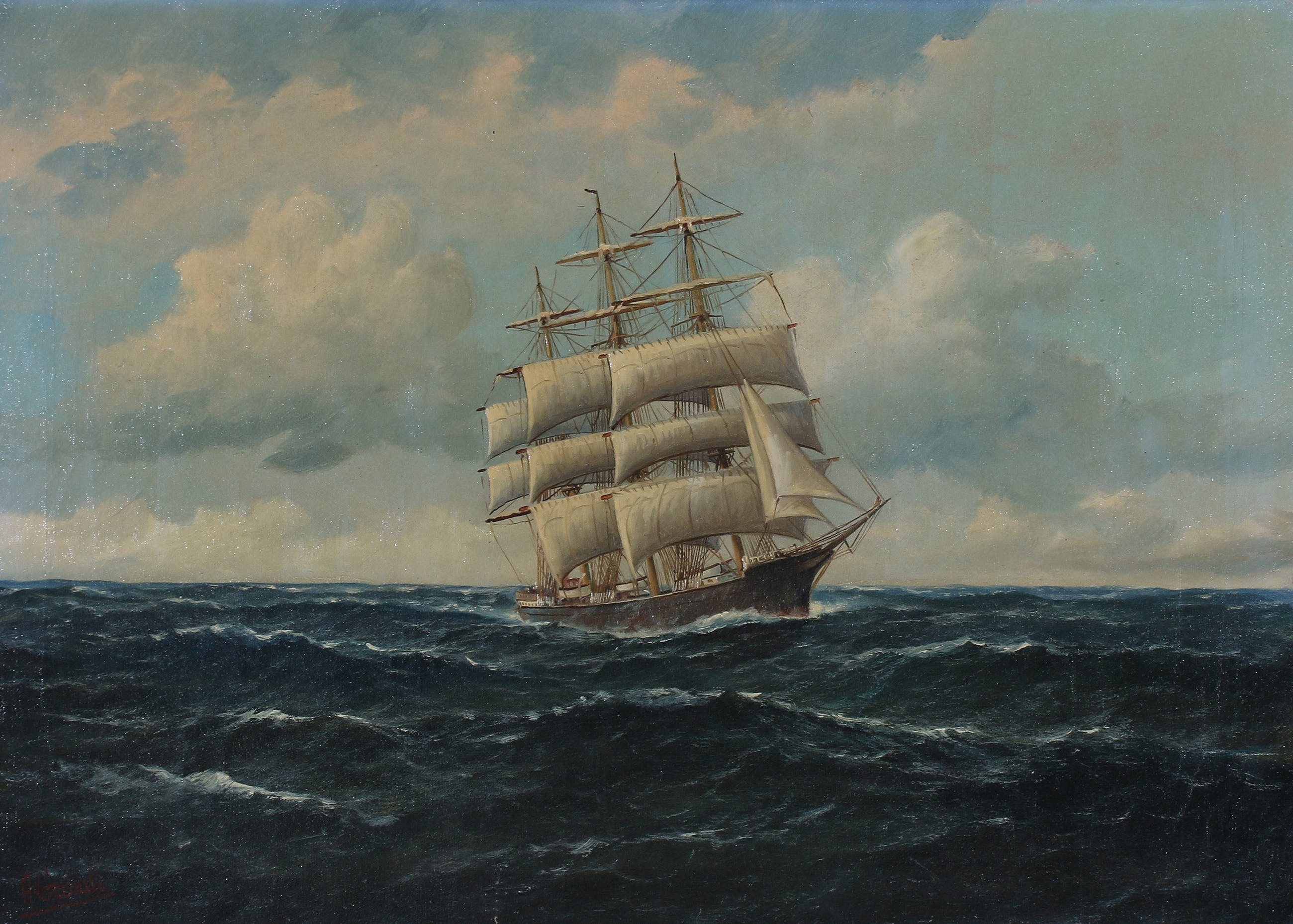 Alfred Gabali, Keulen 1886 - 1963 New York Zeeman, heeft jarenlang alle zeeen bevaren, en bekende kunstschilder In Duitsland geboren kreeg hij op latere leeftijd de Amerikaanse nationaliteit. Woonde en werkte in Cape Cod waar hij zijn studio had, de Grand Cove Art Studio Veelvuldig winnaar van de Cape Cod Art. Ass.Galeries tentoonstellingen in Hyannis