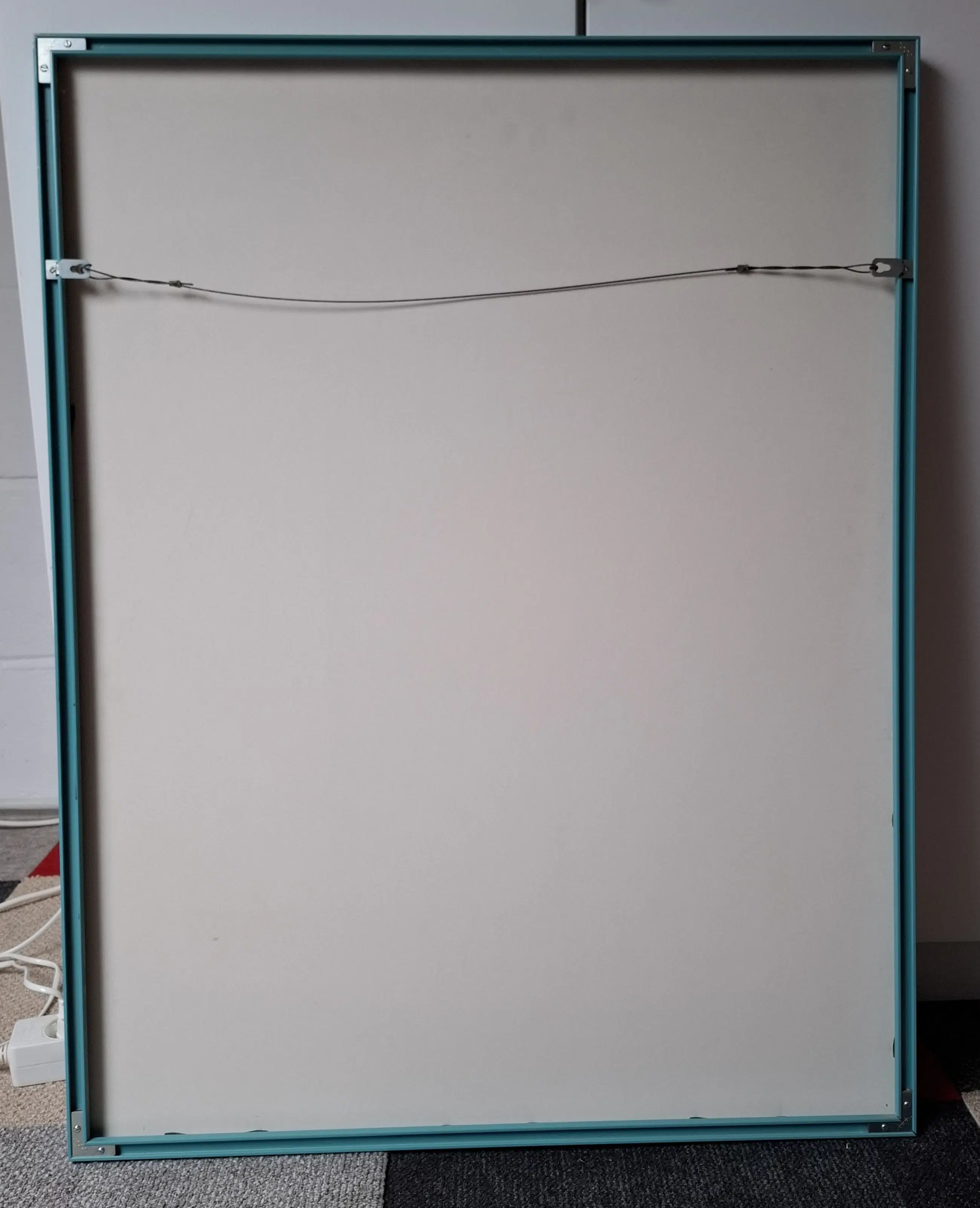 Ik heb dit product begin jaren 90 ingelijst gekocht en heeft het jaren bij mij aan de muur gehangen. Er was ook een groene afbeelding die erbij hoorde maar die heb ik niet. Het is een alu lijst.