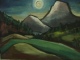 Originaltitel: "Berglandschaft", Gemälde, Entstehungsjahr unbekannt aber jedenfalls vor 1957, 60 x 80 cm, signiert, im Originalrahmen (dieser ist stark beschädigt und trägt zwei Ausstellungsnummern und einen Stempel des Künstlers mit dem Wohnort Altenbeuern, Der Erhaltungszustand entspricht dem Alter und wird gerne fotographisch übermittelt. Lieferung in Deutschland kostenlos nach Vorauskasse.