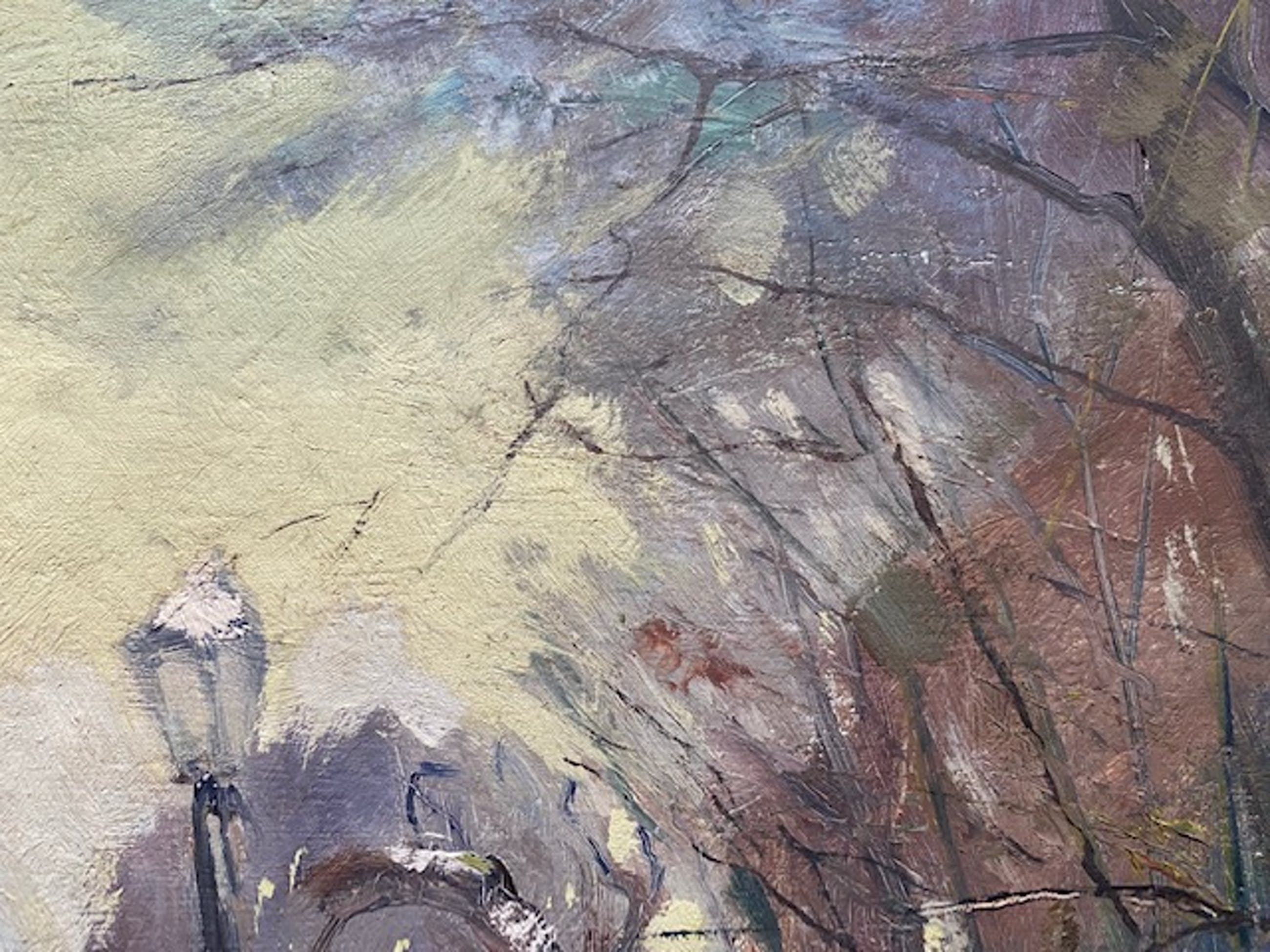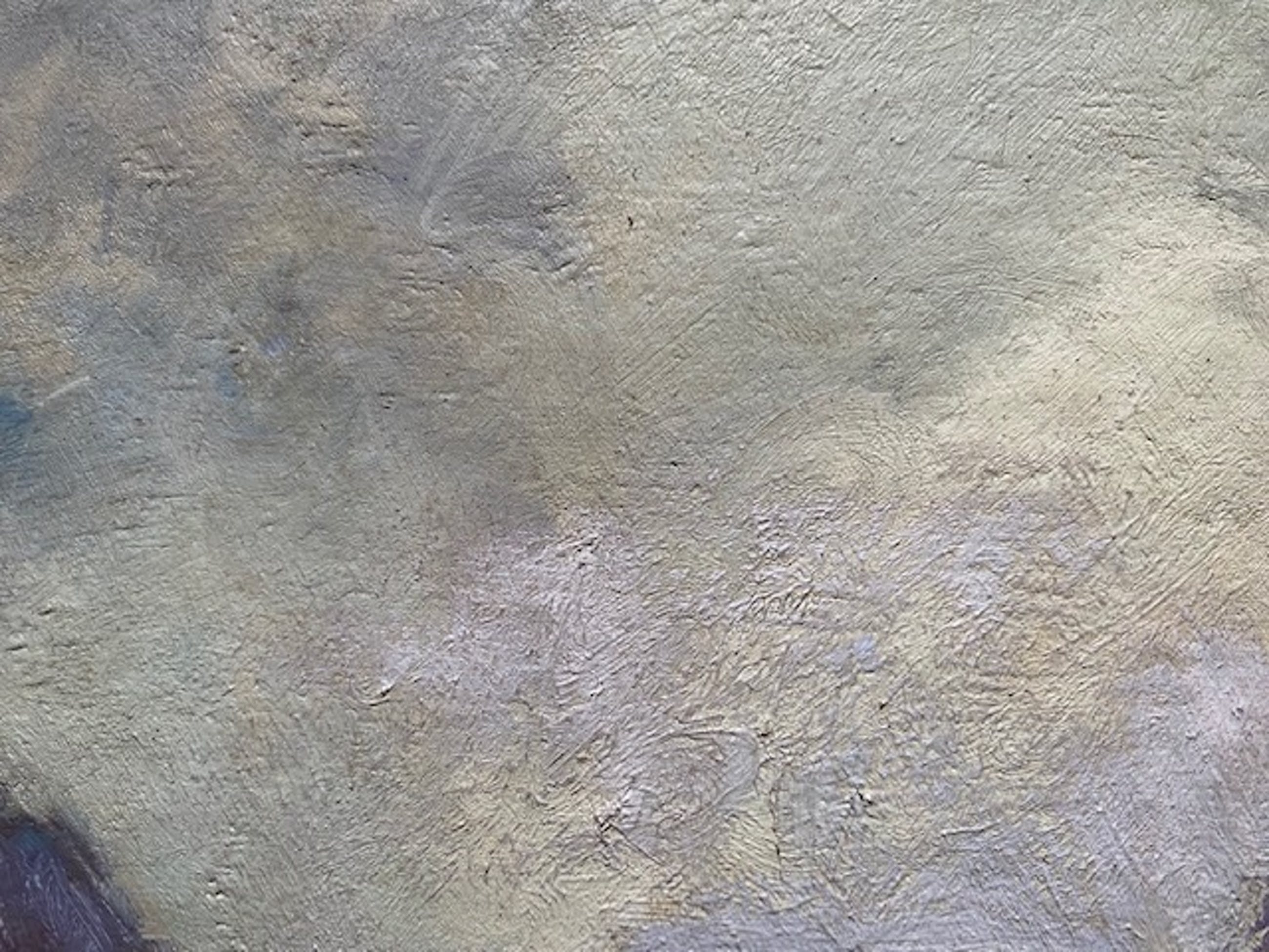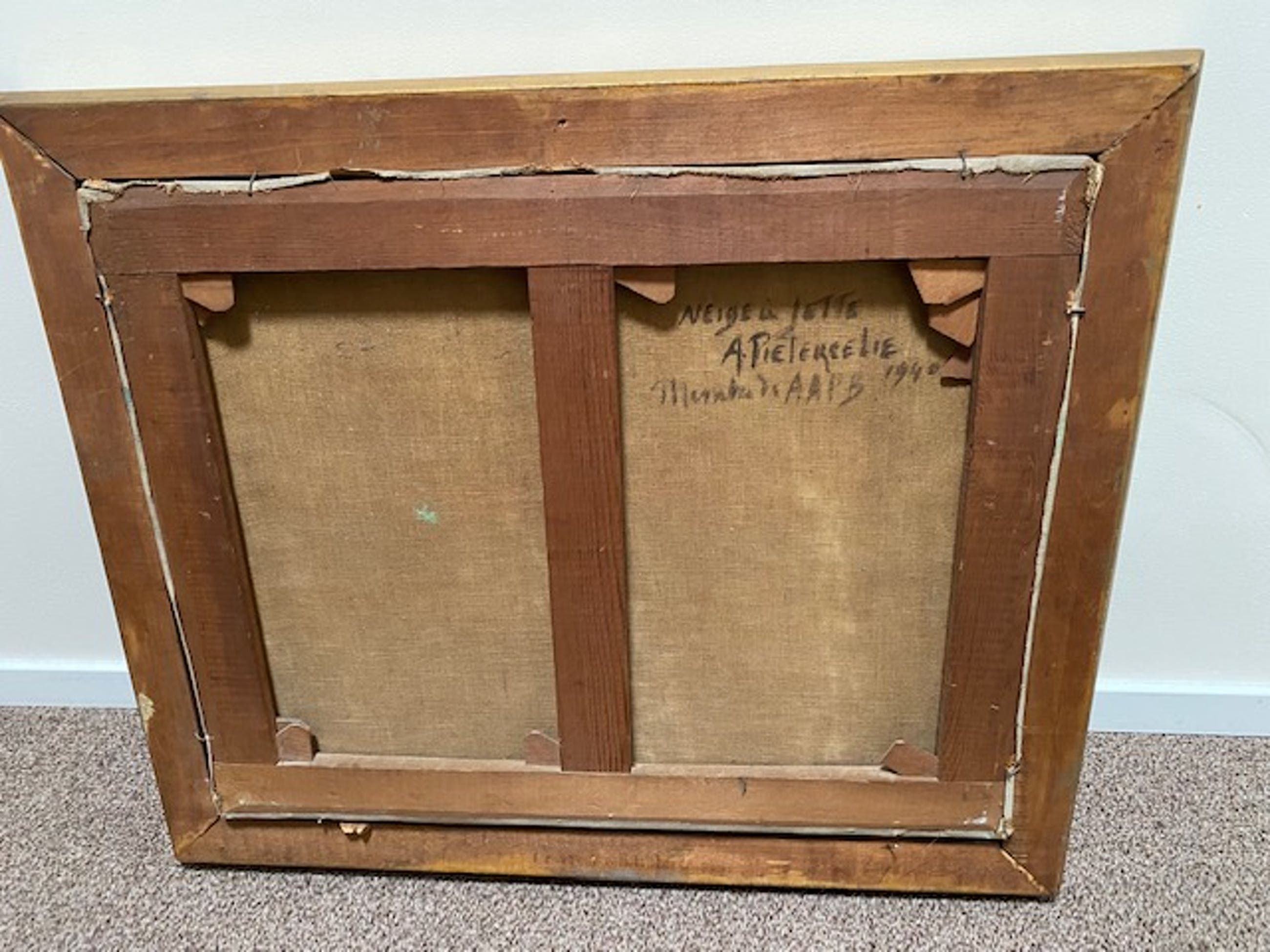 het schilderij zit in een gedeeltelijk vergulde lijst en is nog in goede staat, evenals die lijst