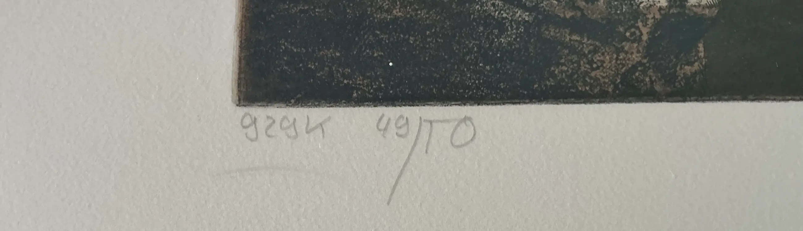De ets is met potlood gesigneerd en gedateerd door de kunstenaar.