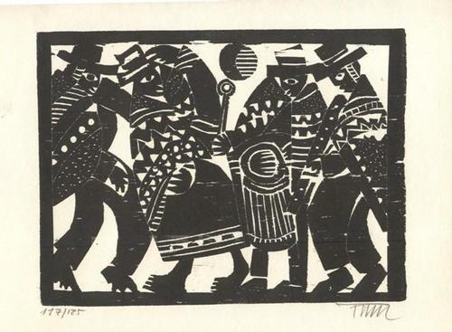 Alfred Pohl - Fiesta in den Anden - Holzschnitt - 1974