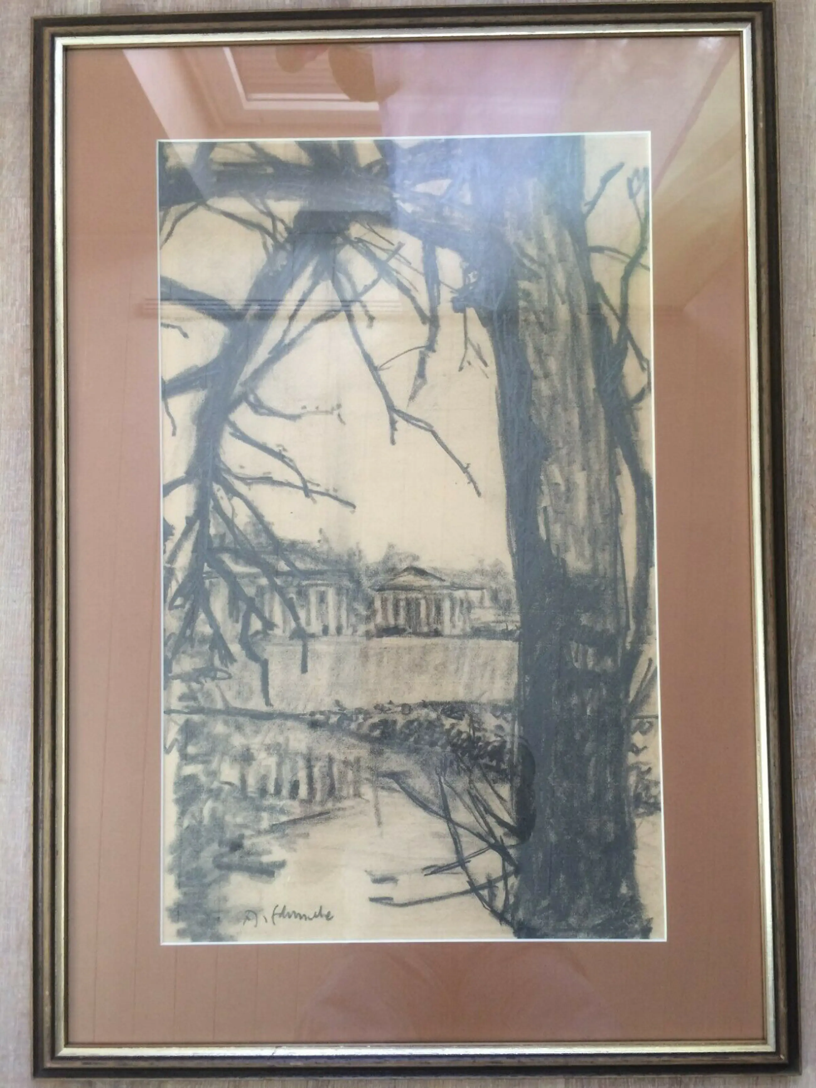 Houtskooltekening door Alfred Schmela (1918-1980), getiteld " Rating Gate "