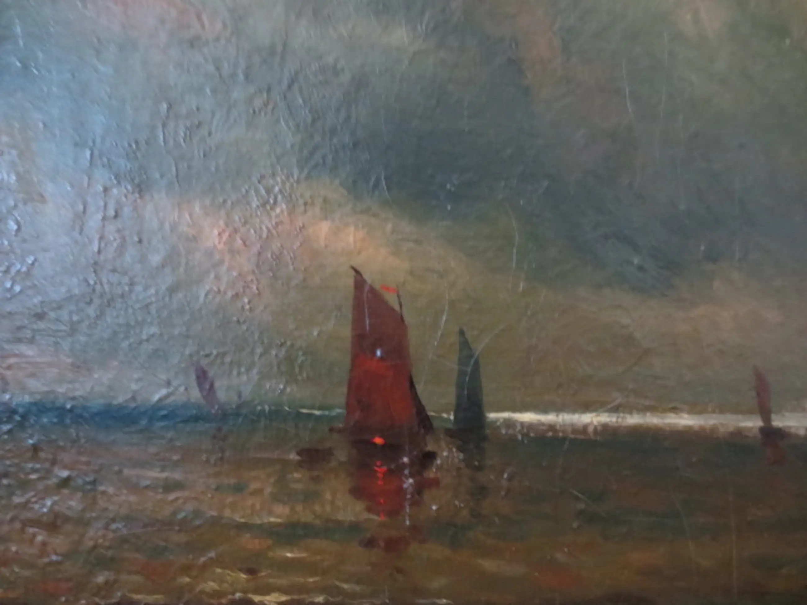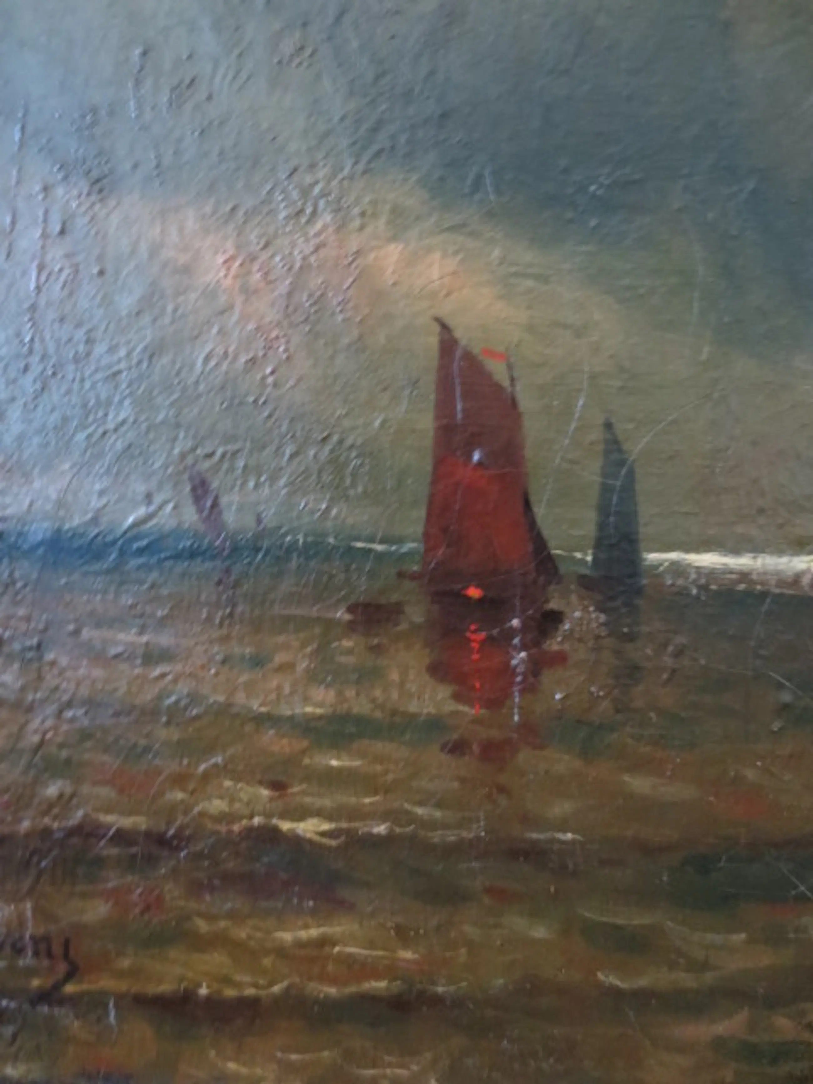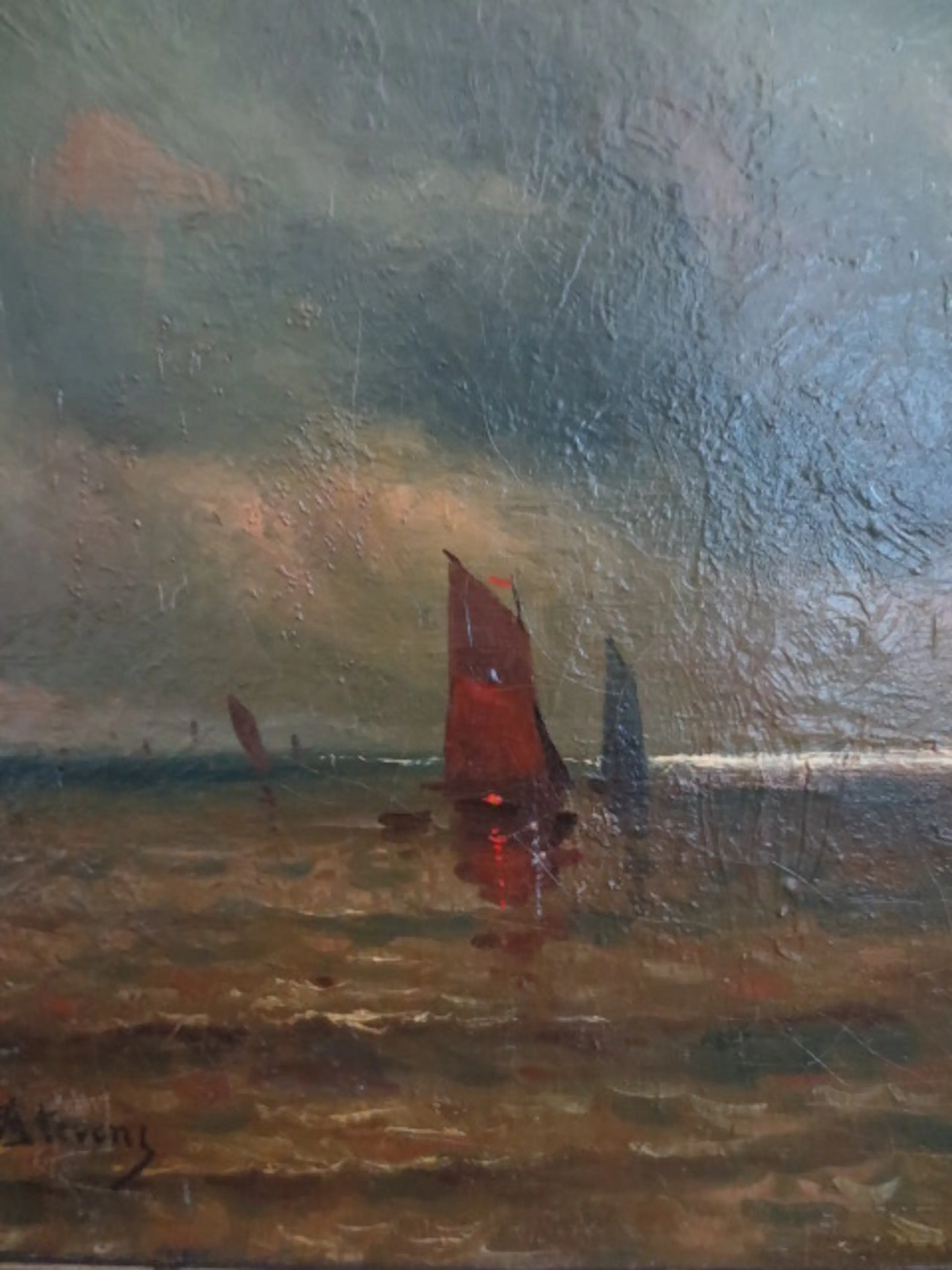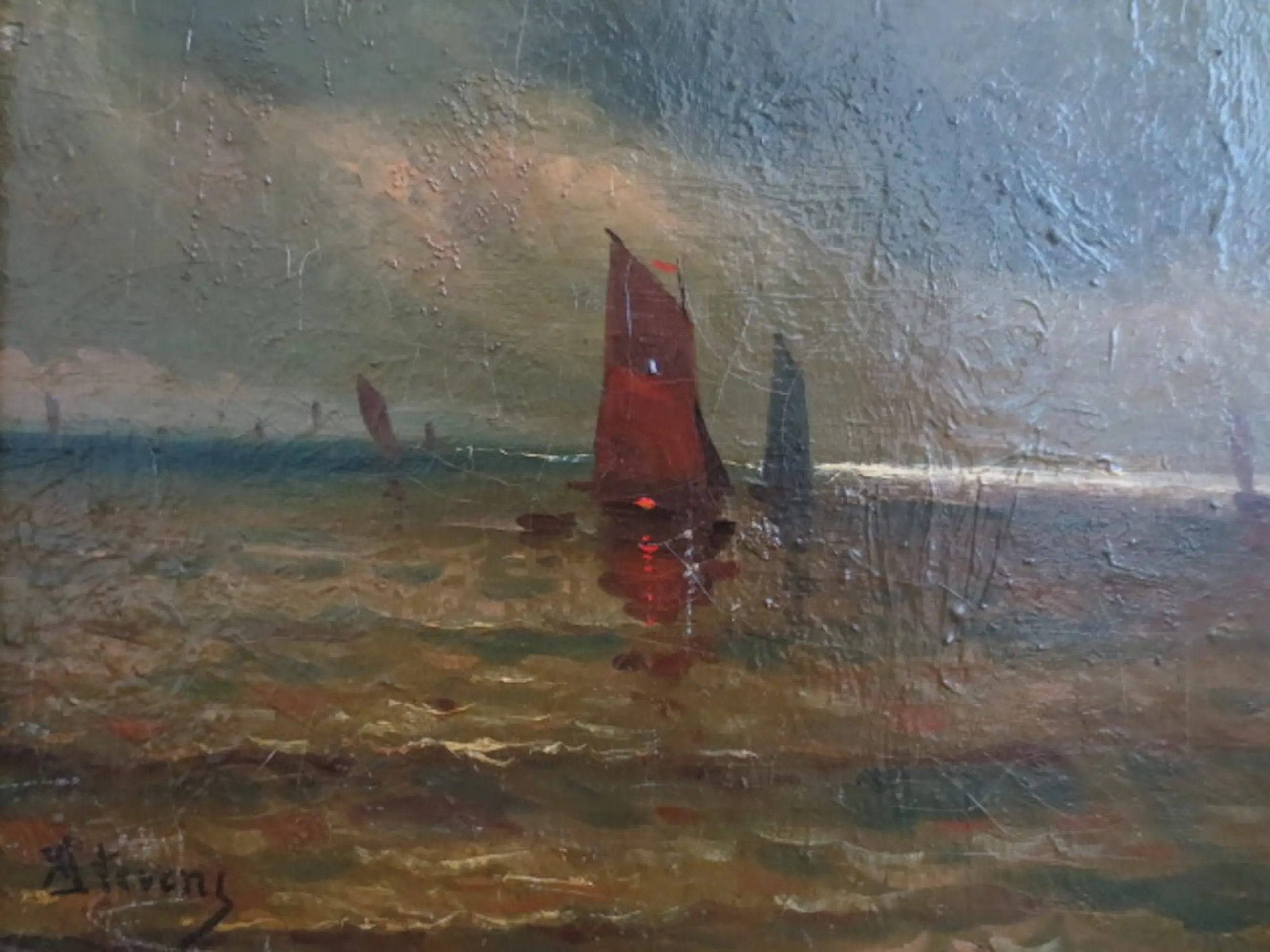 Alfred Stevens (1823-1906) Zeegezicht Zeilboten Olieverf op Doek Gesigneerd Linksonder