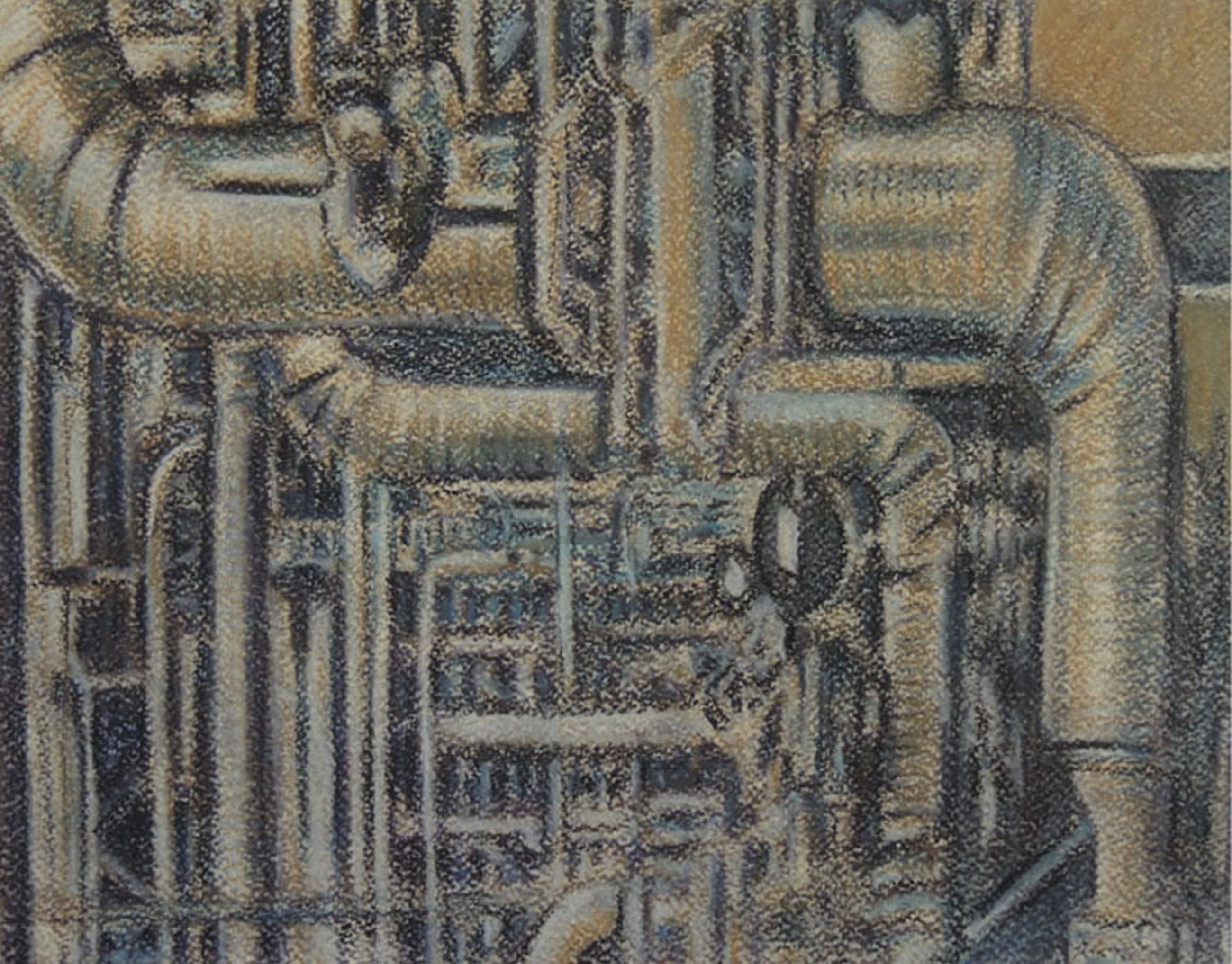 Een ritmisch patroon van pijpen in de olieverwerkende industrie.