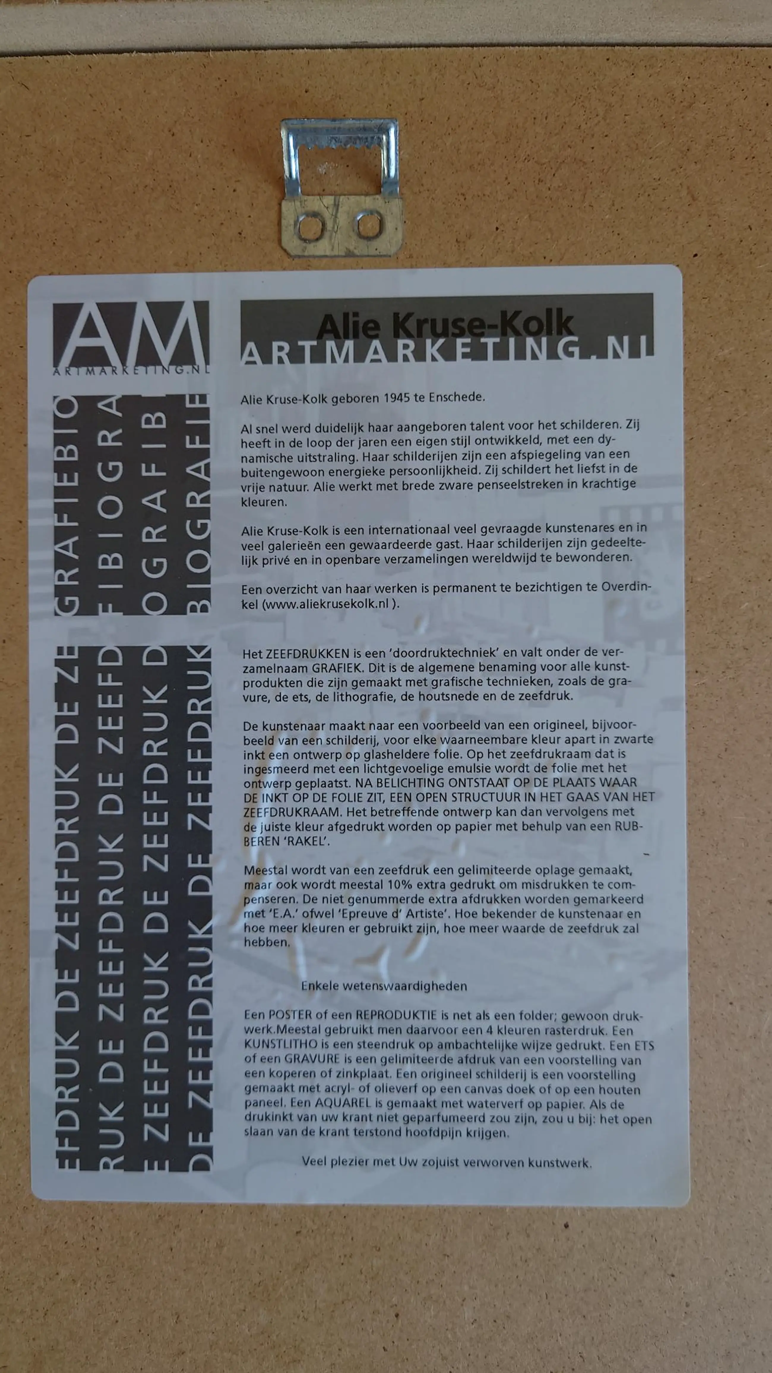 Leuke zeefdruk in prachtige kleuren. Typisch een afbeelding die bij ieder interieur past omdat het een tijdloze afbeelding is.