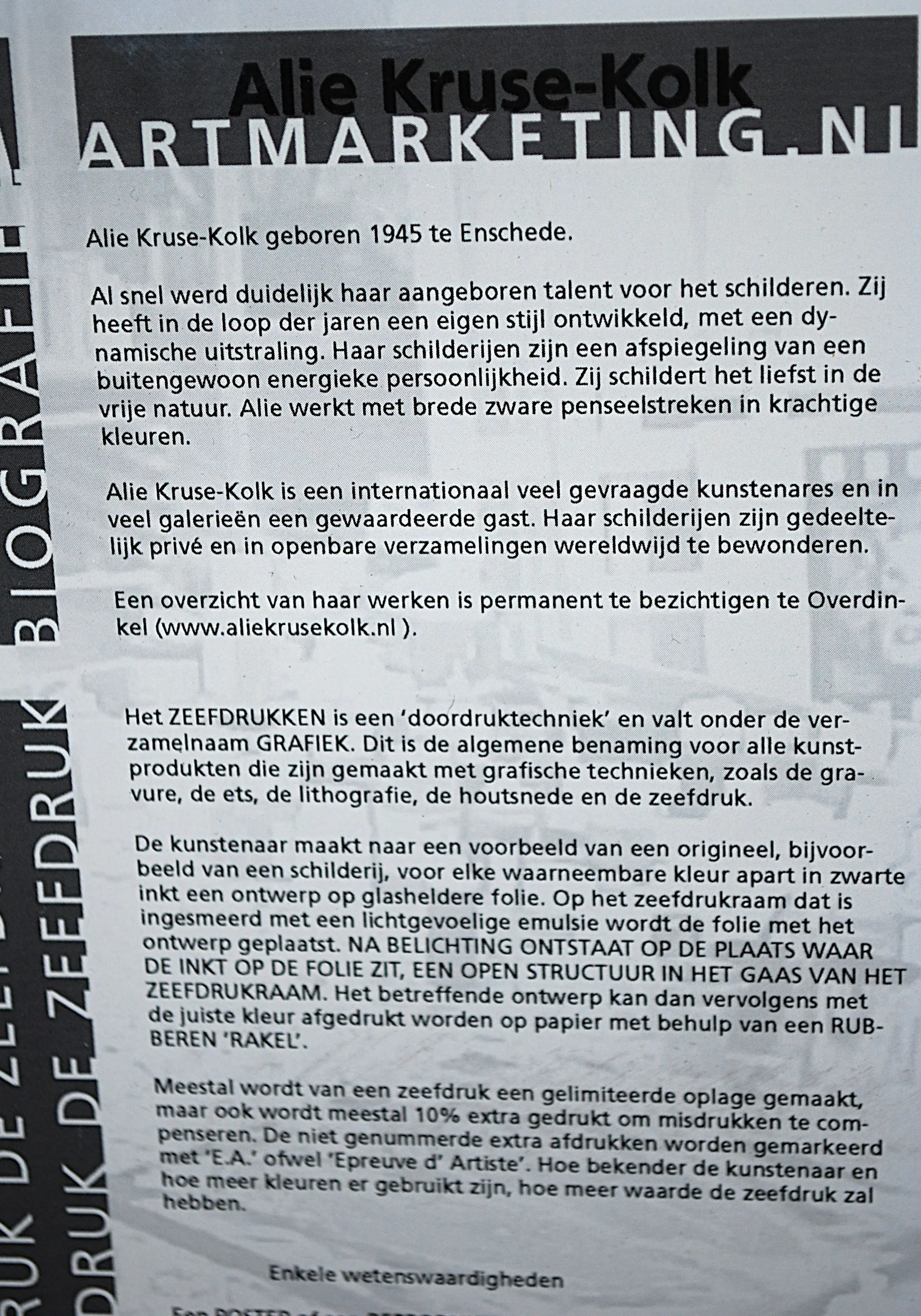 Alie Kruse-Kolk (1945). Afbeeldingsmaat ca. 22x22 cm. Het geheel verkeert in prima gebruikte staat.