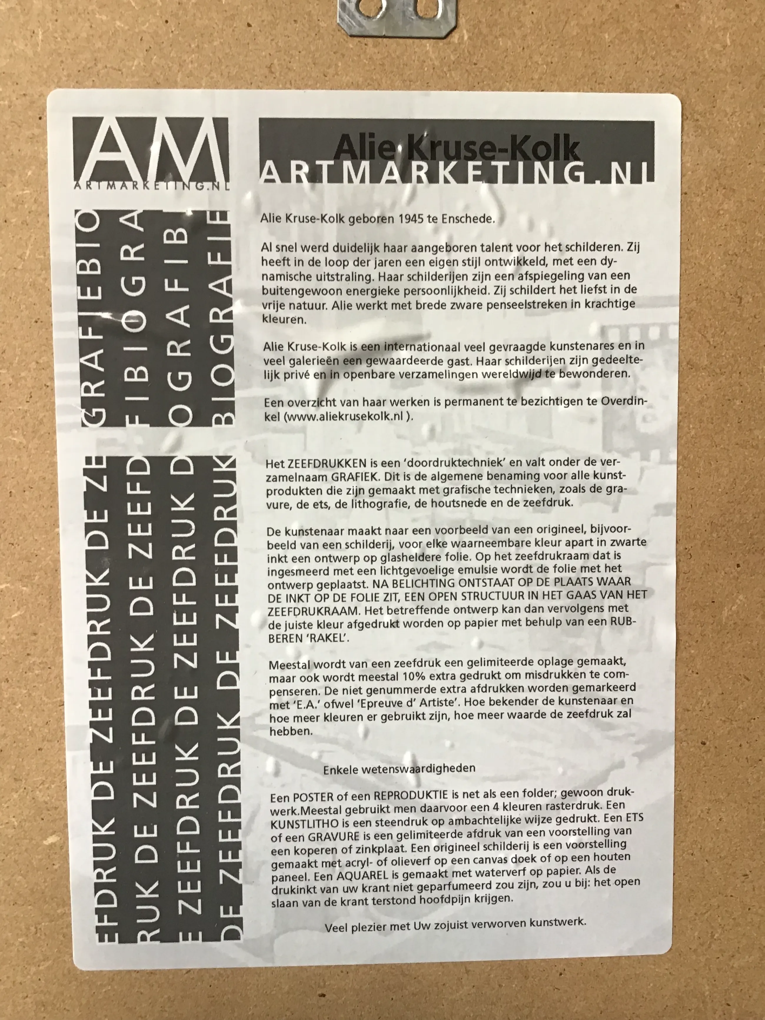 Het werk is af te halen op locatie. Als koper dient u zelf verpakkingsmateriaal mee te nemen. De locatie is: Aarle-rixtel, Nederland